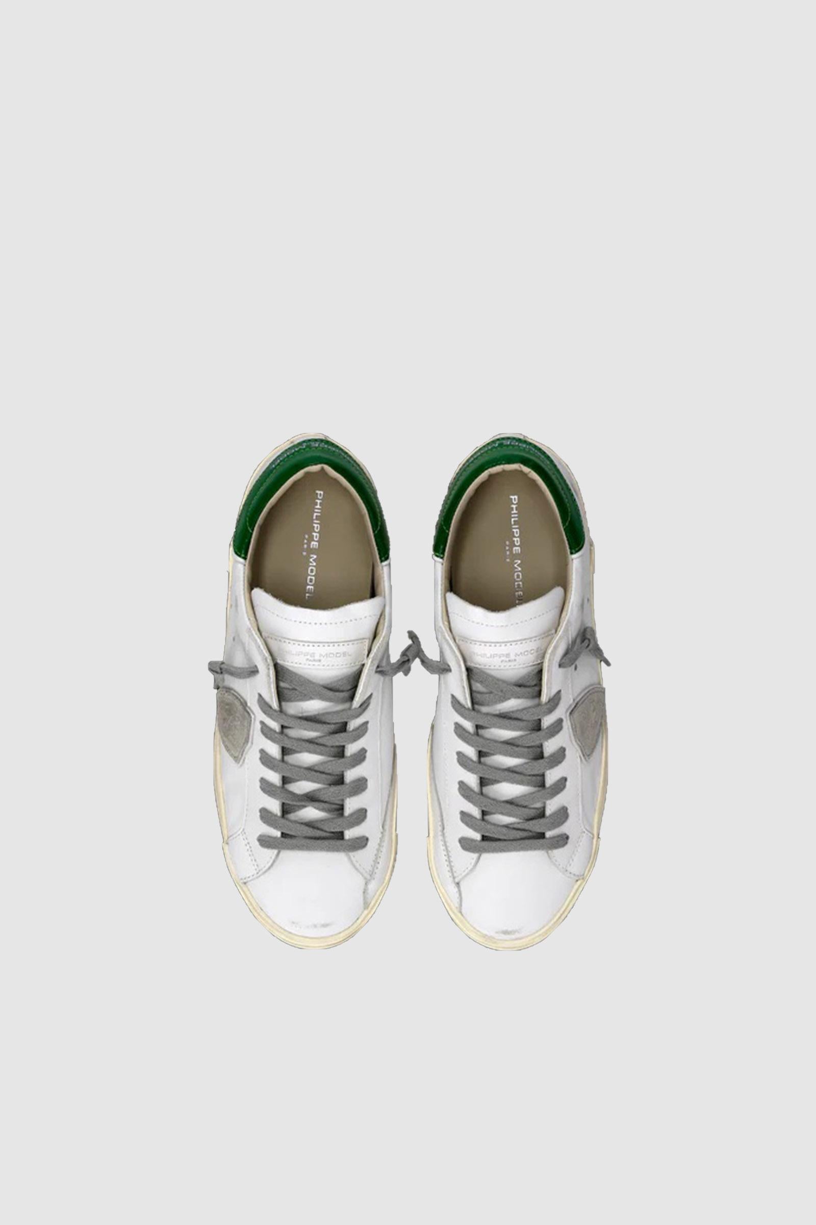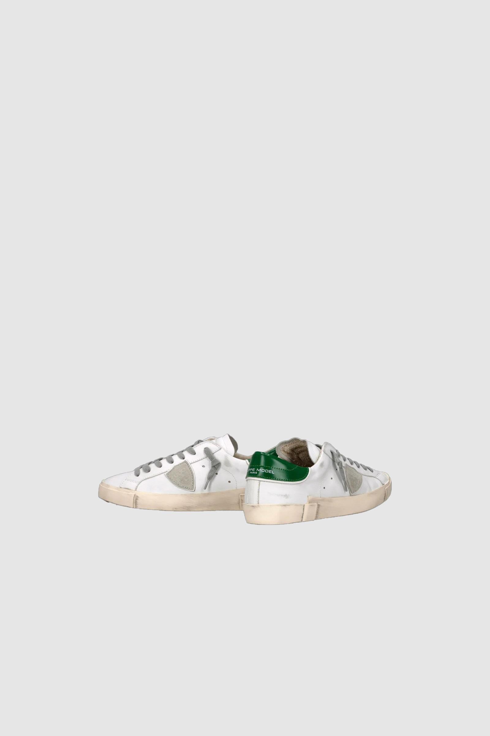 Look vissuto e forme ispirate allo street style anni '80: la sneaker Prsx è un grande classico del casual metropolitano. La tomaia in pelle bianca è trattata per donare un effetto vintage. Il paio si distingue per i dettagli pop come lo spoiler verde ed i lacci e lo scudetto sui toni del grigio. L'iconica suola con fresature artigianali e sporcature enfatizza l'effetto vissuto del design di questa scarpa bassa da uomo.Materiali: Sneaker bassa con tomaia in pelle con finiture used, spoiler in pelle. Scudetto e lacci a contrasto. Fodera interna in spugna di cotone e pelle, soletta in schiuma estraibile. Fondo in gomma con fasciatura irregolare rifinita artigianalmente.