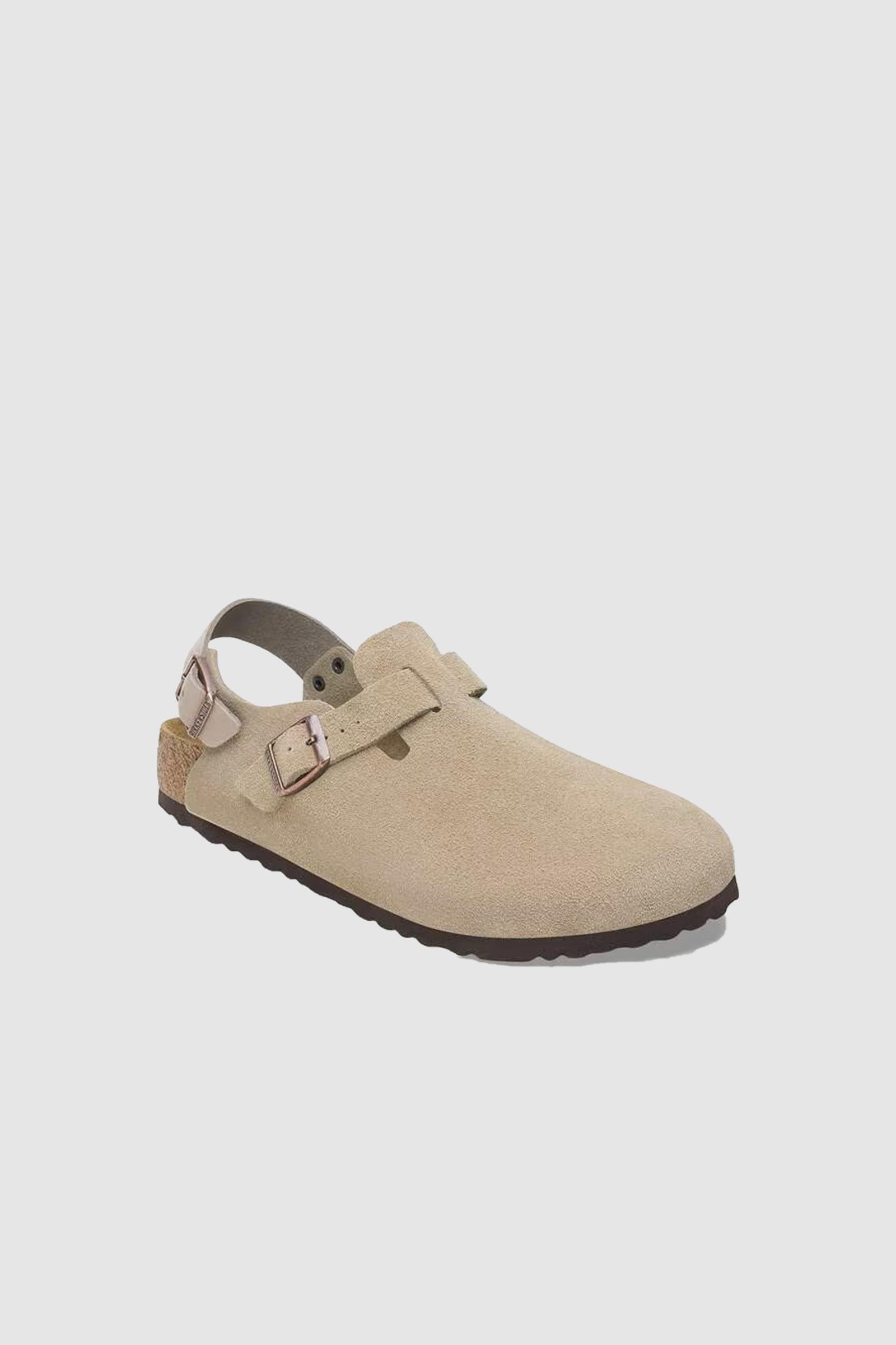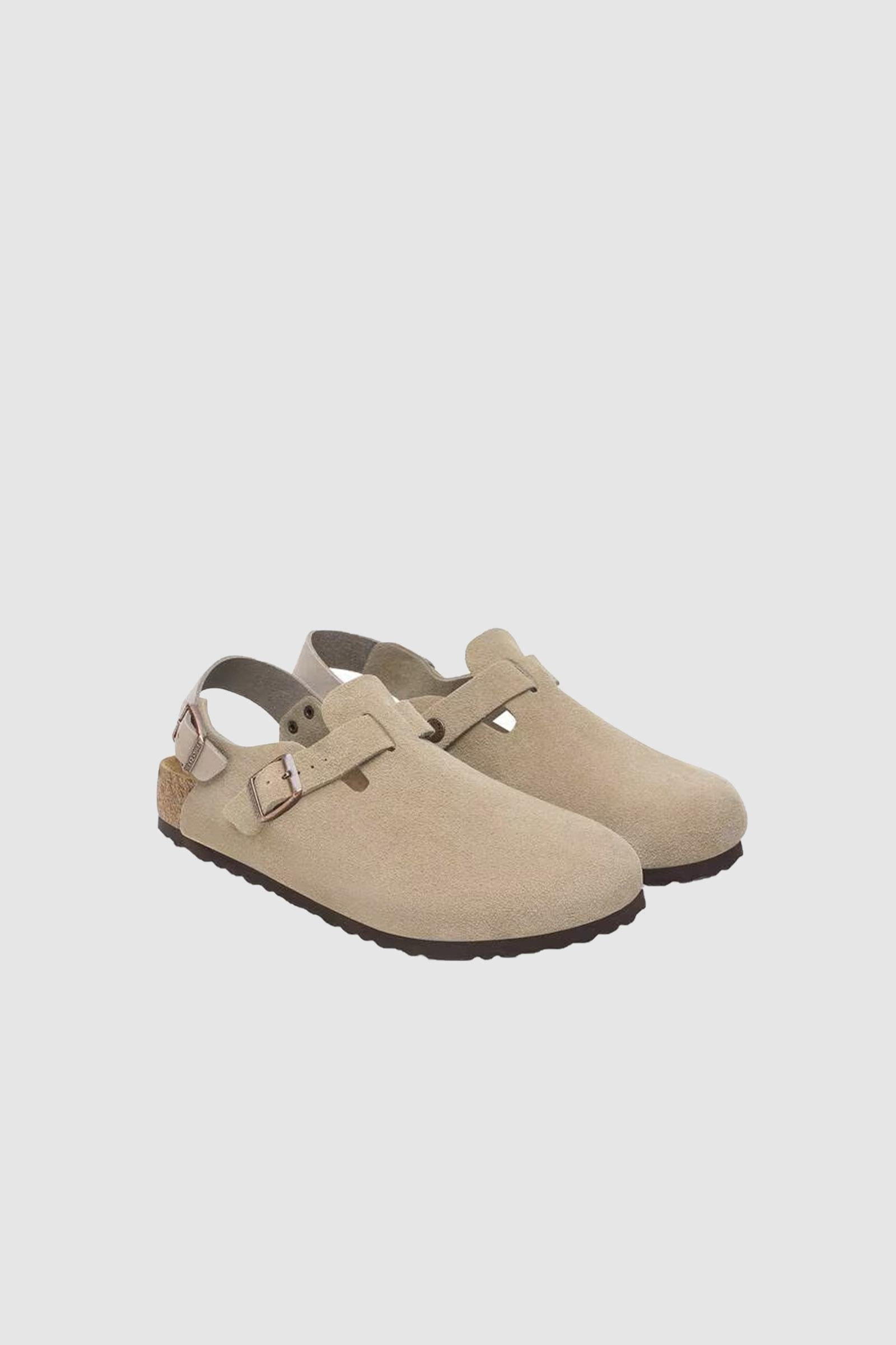 BIRKENSTOCK Tokio è una variazione del classico Boston. Il modello è caratterizzato dal cinturino per il tallone e può essere indossato tutto l'anno. La tomaia è in pelle scamosciata particolarmente morbida che aderisce al piede come una seconda pelle.