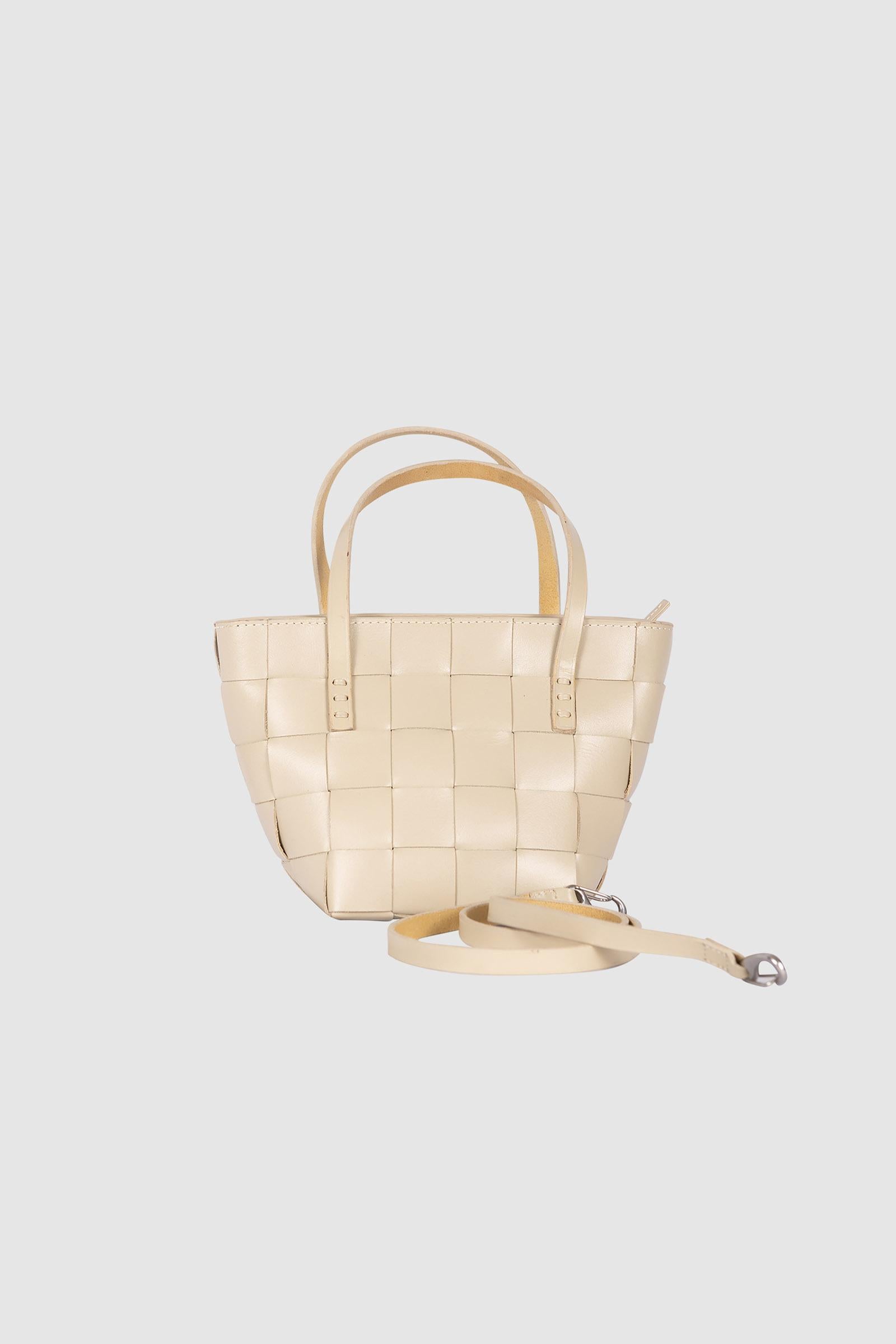La "Japan Mini" è una versione compatta della popolare Japan Tote, mantenendo gli stessi elevati standard qualitativi grazie alla sua morbida pelle bovina. Questa mini tote presenta un design a intreccio incrociato che sfoggia un tocco contemporaneo e artistico, rendendola la scelta ideale per chi apprezza stile e funzionalità in un formato più piccolo.
