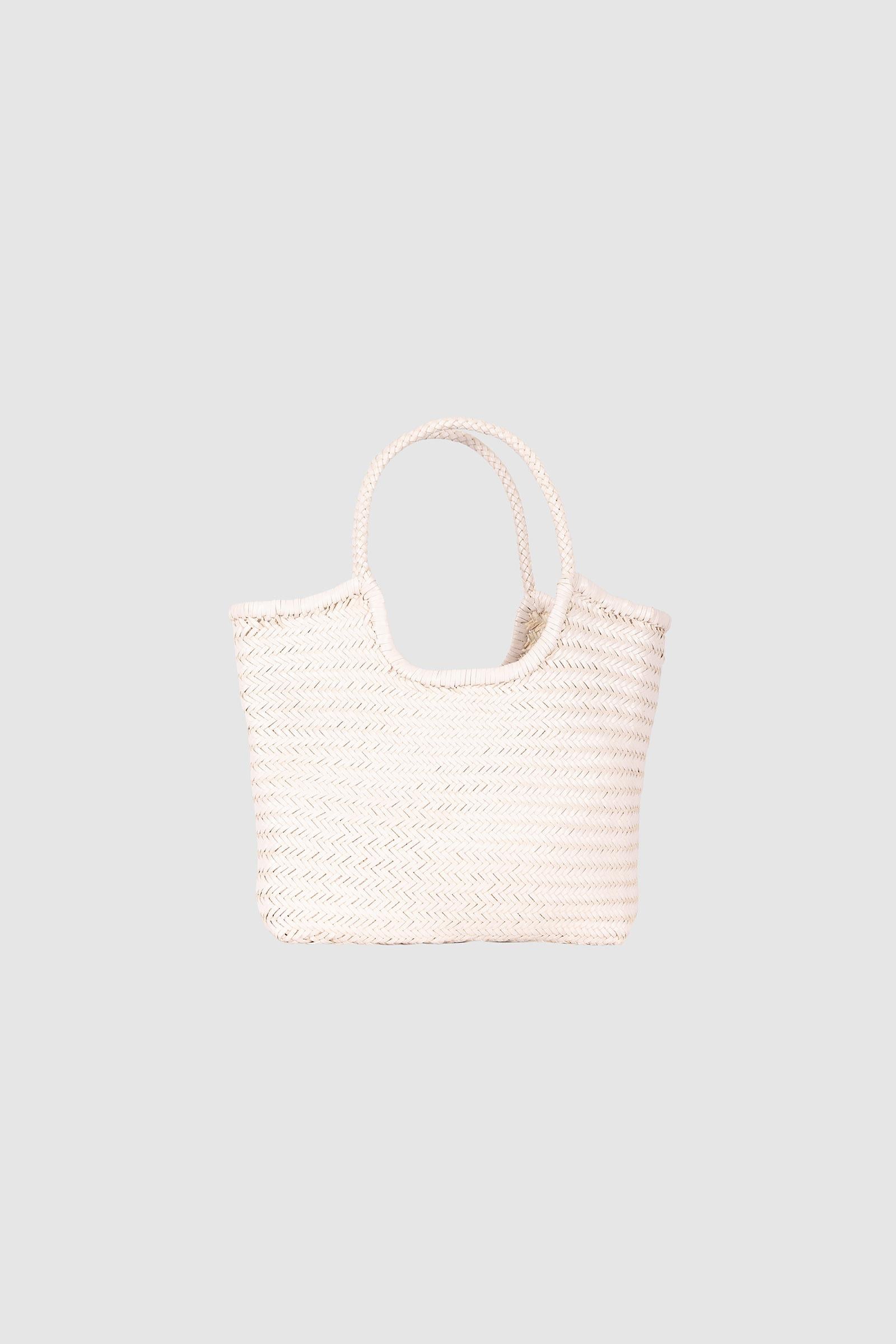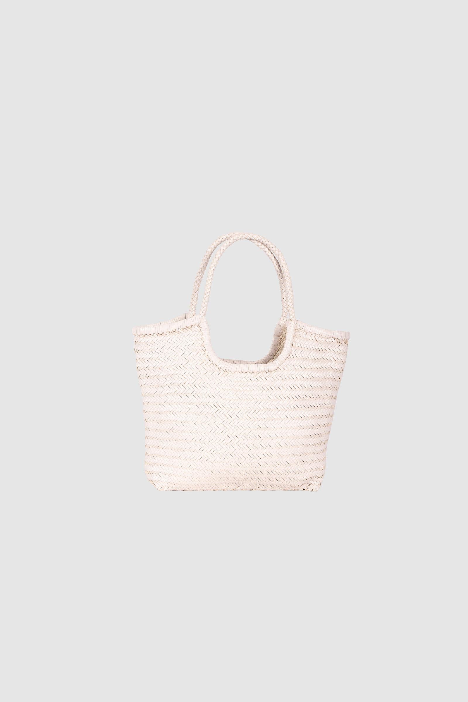 La "NS Diagonal Triple Jump" è una borsa a tracolla che si distingue per la sua pelle di vitello di bufalo intrecciata a mano e l'elegante design verticale. È profonda, sfoderata e ha una parte superiore aperta, che facilita lo stoccaggio di tutto il necessario. I manici intrecciati non solo sono esteticamente gradevoli, ma sono anche comodi da trasportare. Questa borsa richiama le vibrazioni delle tote bag di Nantucket, ma con un tocco fresco e verticale. È perfetta per chi cerca un mix di eleganza casual e praticità.