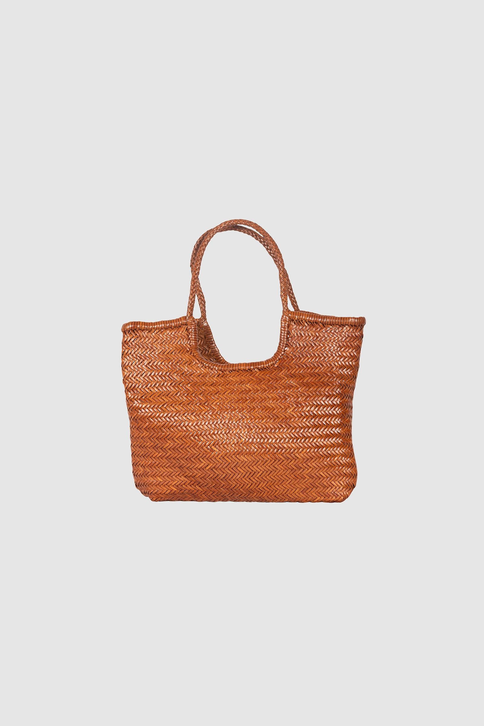 La "NS Diagonal Triple Jump" è una borsa a tracolla che si distingue per la sua pelle di vitello di bufalo intrecciata a mano e l'elegante design verticale. È profonda, sfoderata e ha una parte superiore aperta, che facilita lo stoccaggio di tutto il necessario. I manici intrecciati non solo sono esteticamente gradevoli, ma sono anche comodi da trasportare. Questa borsa richiama le vibrazioni delle tote bag di Nantucket, ma con un tocco fresco e verticale. È perfetta per chi cerca un mix di eleganza casual e praticità.