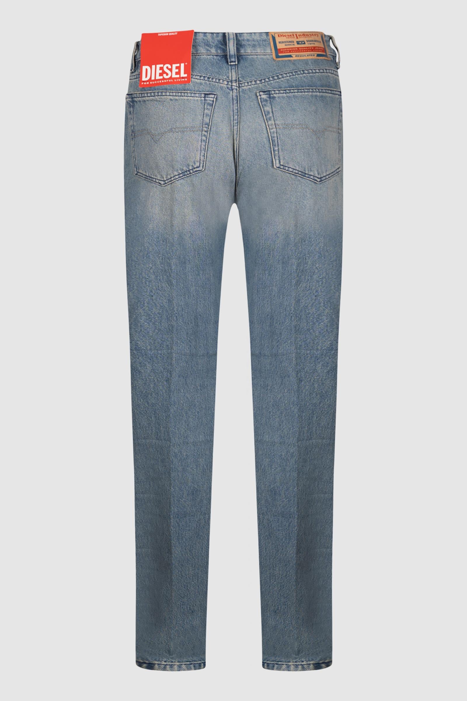 Realizzato in denim comfort, questo lavaggio versatile fa parte della selezione DNA Diesel. È realizzato con una percentuale di cotone riciclato e presenta whisker ed effetti usati nei toni del blu medio.