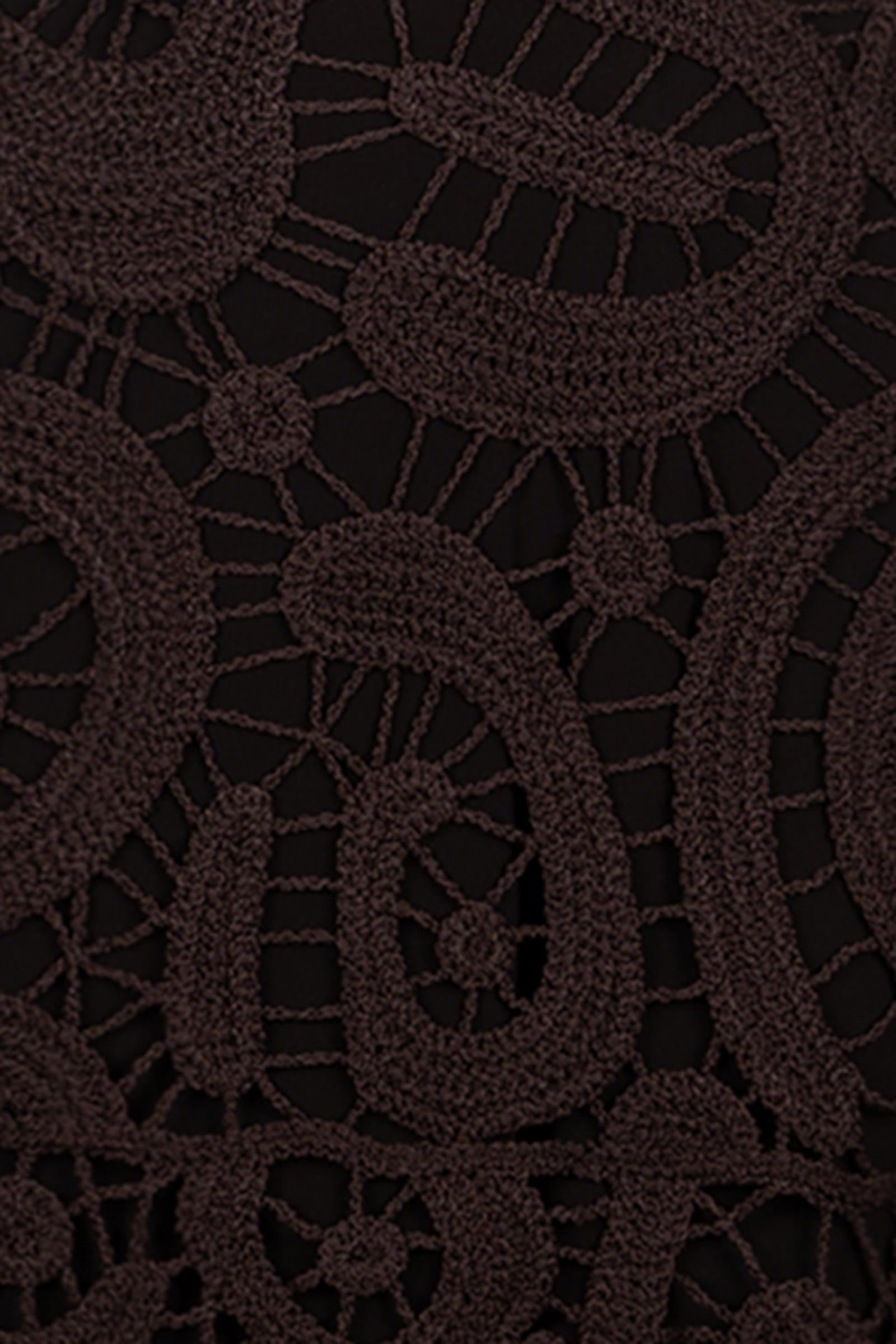 Abito midi con girocollo e design smanicato, caratterizzato da uno strato superiore con raffinata lavorazione crochet dall'innovativo motivo geometrico che, grazie alla sottoveste interna tinta unita, dona dinamismo al design e crea un effetto vedo non vedo. Il vestito, seducente ma senza rinunciare a una buona dose di comfort, è un outfit perfetto per serate speciali e party esclusivi, soprattutto se abbinato a un paio di sandali col tacco e a gioielli scintillanti.1° Filato Esterno: VISCOSA 63% NYLON 37% - 2° Filato Esterno: POLIESTERE 100% - Fodera Accessoria: POLIESTERE 95% ELASTAN 5%Lavare a mano - Non trattare con cloro - Non usare asciugatrice - Stirare a temperatura massima 110 °C - Non lavare a secco - Asciugare in piano - Lavare a mano delicatamente con detersivo neutro in acqua fredda