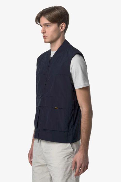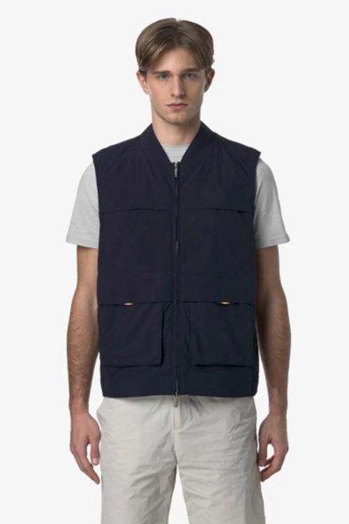 Erhin è una giacca smanicata da uomo dal look sportivo, ideale per rispondere alle esigenze di un clima primaverile mutevole. Il capo è realizzato in nylon con una texture lievemente increspata. Il gilet presenta colletto, due tasche applicate e fondo regolabile con coulisse.
