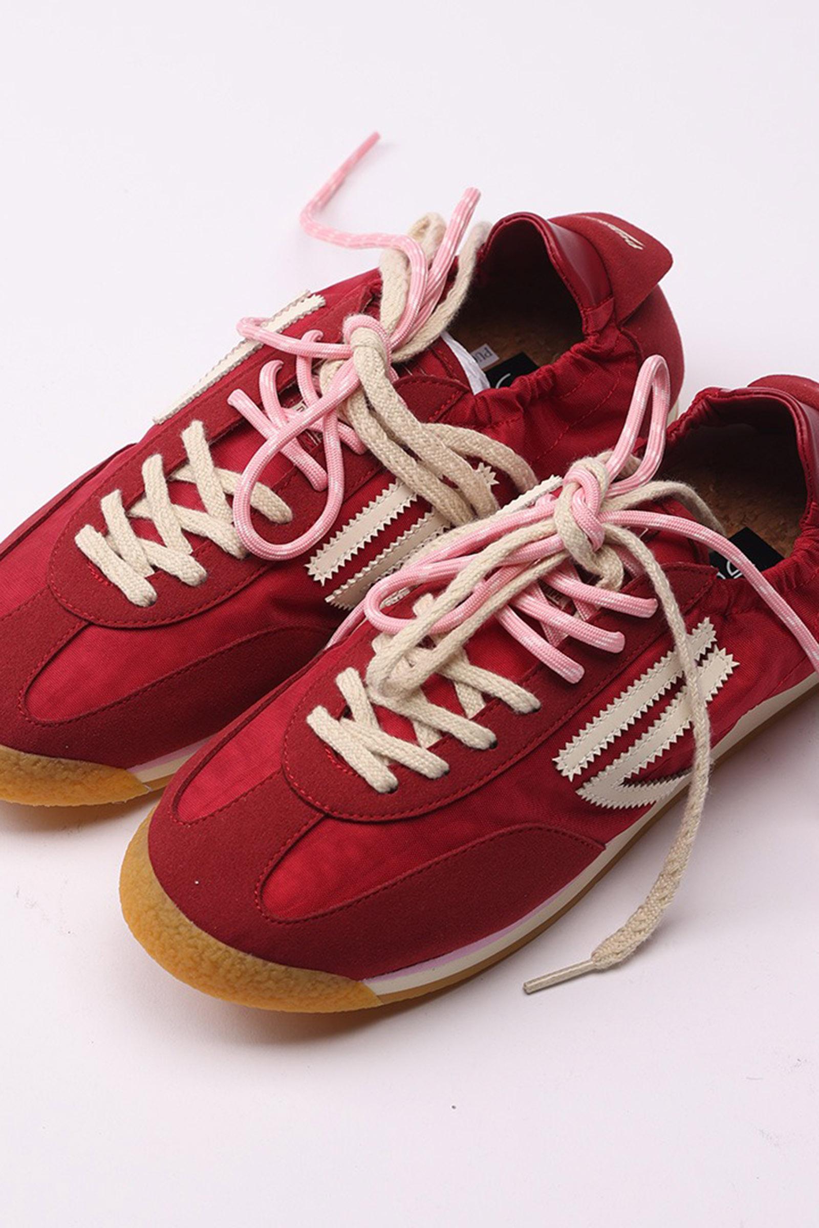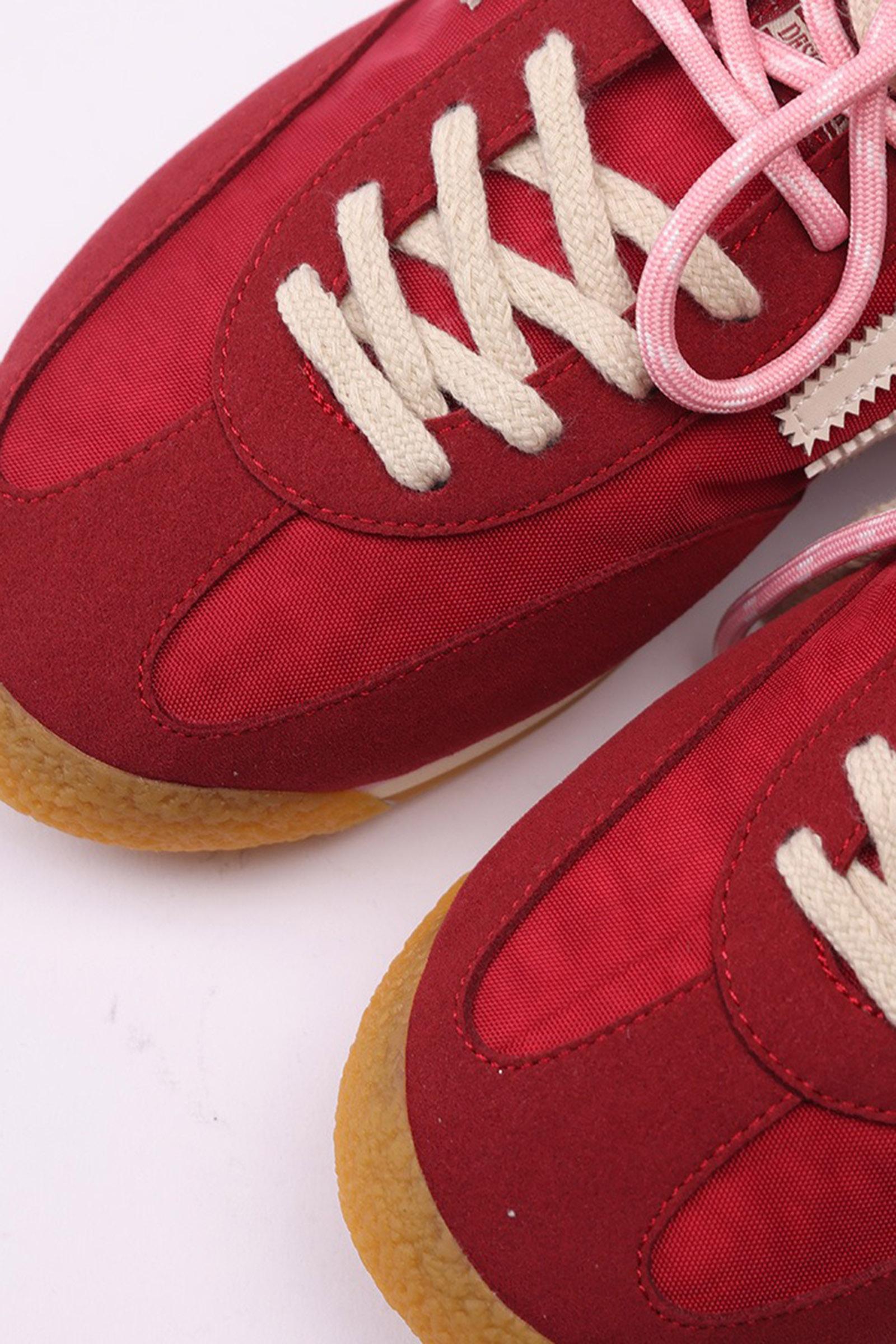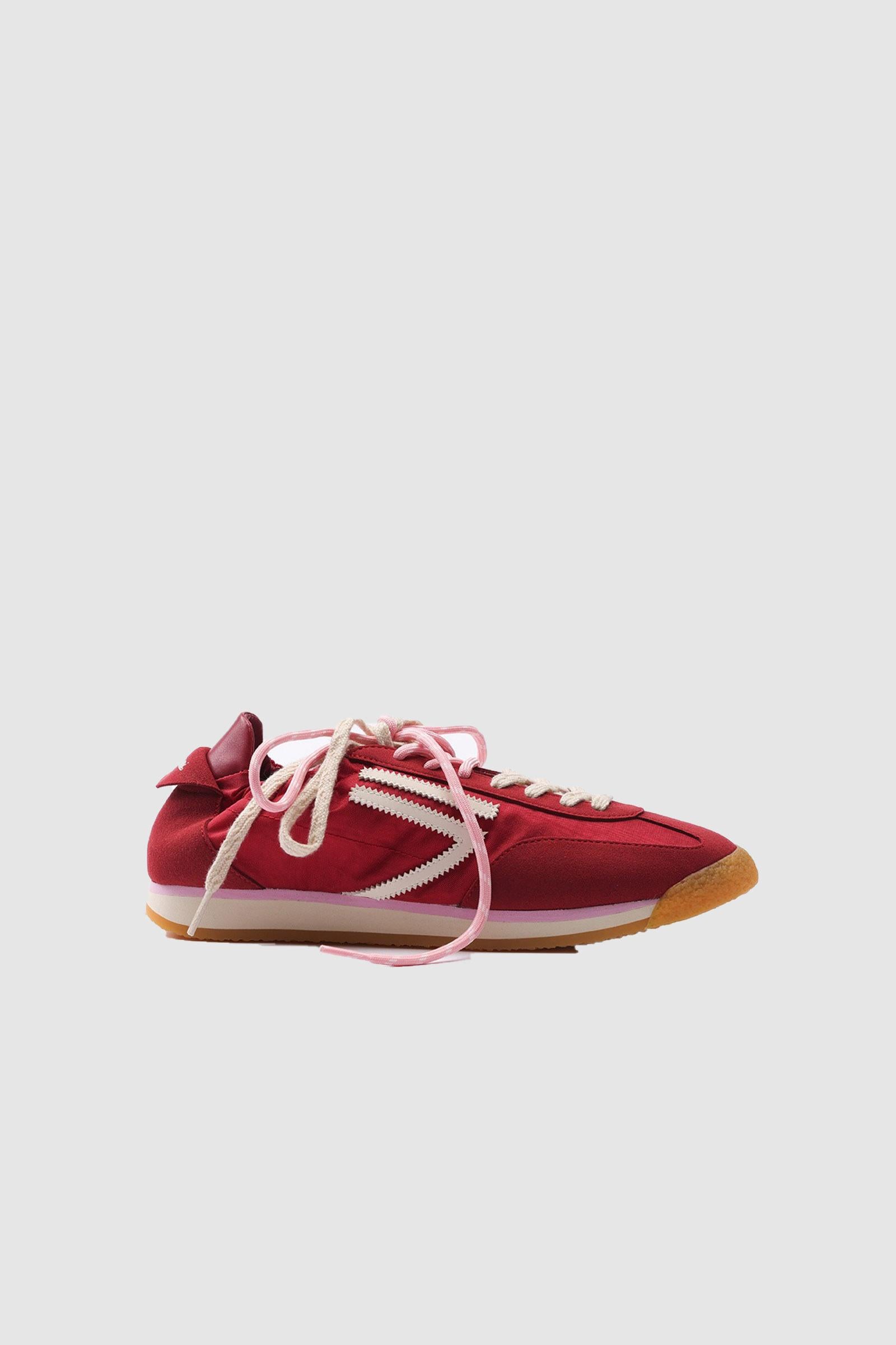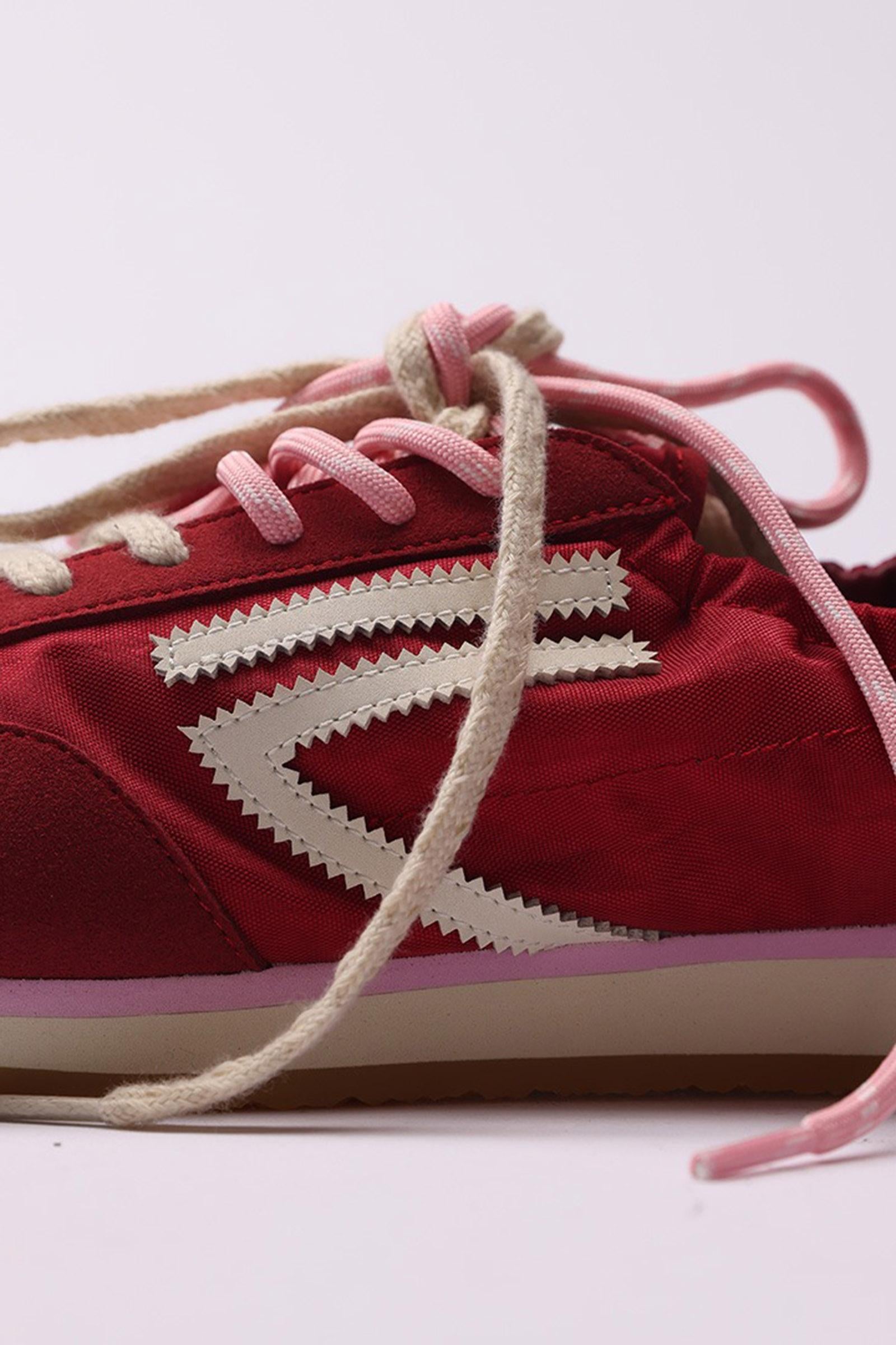 Nylon rosso e microsuede con logo bianco sporco e