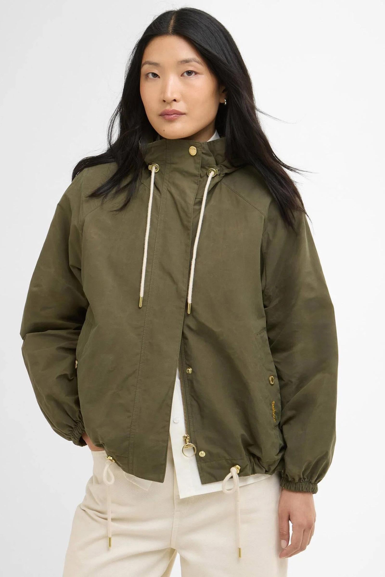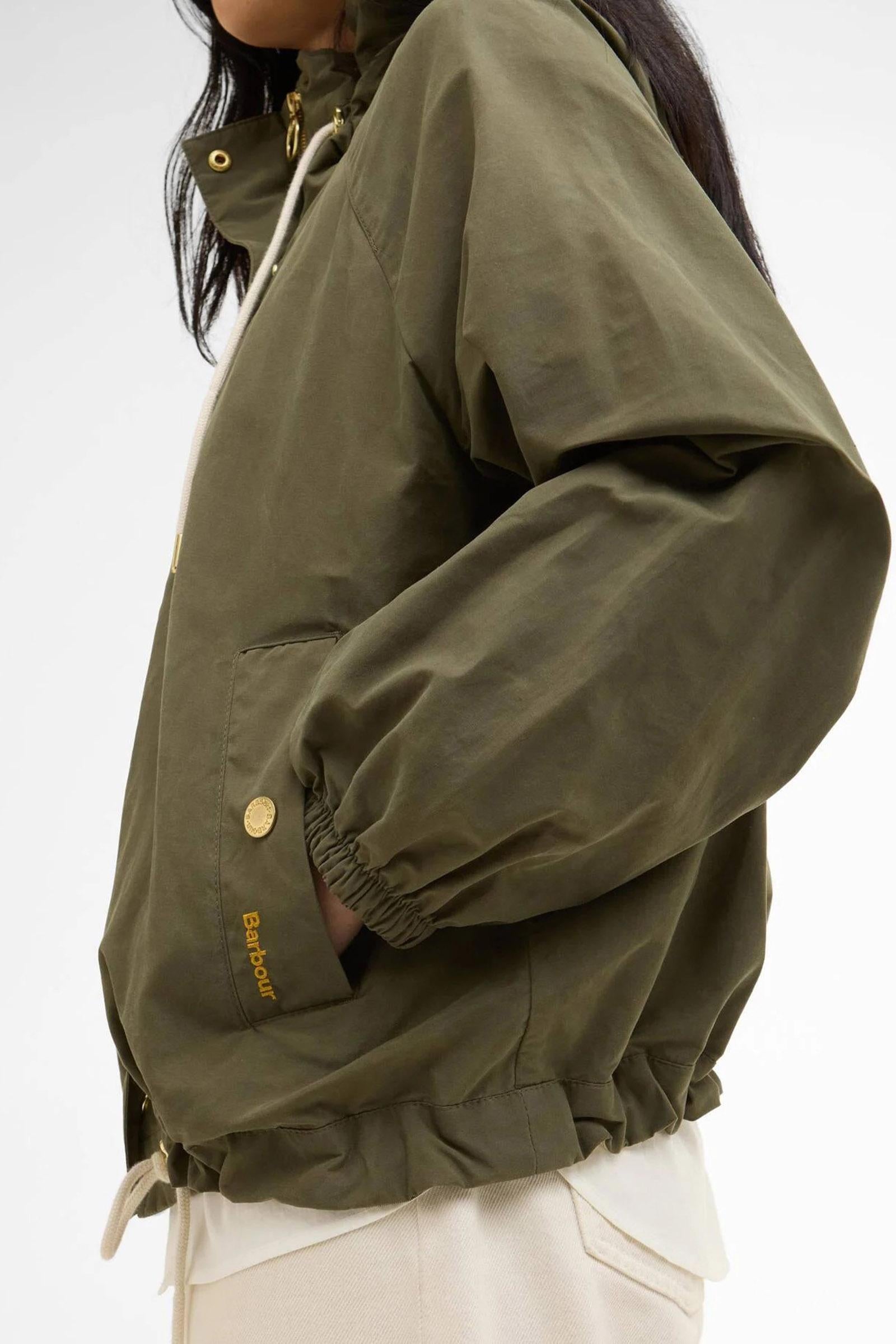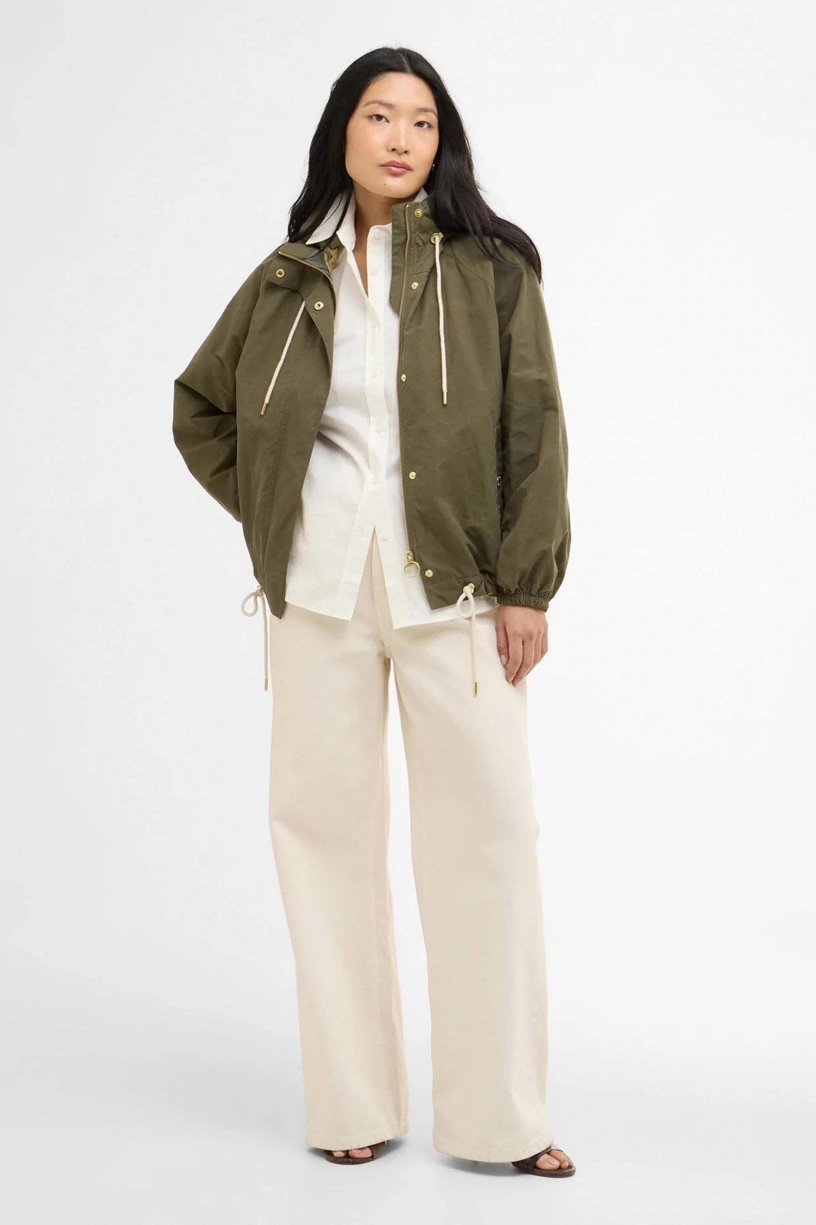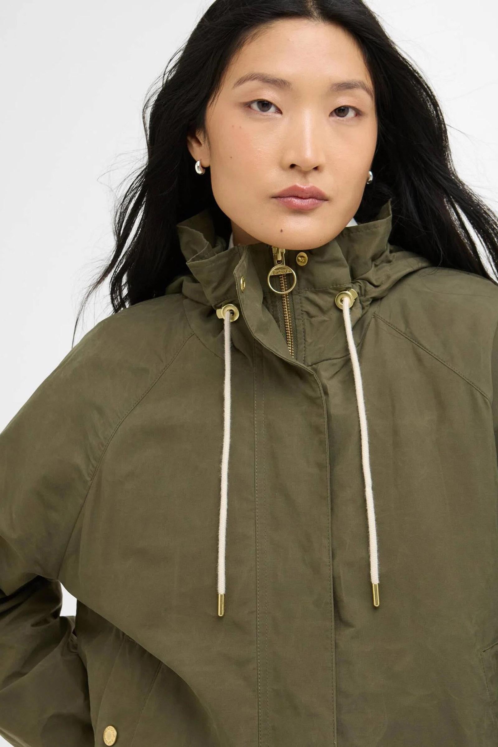La giacca antipioggia Hawkridge di Barbour offre una versione moderna e femminile di un pratico capospalla. Caratterizzata da una silhouette svasata che esalta la figura, presenta un cappuccio con coulisse in cotone per garantire una maggiore protezione e un coulisse coordinata sull'orlo per personalizzarne la vestibilità. Questo capospalla leggero è impreziosito dagli inconfondibili dettagli di Barbour quali le tasche a filetto con bottoni a pressione e il cappuccio foderato in tartan. Con questa giacca potrai affrontare con disinvoltura qualsiasi condizione atmosferica.Esterno: 70% cotone, 30% poliammide