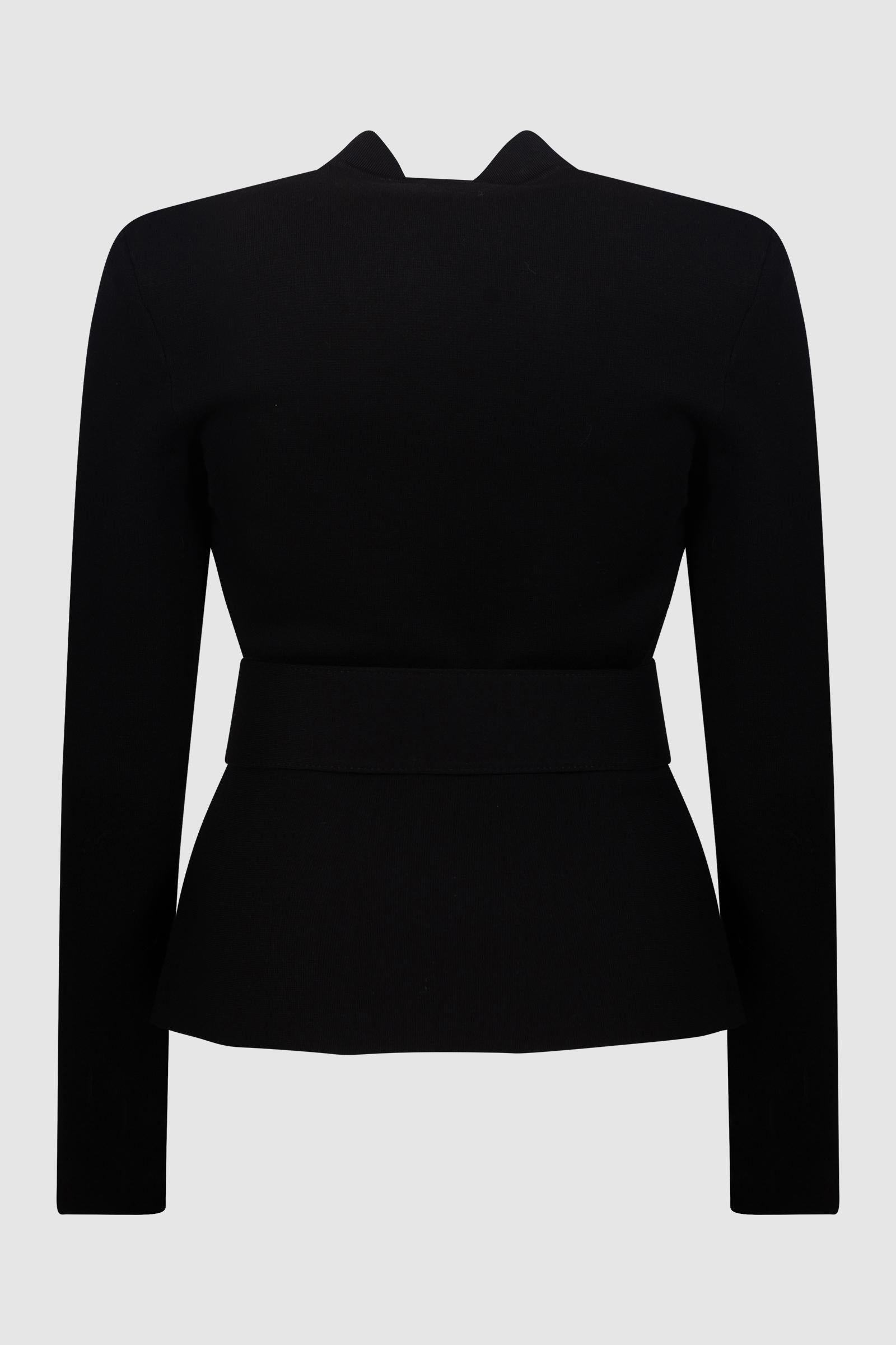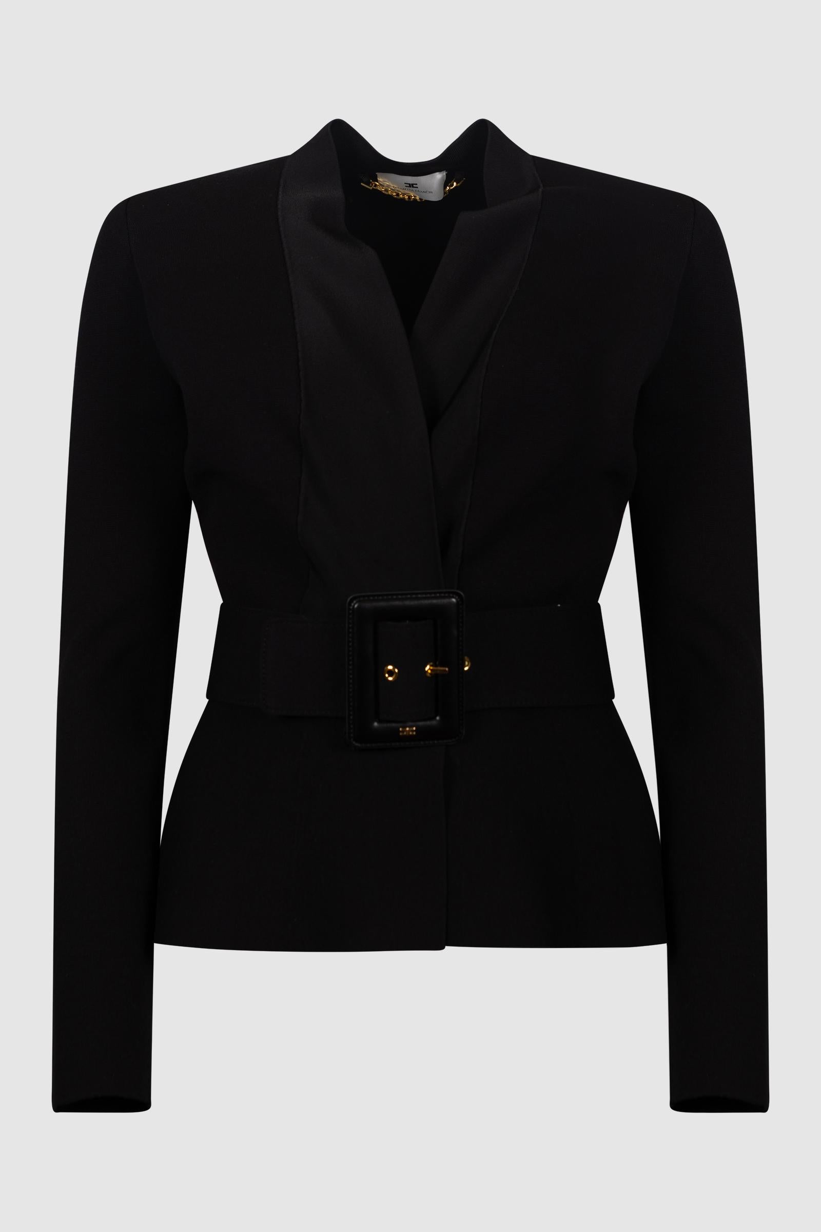 Un capo iconico e intramontabile firmato Elisabetta Franchi, questa giacca nera rappresenta l'eleganza contemporanea.