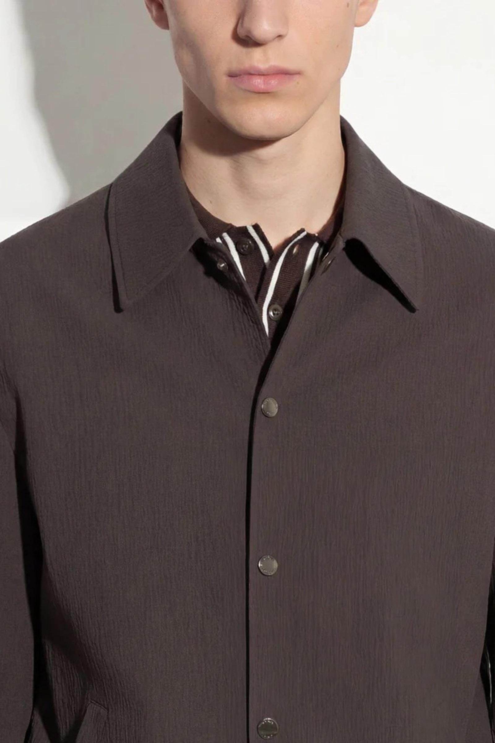 Giubbotto dalla linea sobria e funzionale, pensato per un utilizzo quotidiano. Il seersucker di cotone introduce una texture leggermente increspata che rende il capo leggero e traspirante, mantenendo una struttura ordinata. La costruzione è definita da una chiusura frontale con bottoni, tasche laterali e finiture curate.