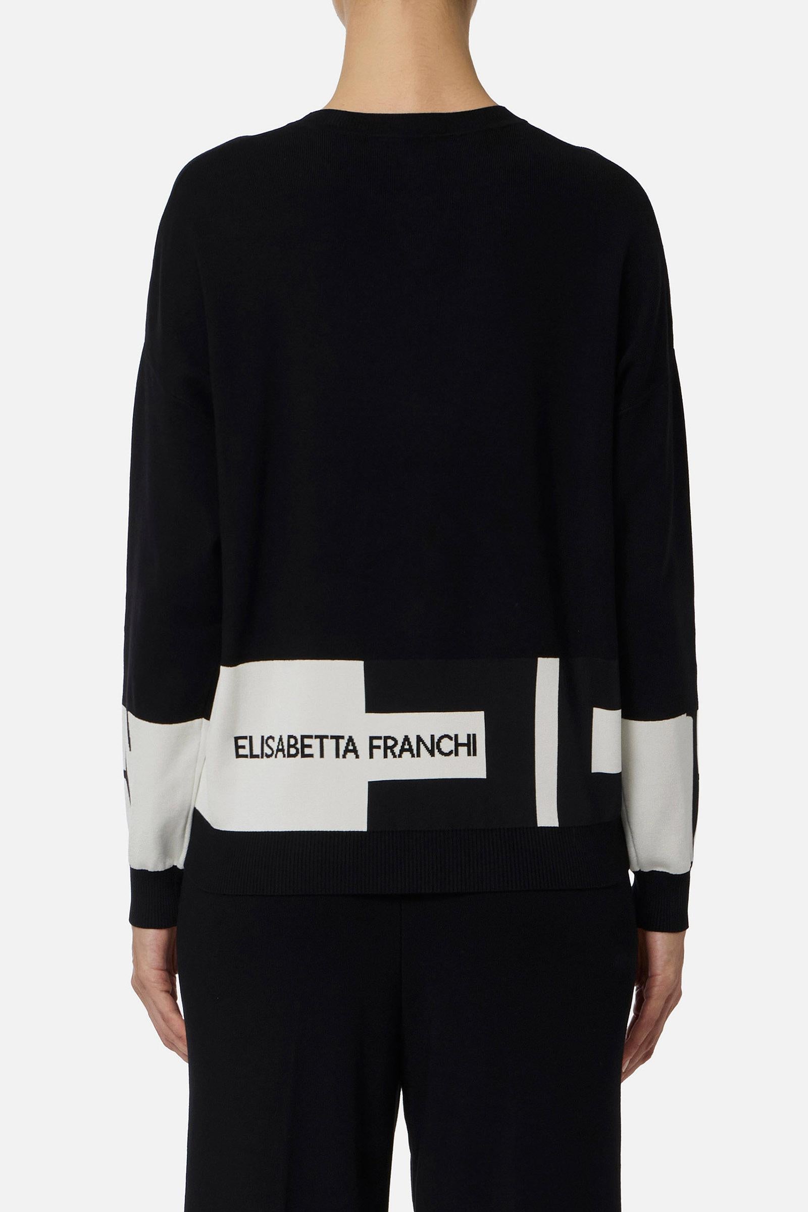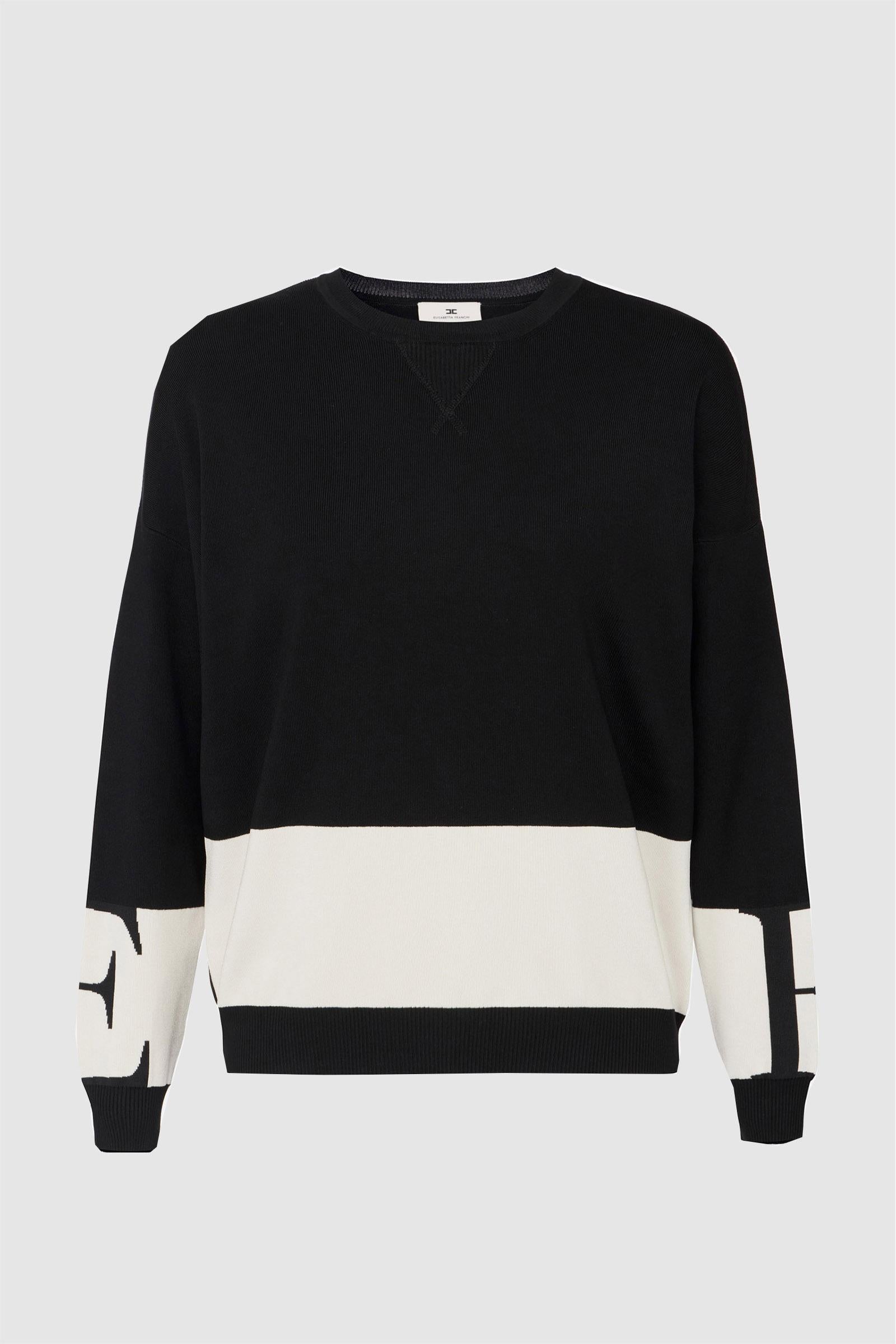 Maglia in viscosa dalla vestibilità regular. Con girocollo ampio, si distingue per i loghi intarsiati in viscosa lucida sulle maniche e sul retro, a creare dei decisi effetti color-block.