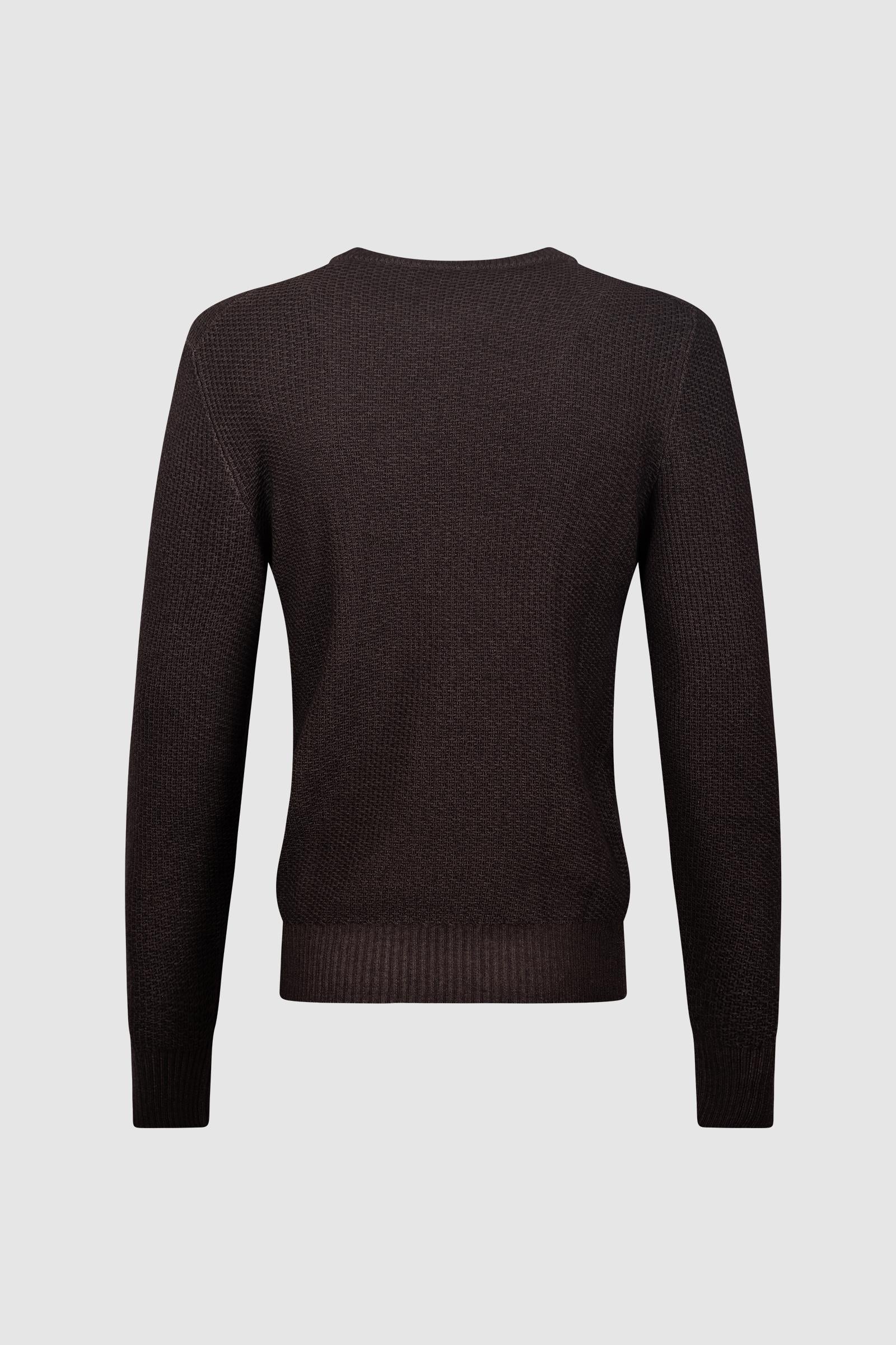 Realizzato in morbida lana con lavorazione a trama fine, presenta un design pulito e raffinato, con girocollo, maniche lunghe e finiture a costine su fondo e polsini.