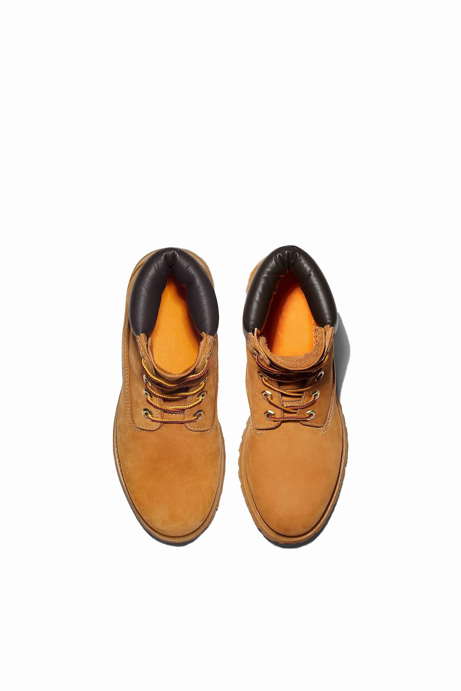 Stivale impermeabile Timberland® Premium 6-Inch da donna realizzato in pelle Premium Leather di Timberland®, con fodera in tessuto ReBOTL™ contenente almeno il 50% di plastica riciclata. Scopri il massimo del comfort grazie alla suola preformata in gomma ad alta aderenza e 200 grammi di imbottitura PrimaLoft® per piedi sempre al caldo. La tecnologia Anti-Fatigue assicura un'aderenza e una stabilità ottimali tutto il giorno, mentre la struttura con cuciture saldate tiene i piedi all'asciutto. Timberland sostiene una produzione della pelle più responsabile attraverso il Leather Working Group.Comfort