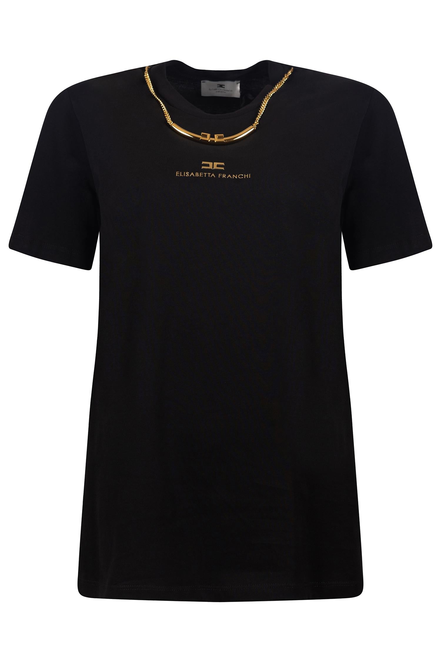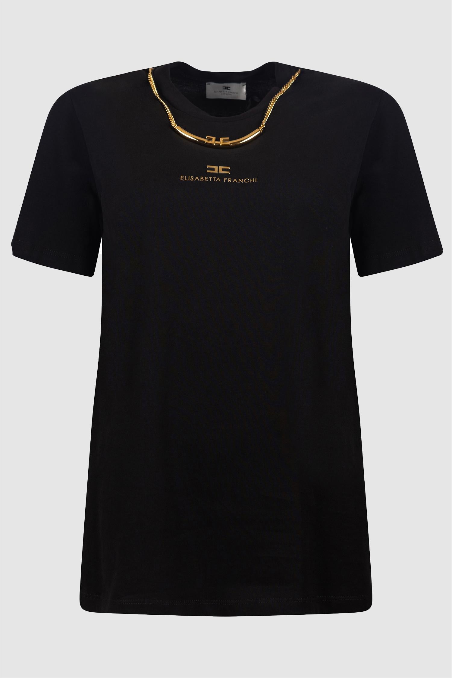 Maglietta a maniche corte in jersey di cotone. È impreziosita dalla collana amovibile con catena, logo centrale ed elementi tubolari in metallo dorato. Il logo a rilievo regala un'ultima nota di luce. Vestibilità regular.