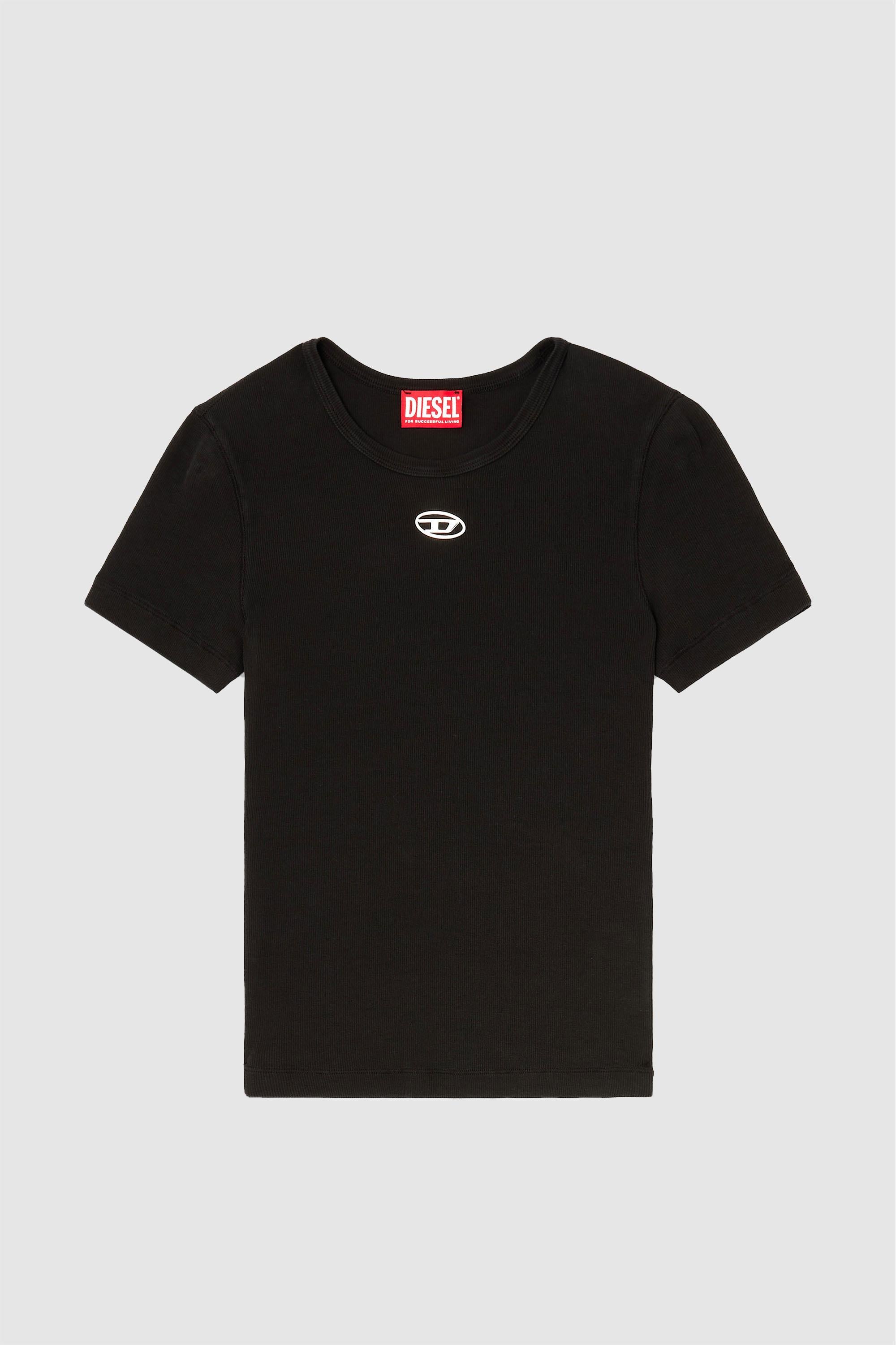 T-shirt slim fit con girocollo e maniche corte. Realizzata in un misto cotone ed elastan a costine sottili, garantisce comfort e una vestibilità aderente. Il logo Oval D metallico stampato a iniezione appena sotto il collo aggiunge un tocco distintivo. La maglia è stata sottoposta a tintura del tessuto e lavaggio in capo per una texture morbida e vissuta.