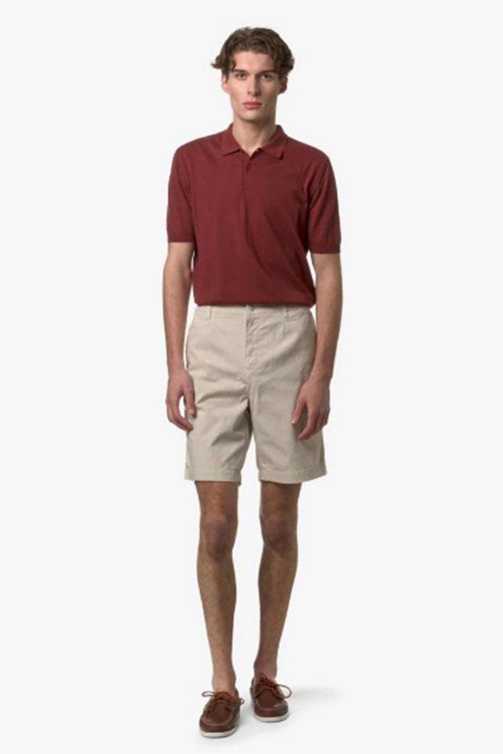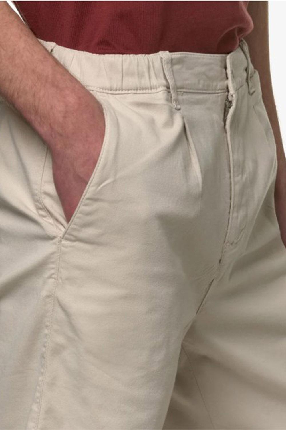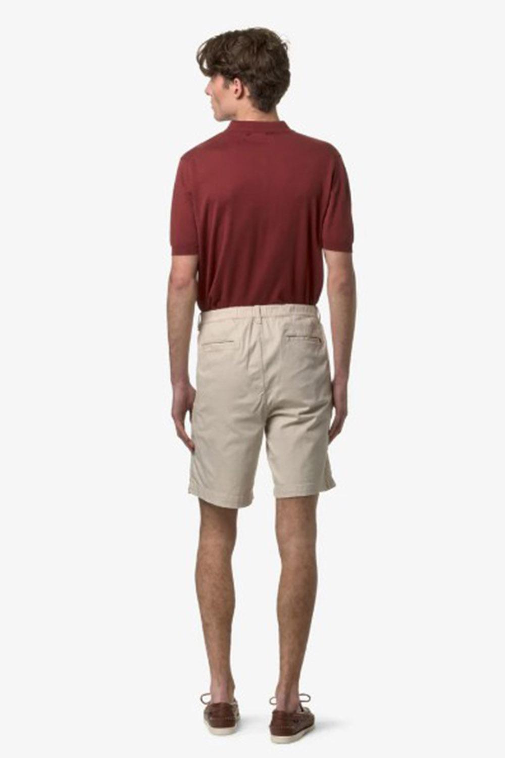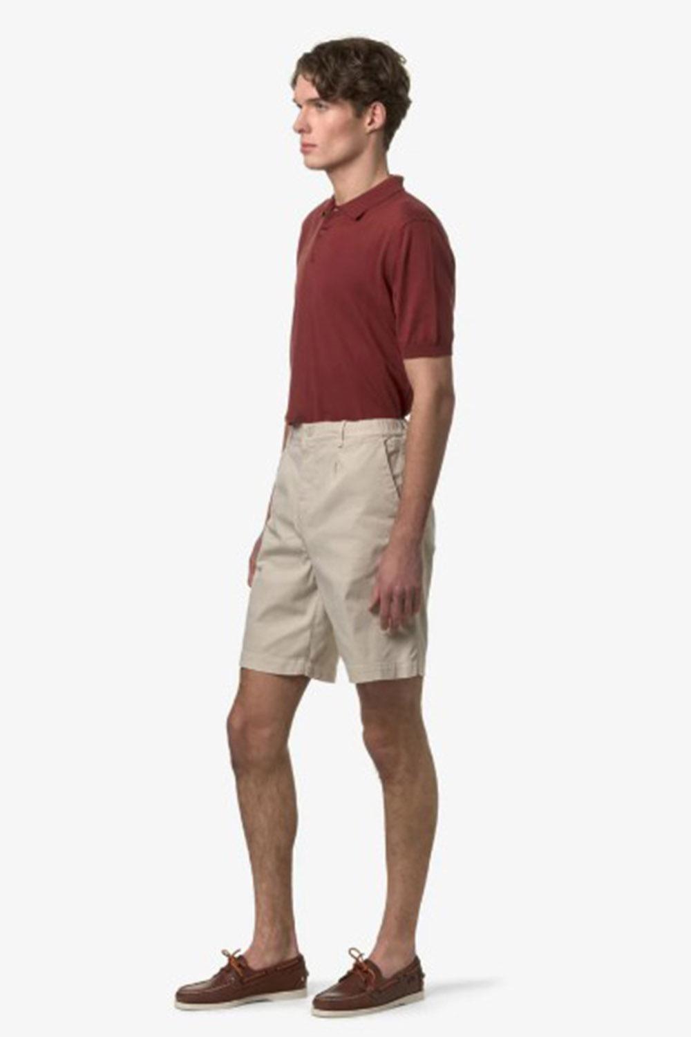 Theon è un bermuda in gabardine da uomo dal look versatile e dalla vestibilità stretch. Confortevoli ed essenziali per le stagioni più calde, questi pantaloni presentano un design chino a gamba dritta con tasche laterali e vita elasticizzata con chiusura a zip e bottone.