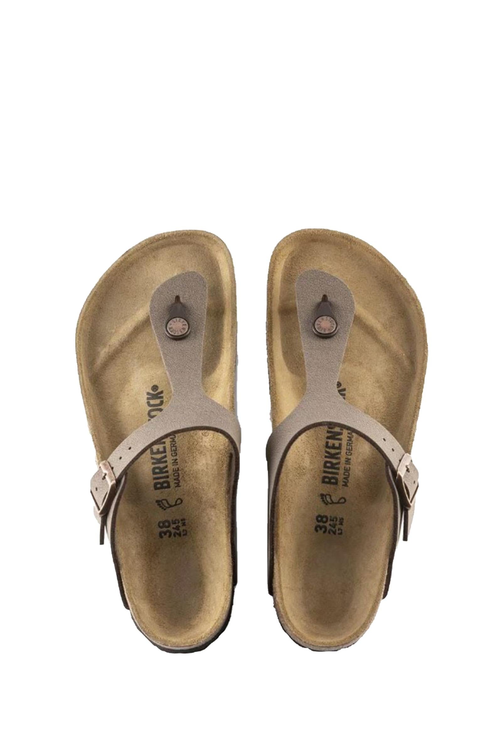 Il modello BIRKENSTOCK Gizeh è un vero classico dallo stile poliedrico. L'elegante sandalo a infradito coniuga l'appoggio ottimale al design minimalista alla moda. La tomaia è in materiale sintetico Birko-Flor® dermoaffine e resistente e presenta un raffinato effetto Nabuk. Grazie alla speciale lavorazione, la tomaia può essere facilmente scambiata per vera pella sia per colore che per texture.