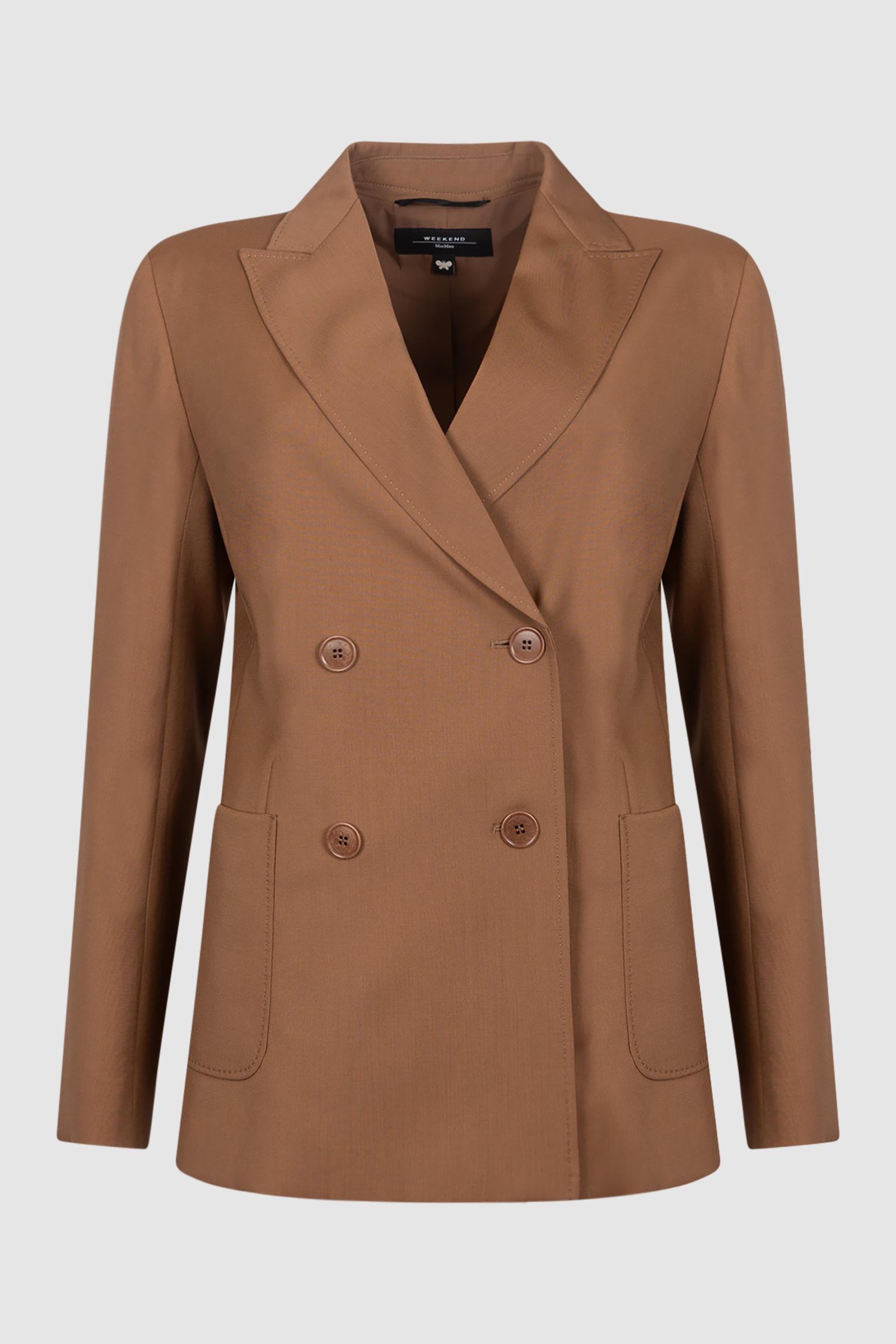 Blazer doppiopetto con costruzione sartoriale e linea leggermente sfiancata.