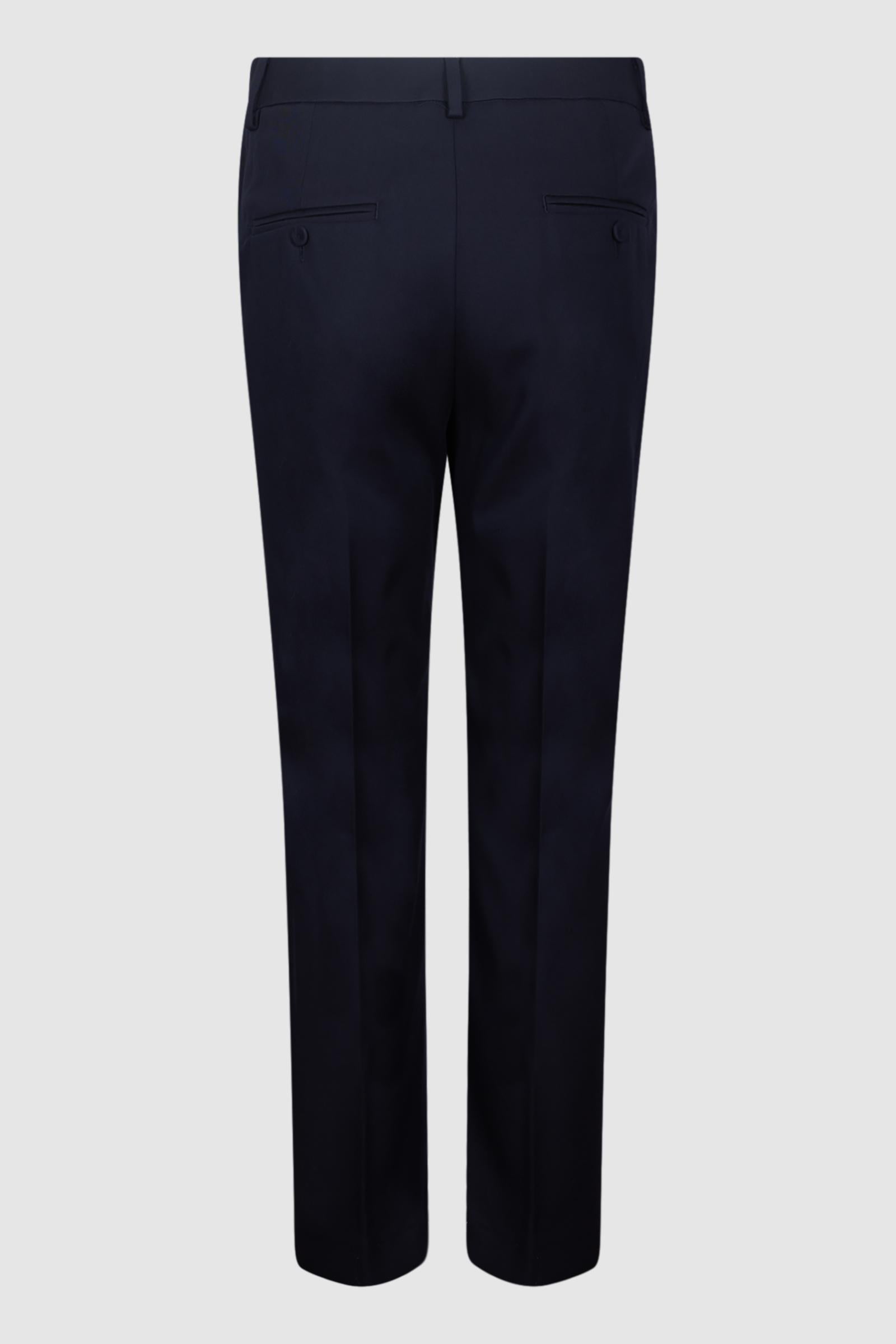 Pantalone a sigaretta con taglio cropped sopra la caviglia.