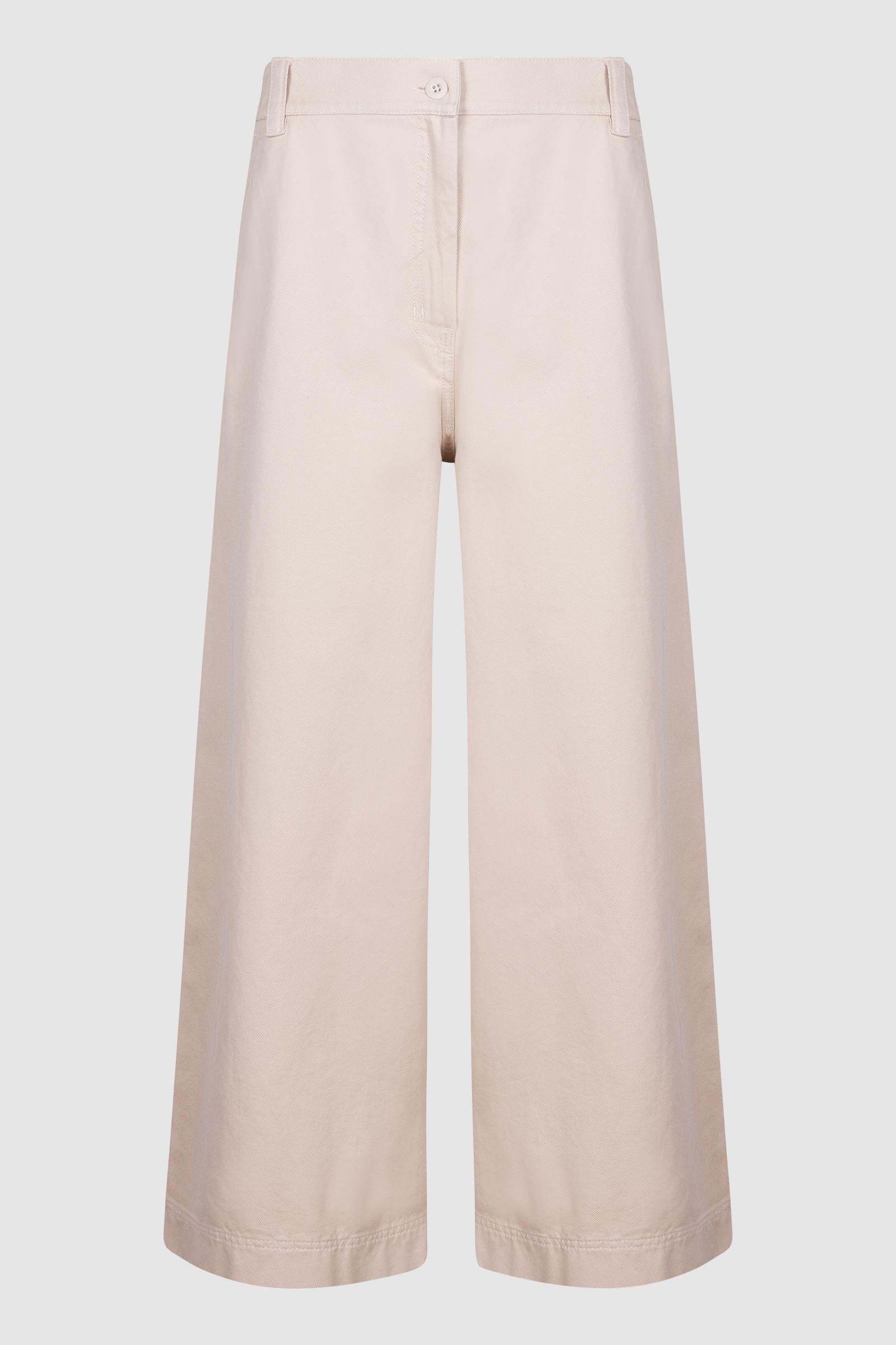 Pantalone cropped alla caviglia, caratterizzato da una silhouette wide leg.