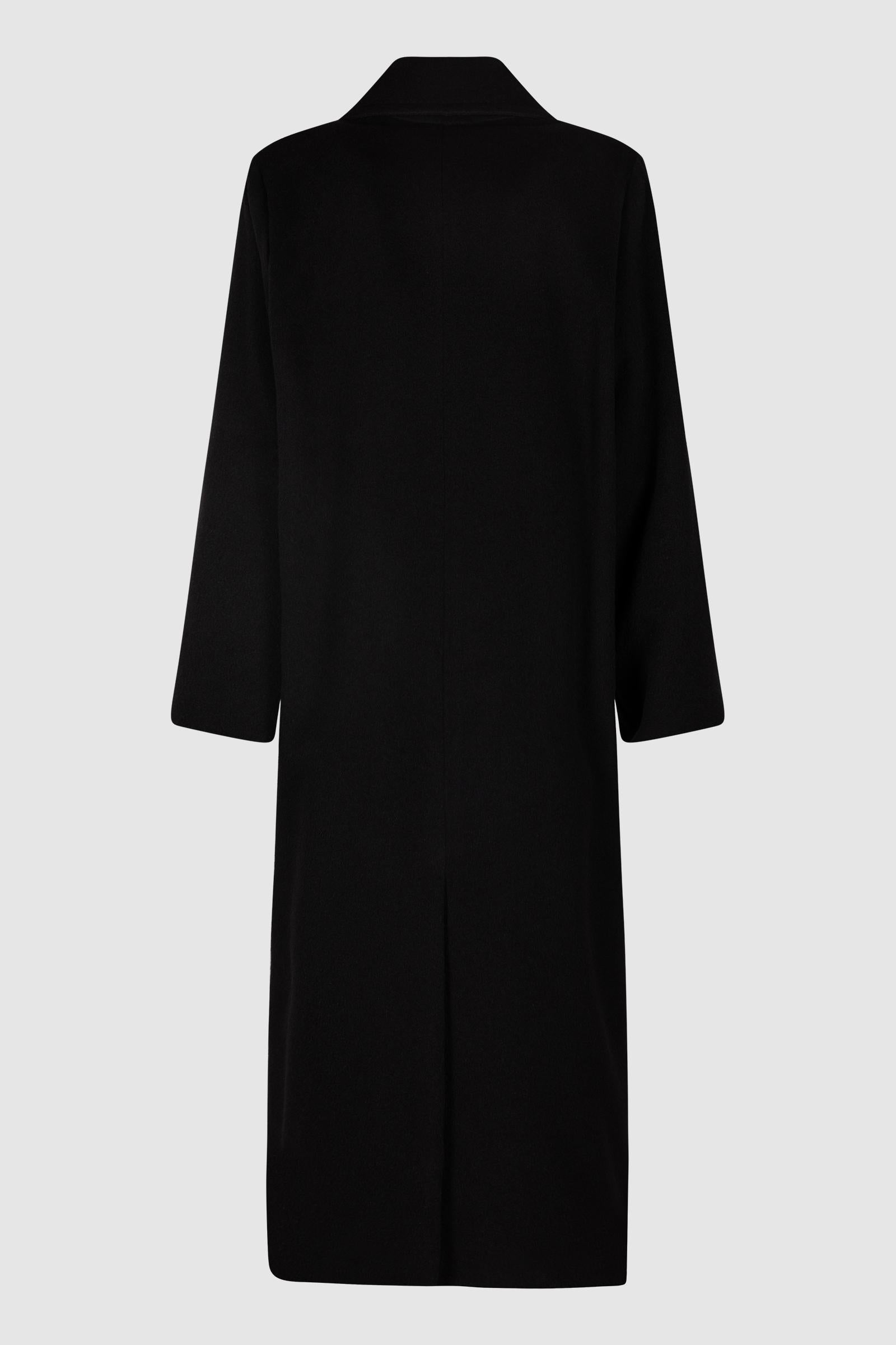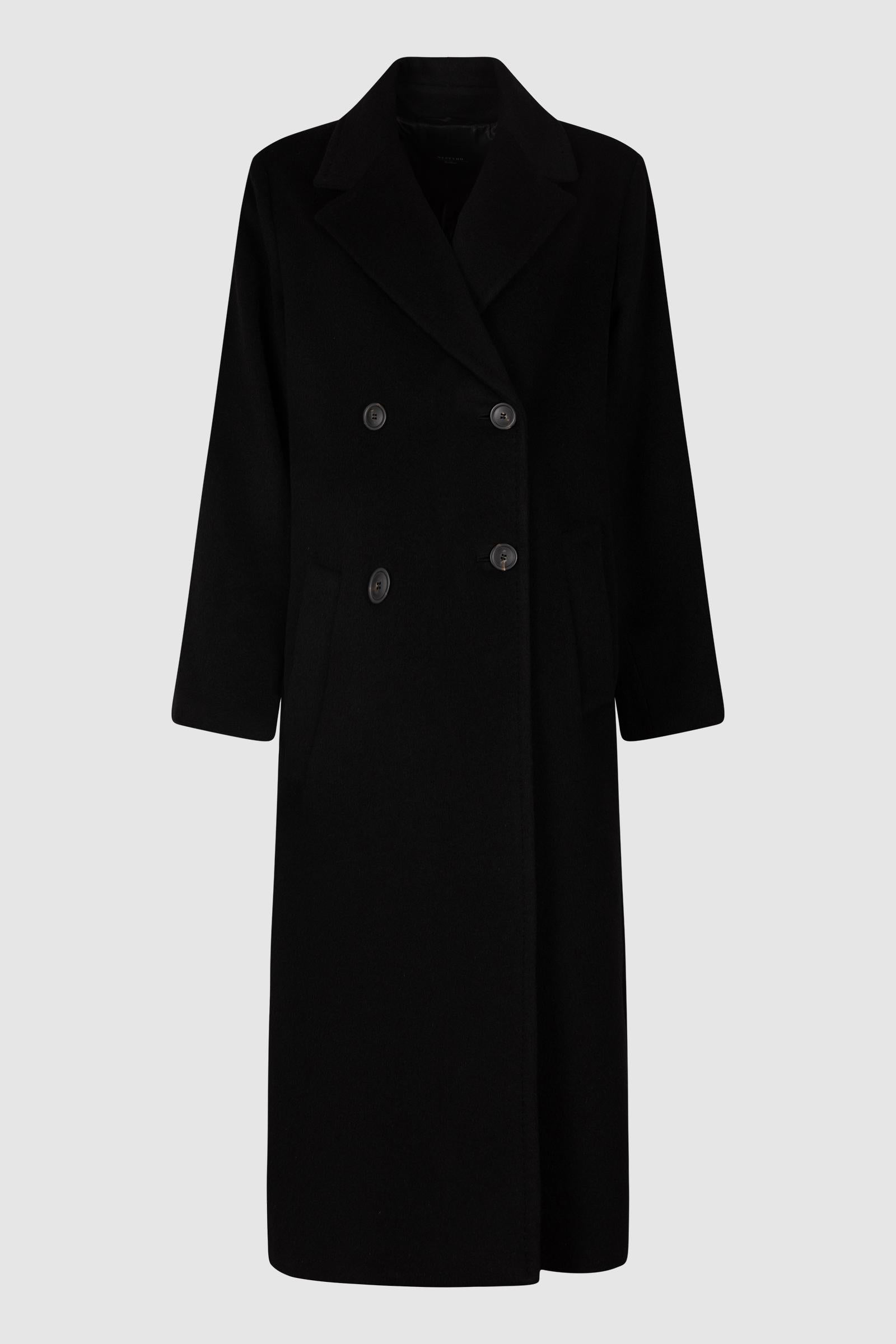 Design: cappotto lungo doppiopetto con chiusura a due bottoni