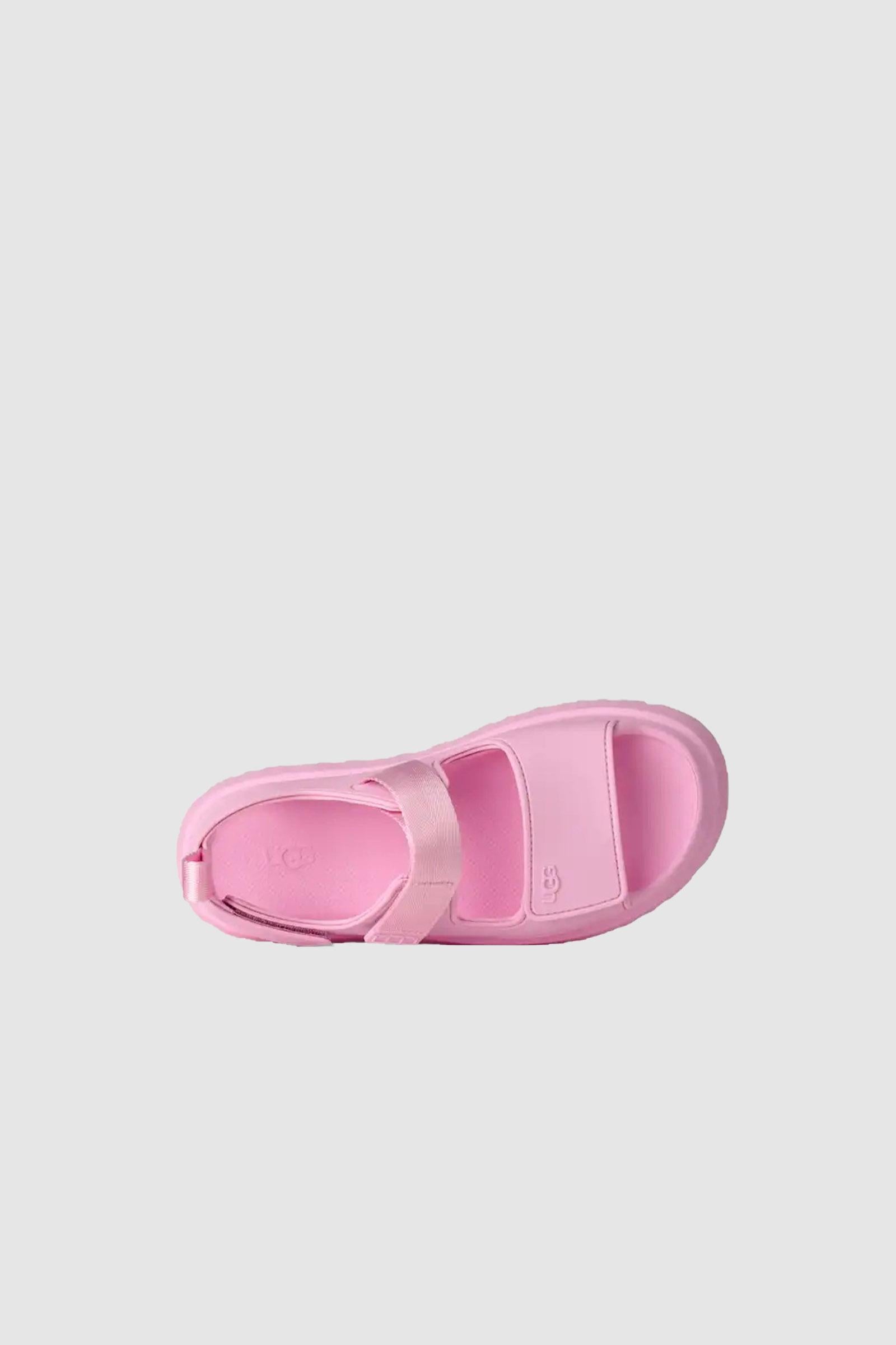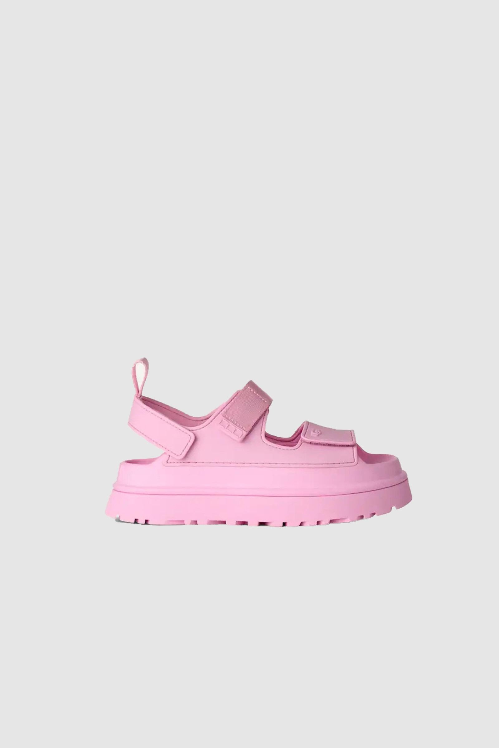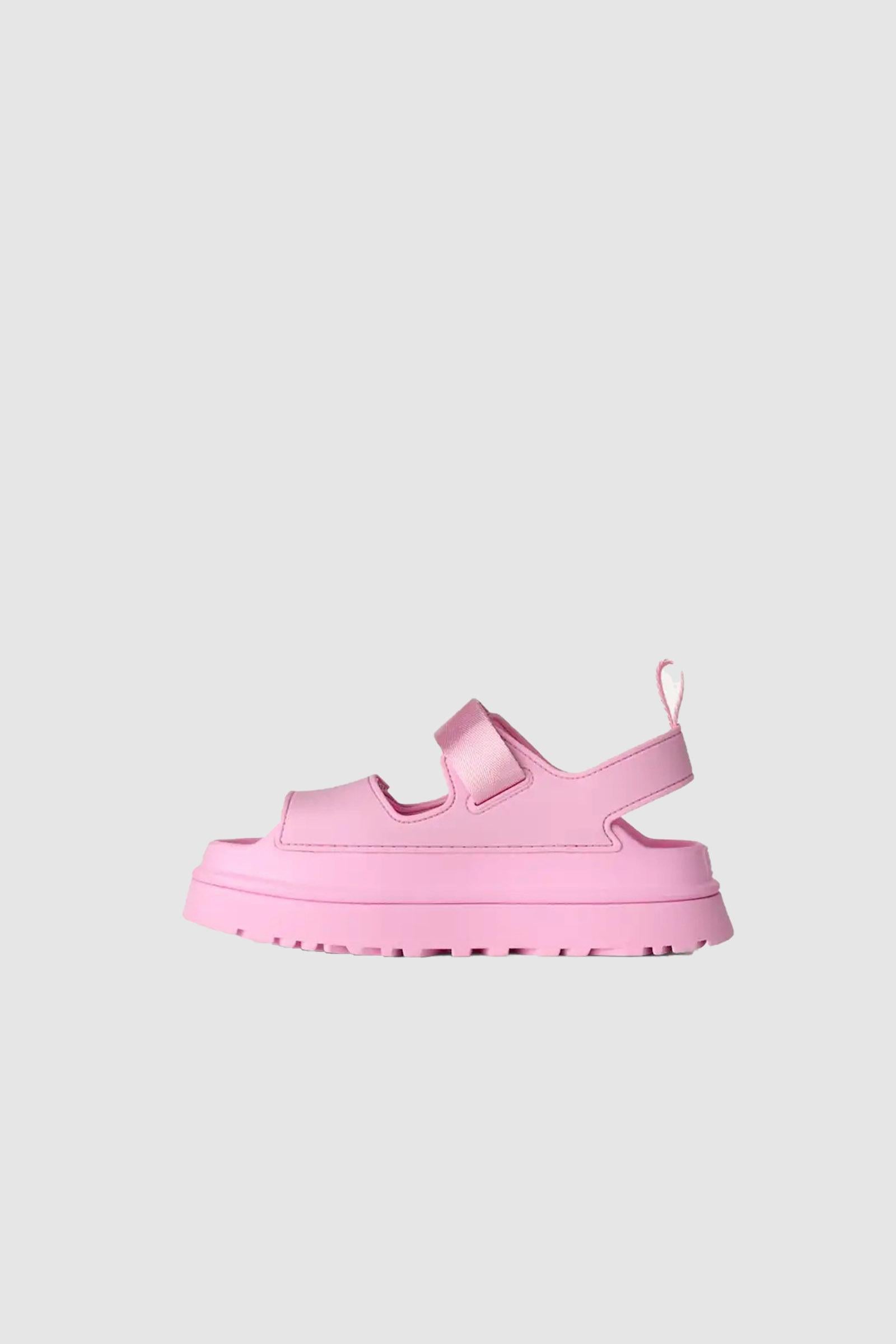 Goditi tutto il piacere che regalano i sandali GoldenGlow. Sono il nostro modello per chi ama farsi notare. Ti basta infilarteli per apprezzarne l'estrema leggerezza ed essere pronta a uscire. La sicurezza fa parte del tuo carattere, ma GoldenGlow ti darà un po' di audacia in più. GoldenGlow è un sandalo completamente regolabile. Questo modello è realizzato in EVA da canna da zucchero, che offre supporto ed elasticità ed è adatto tanto alle giornate piovose quanto a quelle soleggiate. Il plateau con suola a carrarmato e la suola interna aderente offrono tutta la dinamicità che promettono.