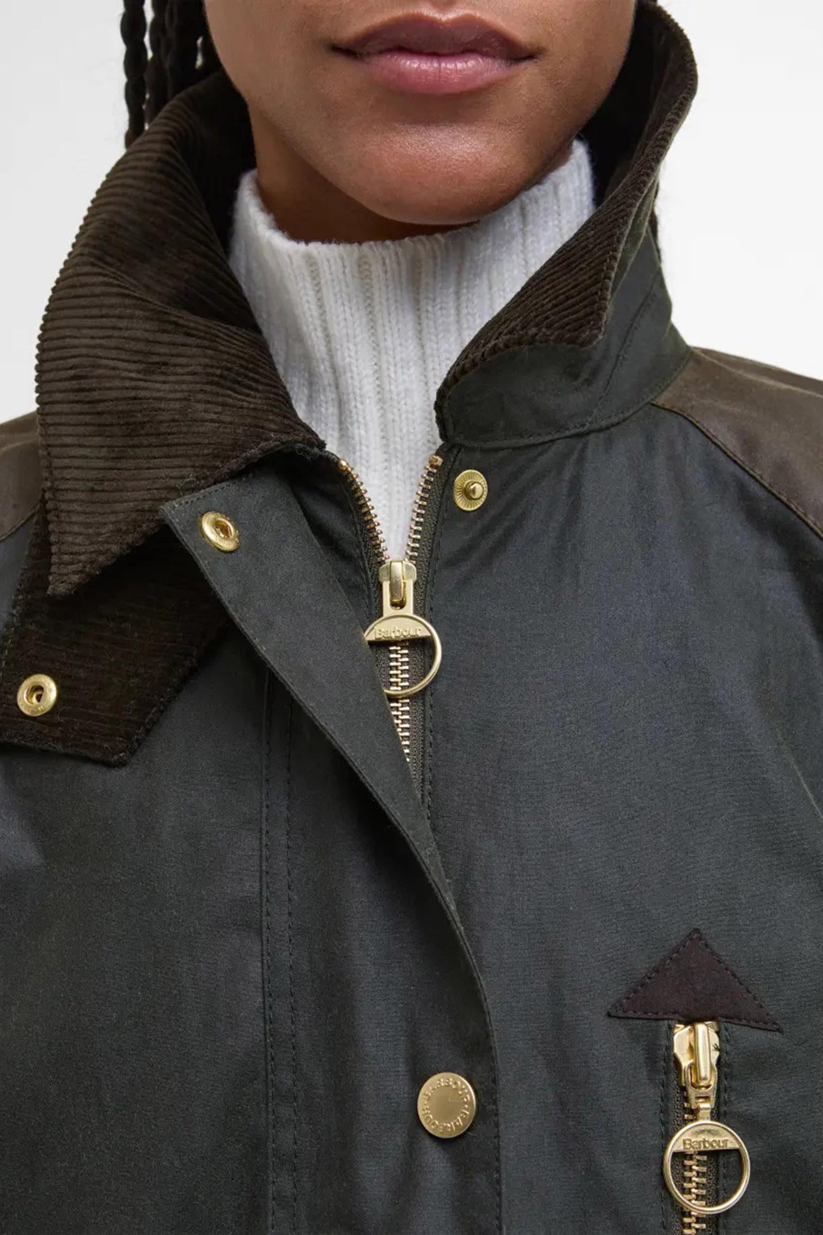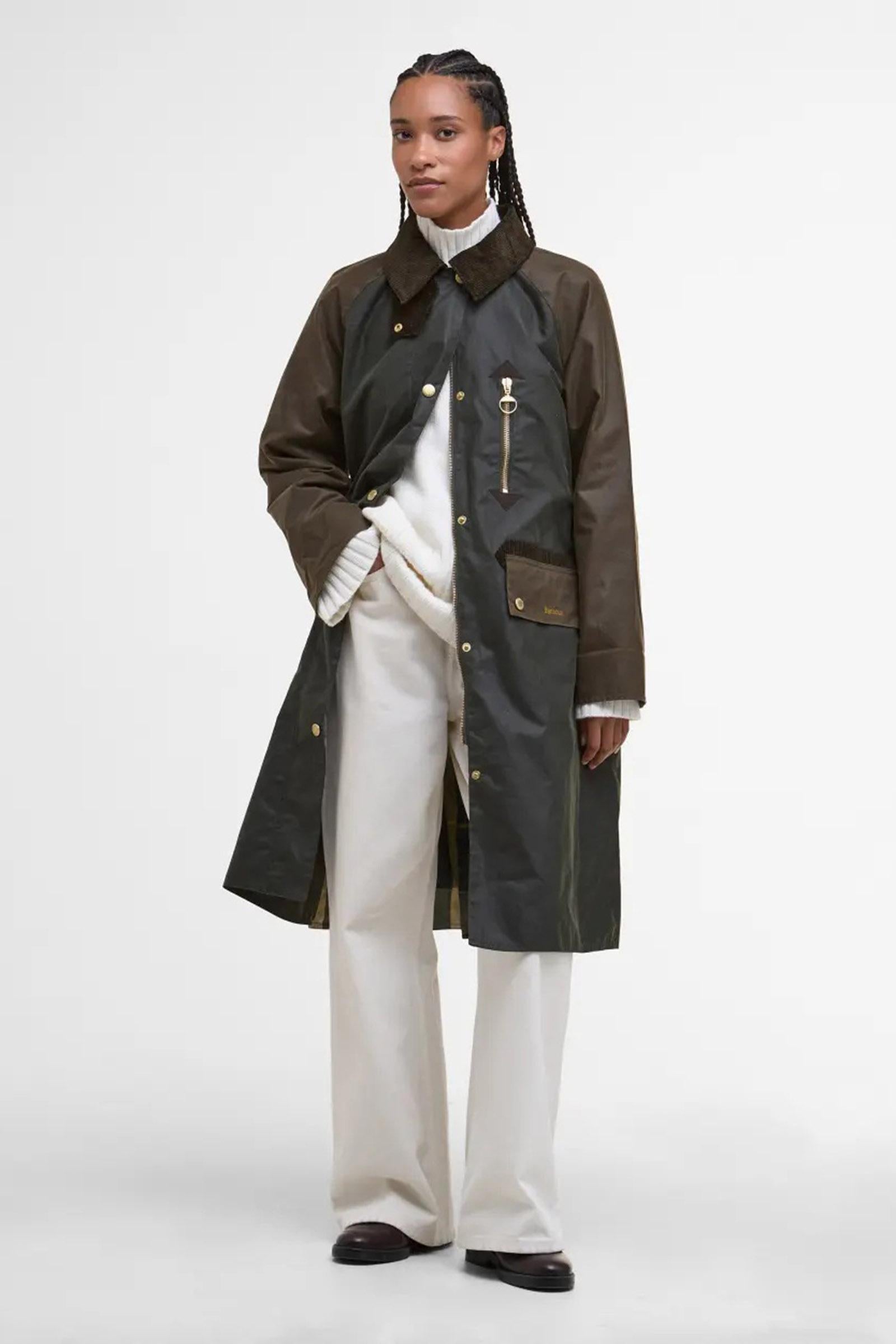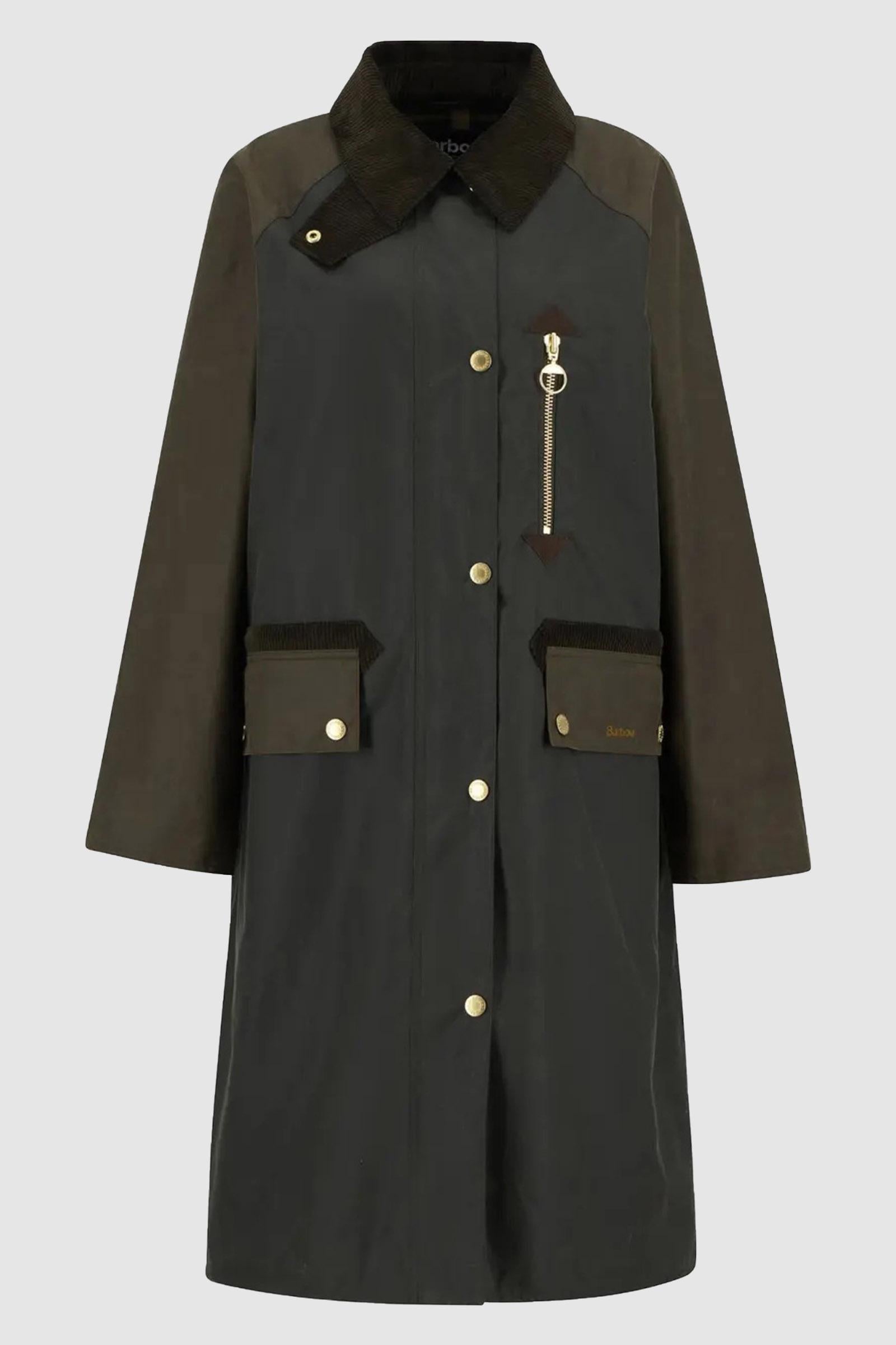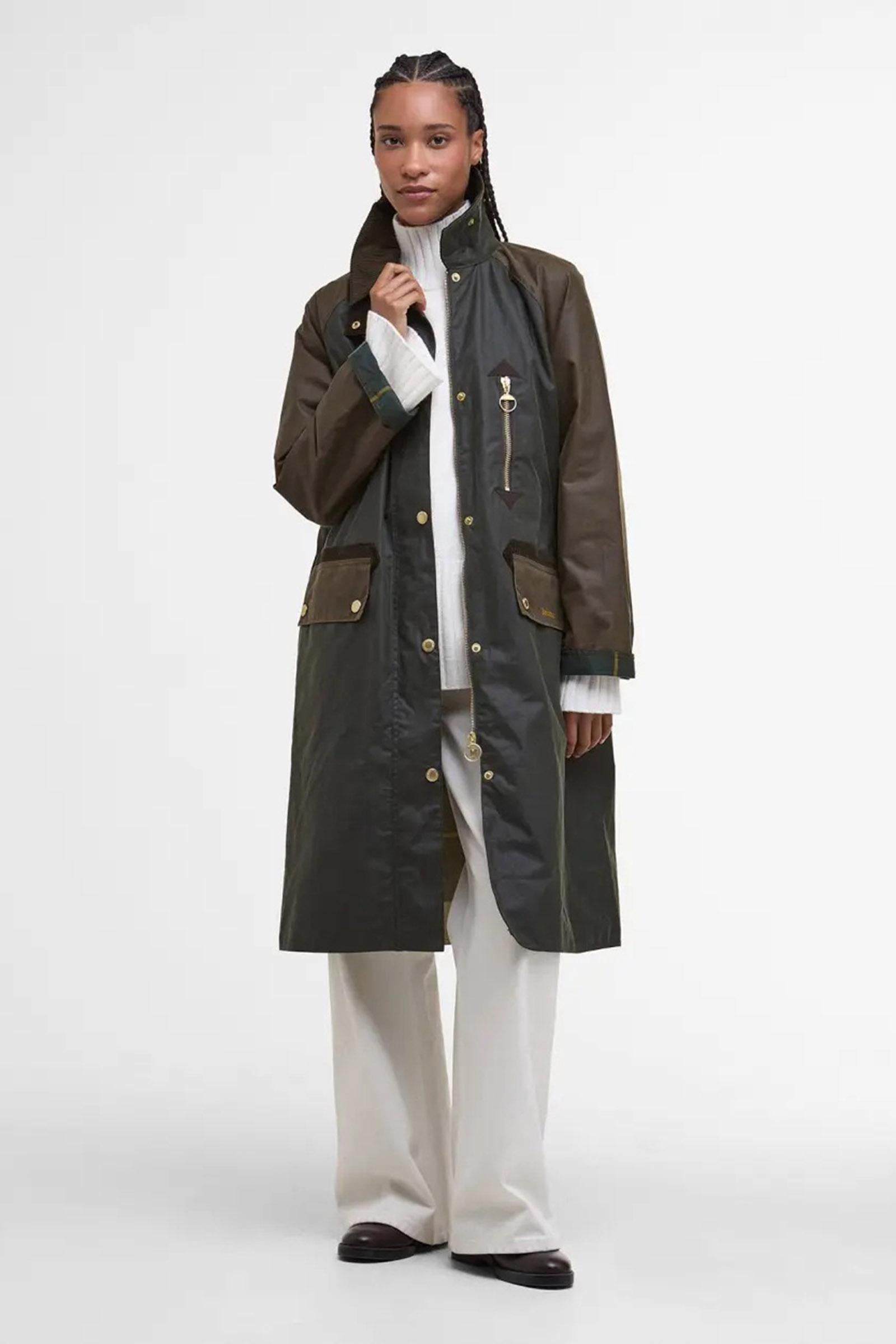 Caratterizzato da un design ispirato ai modelli d'archivio, il giaccone cerato Evette firmato Barbour è il connubio perfetto di tradizione e modernità. Il capospalla è impreziosito da un classico colletto a coste sottili, da una fodera in tartan e da una profonda piega sulla parte posteriore per offrire una vestibilità ampia e confortevole. Sotto la chiusura con bottoni a pressione è presente una zip per offrirti maggiore sicurezza, mentre la una tasca portamappa con zip ti consente di avere sempre a portata di mano gli oggetti essenziali. Sarà il tuo fedele compagno in qualsiasi condizione atmosferica.Esterno: 100% cotone (cerato)