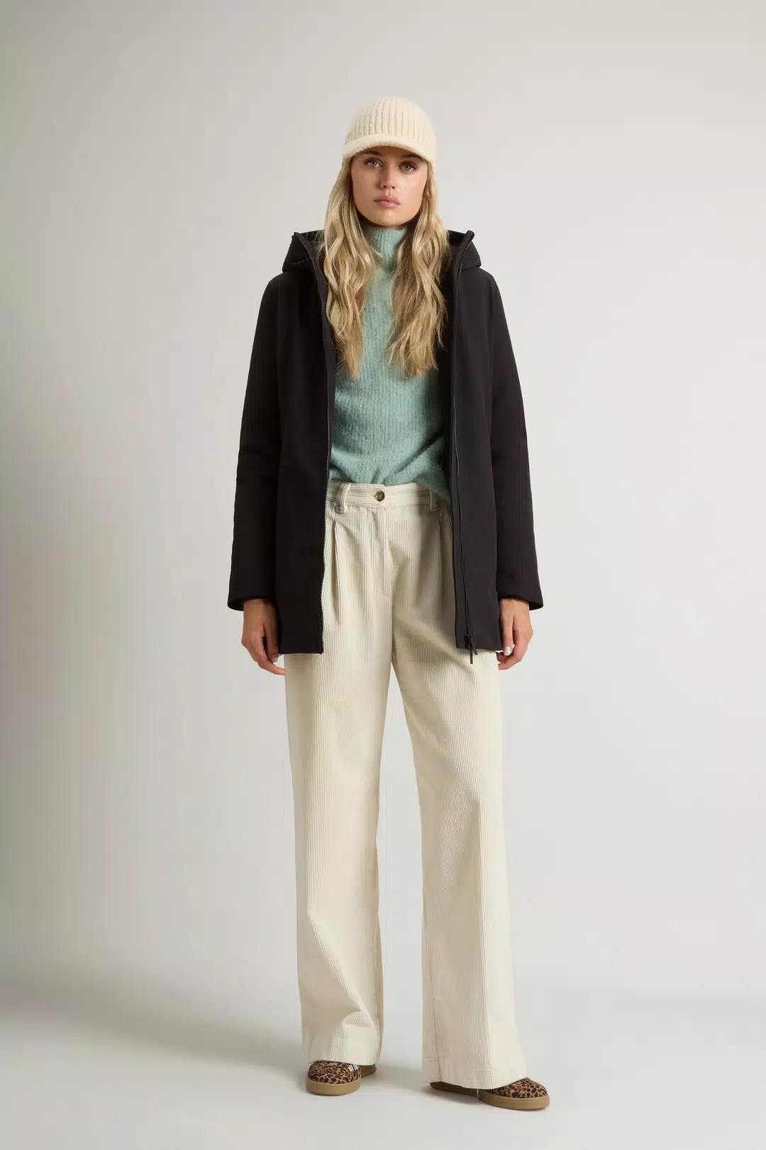 Un design iconico dalle linee contemporanee: il Firth Parka unisce l'eleganza della tradizione Woolrich a un tocco di femminilità, grazie alla silhouette slanciata valorizzata dalla coulisse interna regolabile in vita. Realizzato in Tech Softshell, un tessuto resistente all'acqua e antivento, è imbottito in piuma d'anatra con una trapuntatura Chevron all'interno. È dotato di cappuccio e collo alto per una protezione ottimale, presenta tasche a filetto, una comoda tasca interna con zip, polsini a costine e un'etichetta applicata lateralmente.Realizzato in tessuto Tech Softshell