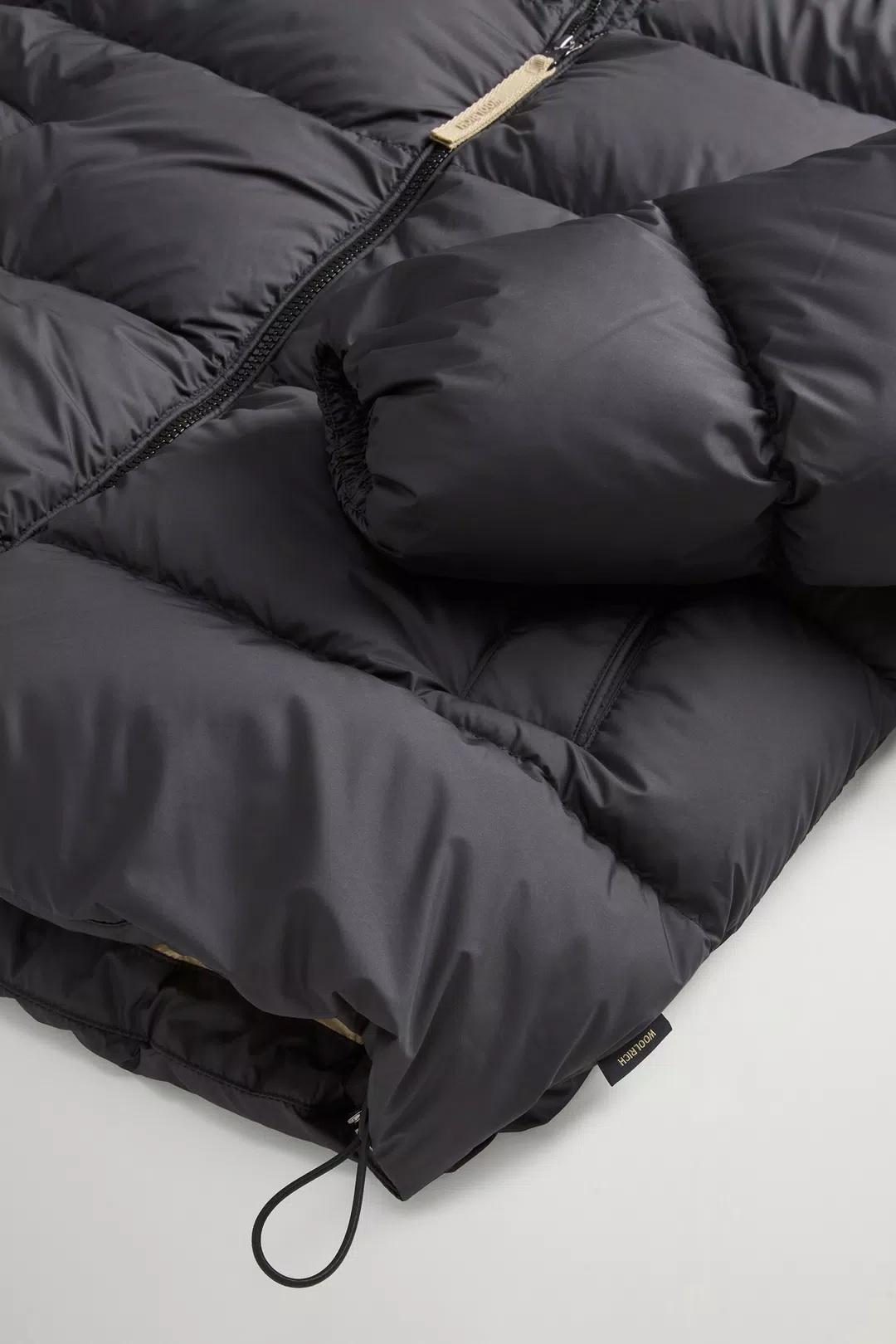 Perfetto alleato contro i primi freddi, questo piumino della Cloud Series - la nostra capsule di capispalla caldi ma leggeri come una nuvola - è un must-have del guardaroba di stagione. Realizzato in microfibra idrorepellente e resistente al vento, è imbottito in piuma d'anatra per offrire un calore avvolgente senza appesantire. Il design include un collo alto per una protezione extra e una zip bidirezionale con tirazip logata, mentre le tasche a filetto con bottoni a pressione nascosti e le due tasche interne, una laterale e una con zip, garantiscono praticità e spazio per gli oggetti personali. La coulisse interna sul fondo consente di regolare la vestibilità in base alle esigenze. Completano il capo il logo stampato sul retro e l'etichetta laterale.Realizzato in microfibra