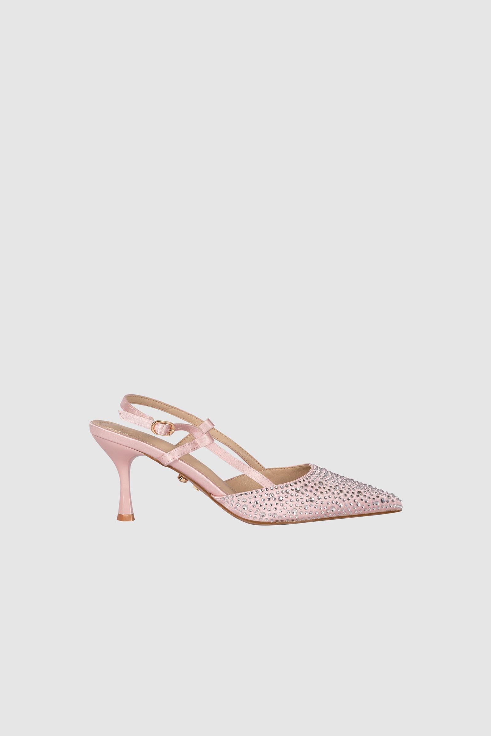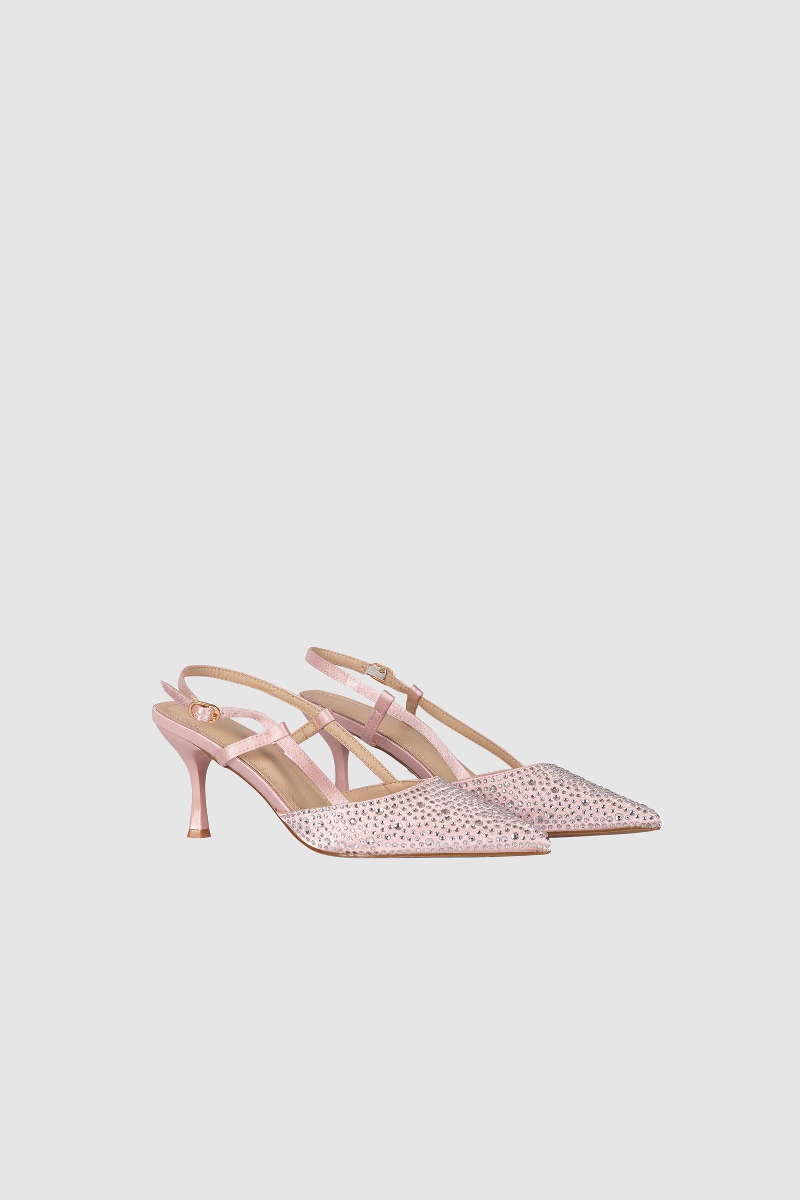Brillante slingback san francisco cipria tempestata da mini strass in punta. Chiusura con cinturino.Slingback San Francisco color cipria, caratterizzata da una punta impreziosita da mini strass applicati in modo uniforme per una resa luminosa controllata. La chiusura con cinturino assicura una calzata stabile e continua, mentre il tacco da 7 cm mantiene una linea equilibrata e funzionale. La costruzione valorizza il contrasto tra la texture del denim e la brillantezza degli strass.