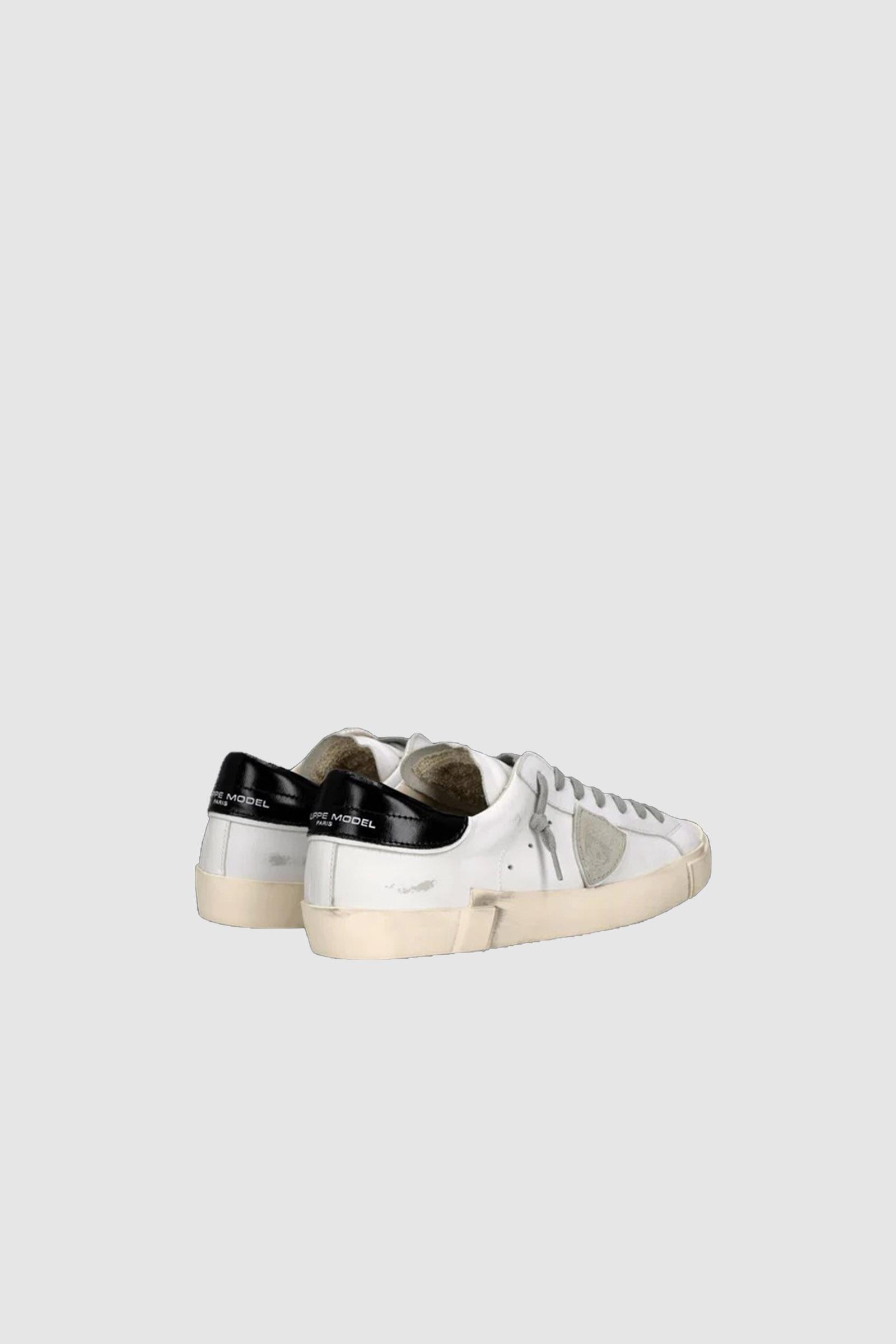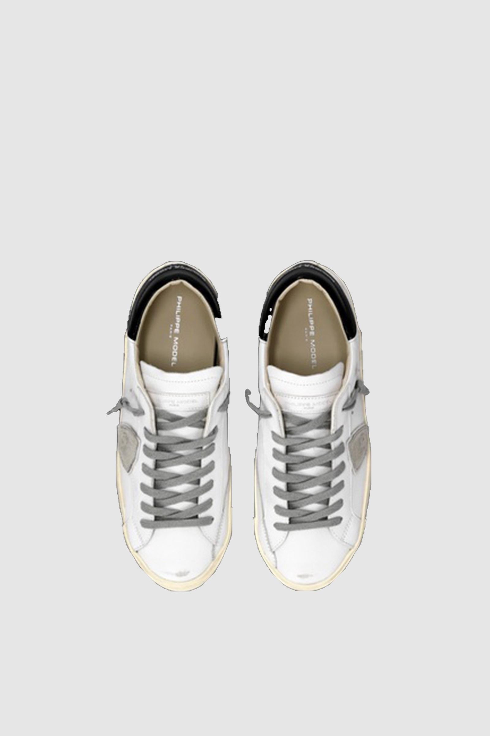 Look vissuto e forme ispirate allo street style anni '80: la sneaker Prsx è un grande classico del casual metropolitano. La tomaia in pelle bianca è trattata per donare un effetto vintage. Il paio si distingue per i dettagli rock come lo spoiler nero e i lacci e lo scudetto sui toni del grigio. L'iconica suola con fresature artigianali e sporcature enfatizza l'effetto vissuto del design di questa scarpa bassa da uomo.Materiali: Sneaker bassa con tomaia in pelle con finiture used, spoiler in pelle. Fodera interna in spugna di cotone e pelle, soletta in schiuma estraibile. Fondo in gomma con fasciatura irregolare rifinita artigianalmente.