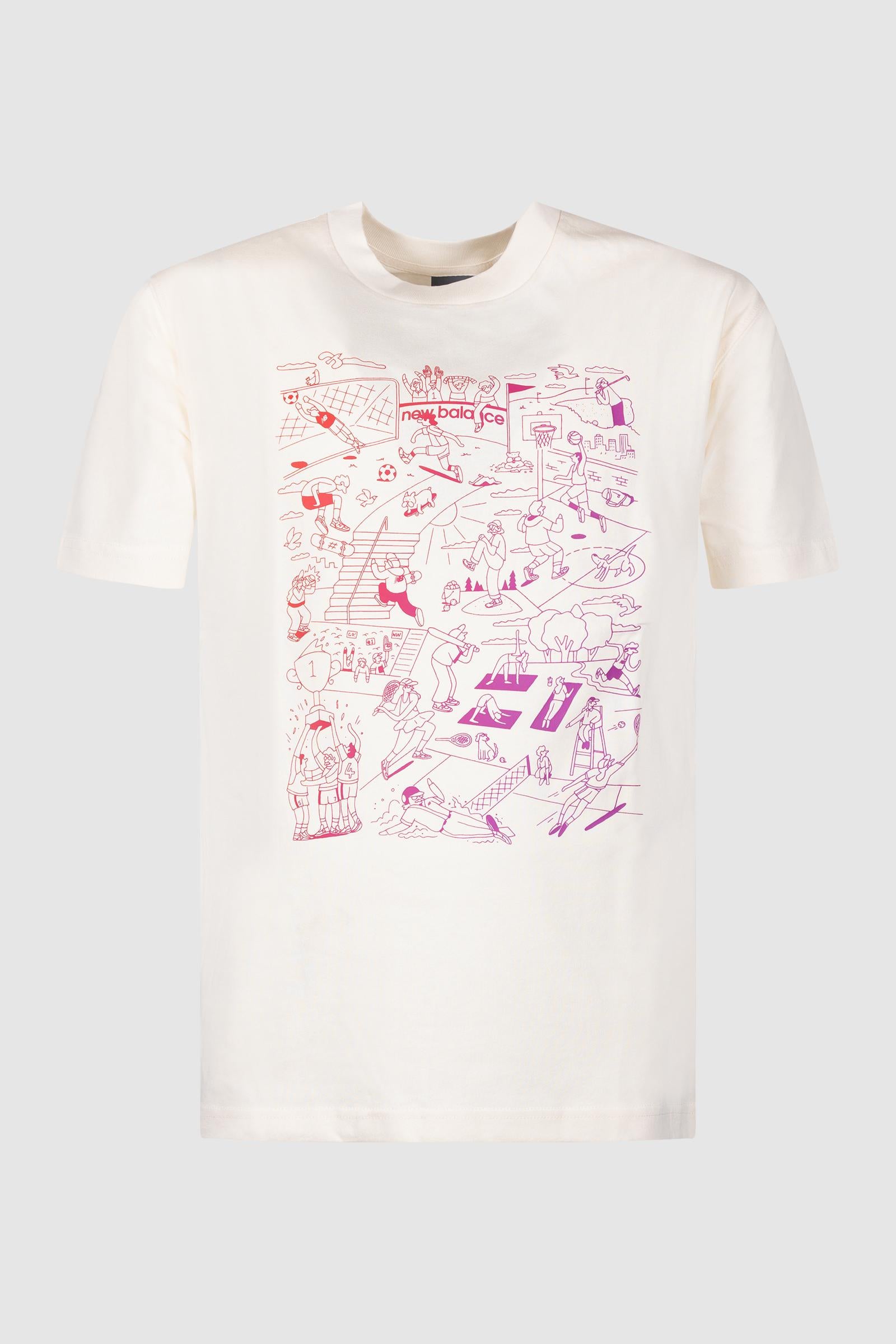 Questa t-shirt presenta un design originale con una stampa grafica composta da varie illustrazioni sportive in stile disegno. Il capo offre uno stile casual e dinamico, ideale per chi ama un look sportivo e contemporaneo.