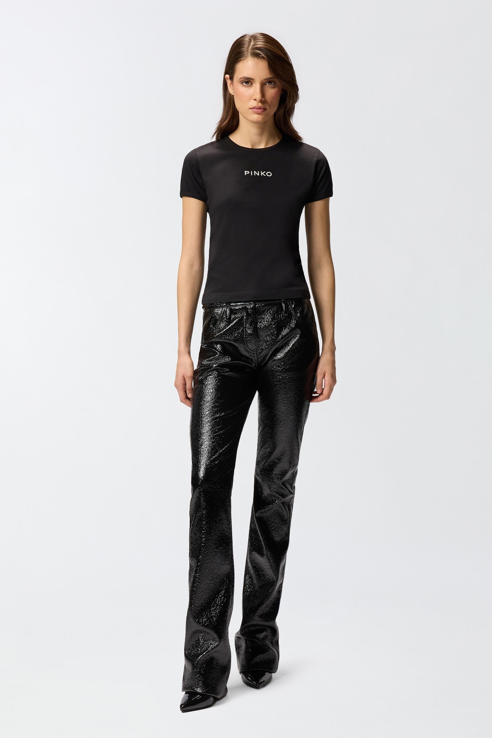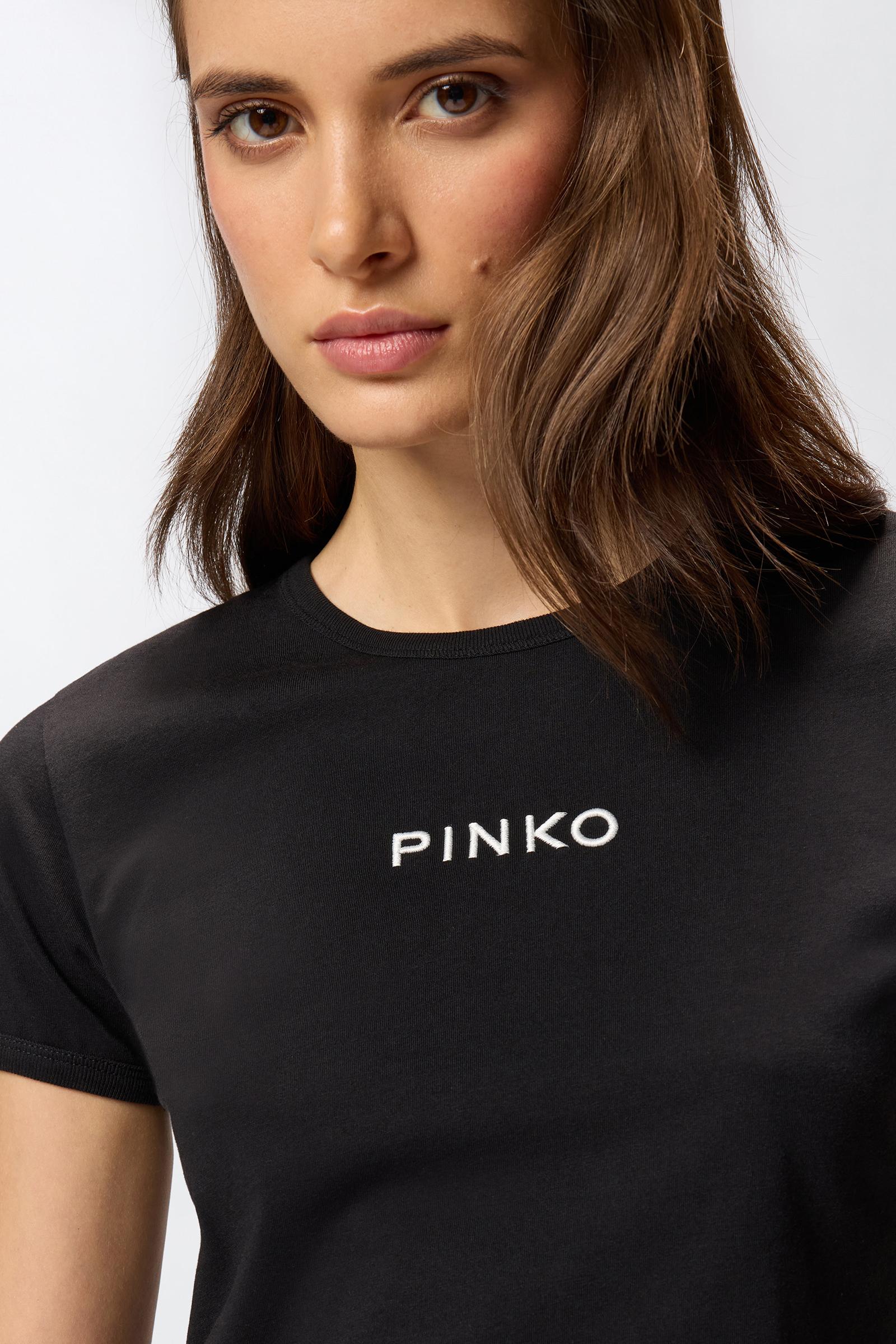 T-shirt a maniche corte dal taglio leggermente slim in jersey di cotone con ricamo logo PINKO davanti. Iconica e versatile, questa maglietta aggiungerà a qualsiasi look da giorno un tocco personale che non passa inosservato.1° Tessuto Esterno: COTONE 100% - 2° Tessuto Esterno: COTONE 100% - Ricamo: VISCOSA 100%