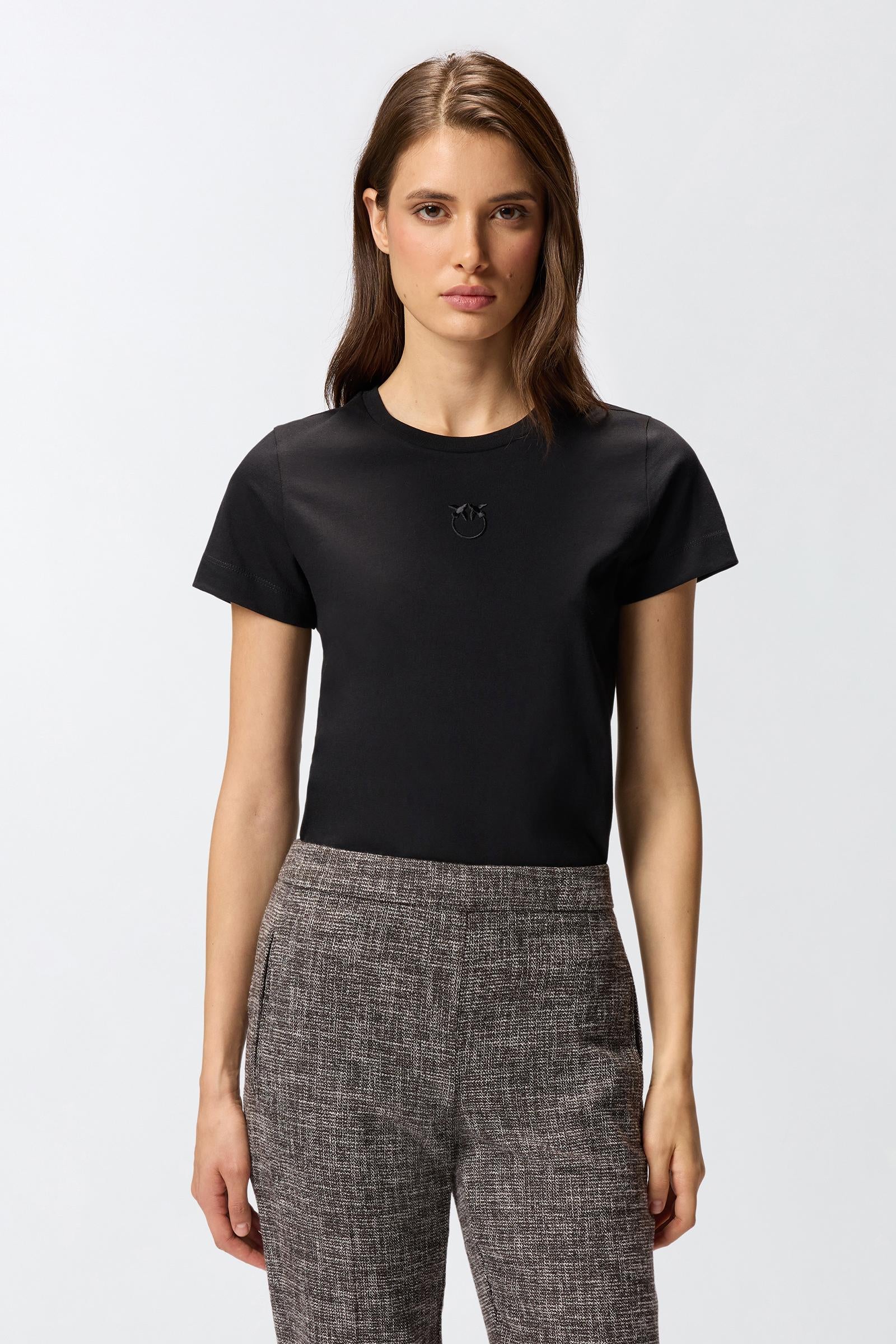 T-shirt a maniche corte dal taglio slim in jersey di cotone con ricamo logo Love Birds davanti. Questa t-shirt si abbina con facilità ai tuoi pantaloni preferiti, elevando il tuo look in modo semplice, elegante e originale.1° Tessuto Esterno: COTONE 100% - 2° Tessuto Esterno: COTONE 100%