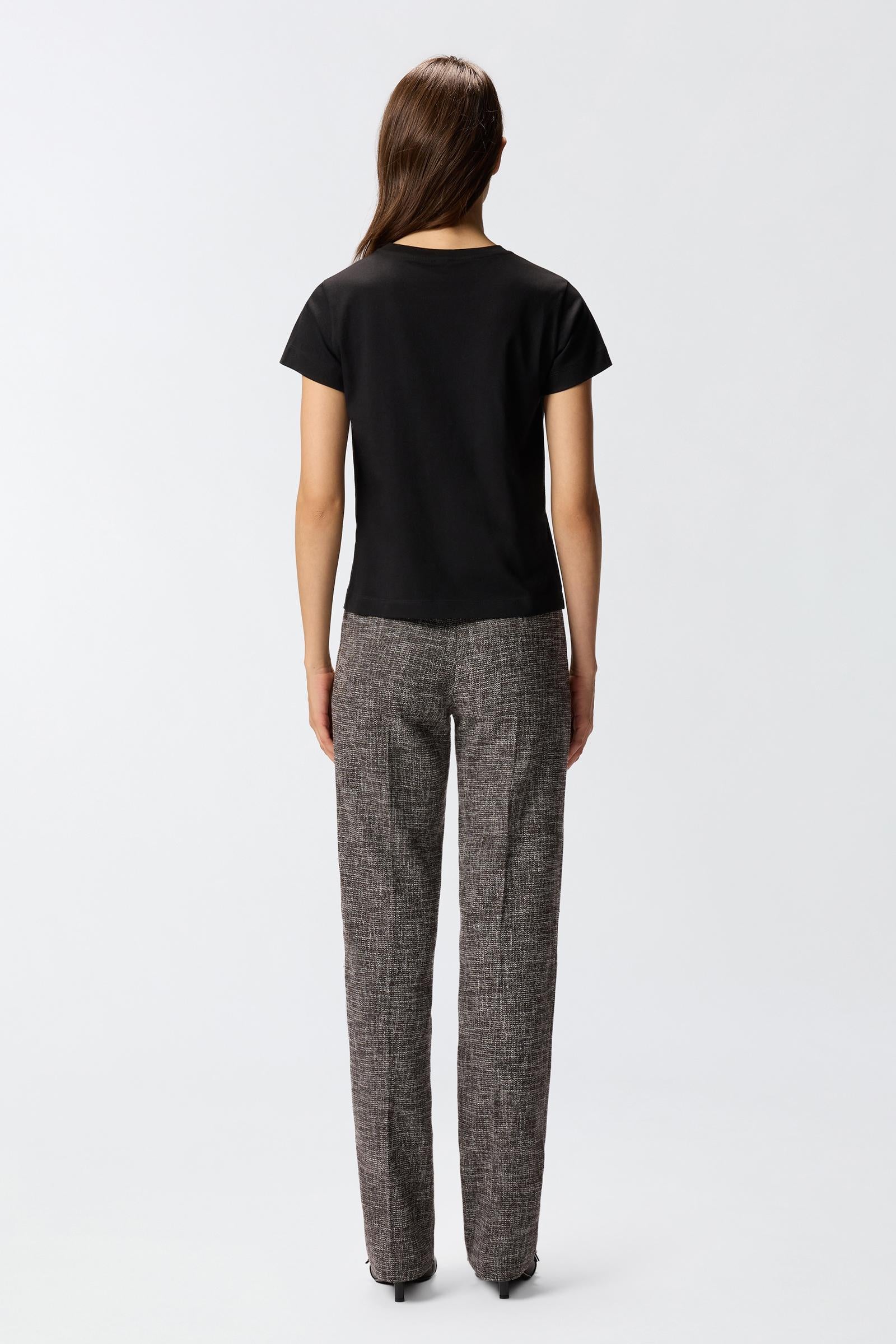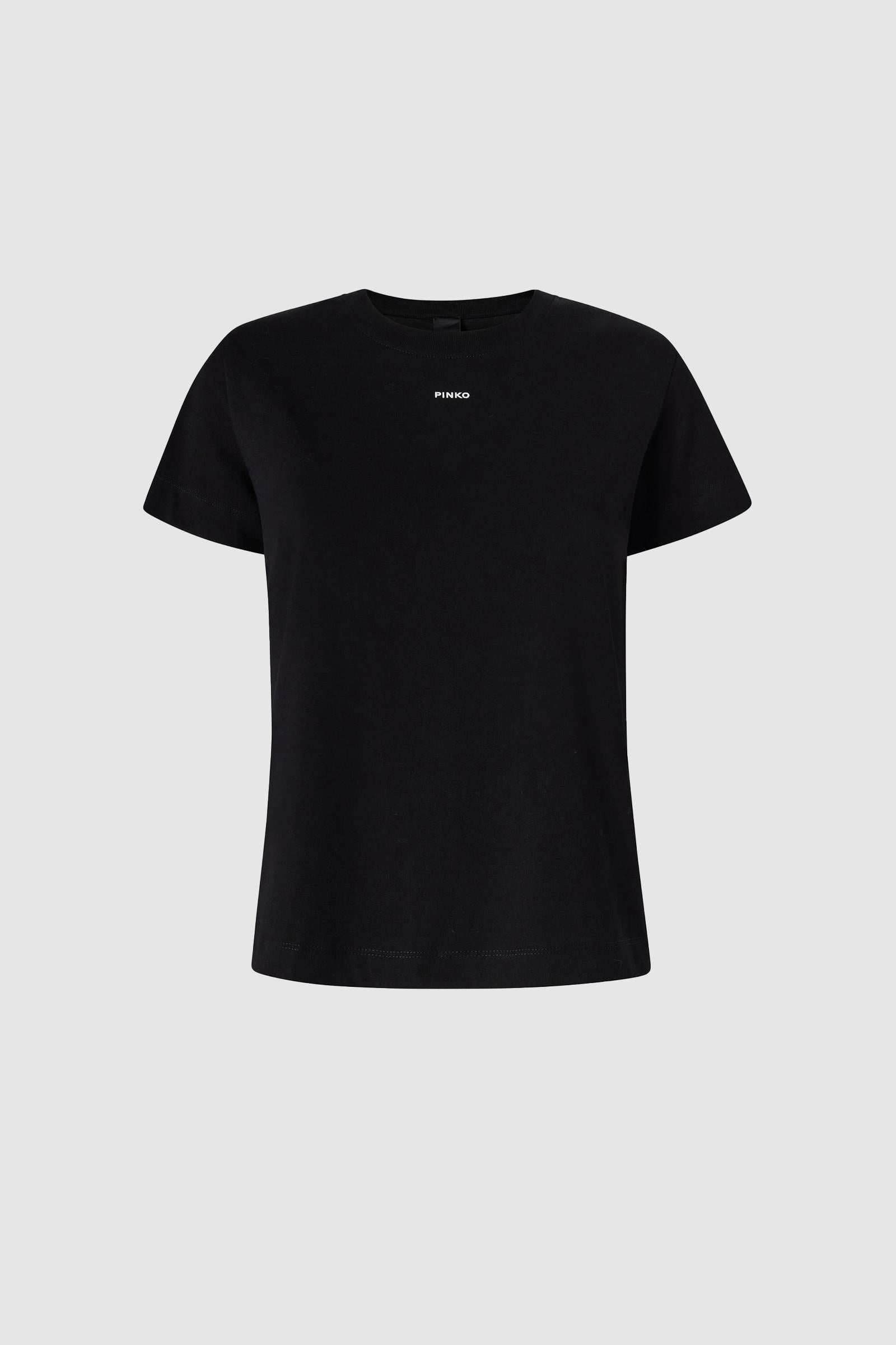 T-shirt a maniche corte dal taglio leggermente slim in jersey di cotone con piccolo logo lettering PINKO stampato davanti. Questa t-shirt si abbina con facilità ai tuoi pantaloni preferiti, elevando il tuo look in modo semplice, elegante e originale.1° Tessuto Esterno: COTONE 100% - 2° Tessuto Esterno: COTONE 100%