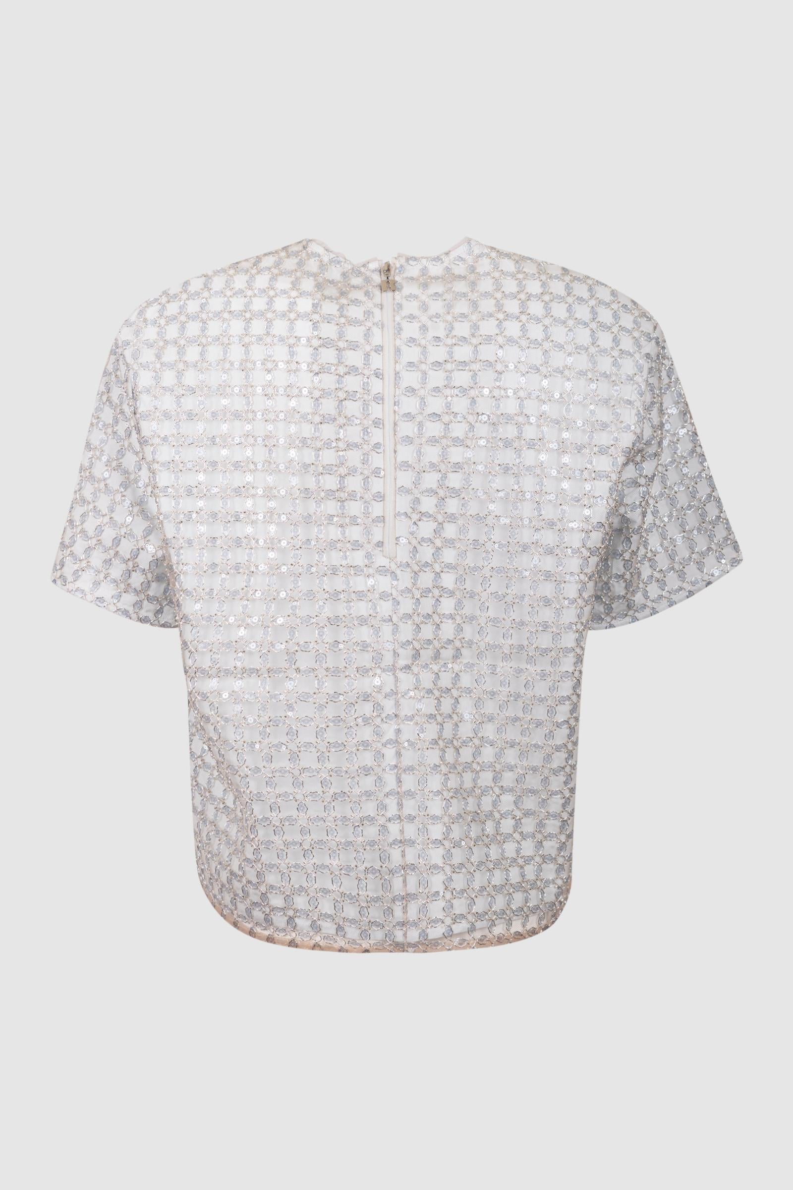 Il Beaded Oversized Top Beige presenta un intricato motivo di perline e una vestibilità oversize e rilassata. Una cerniera nascosta sul retro assicura una facile indossabilità. Abbinalo alla Beaded Mini Skirt Beige per un look coordinato.