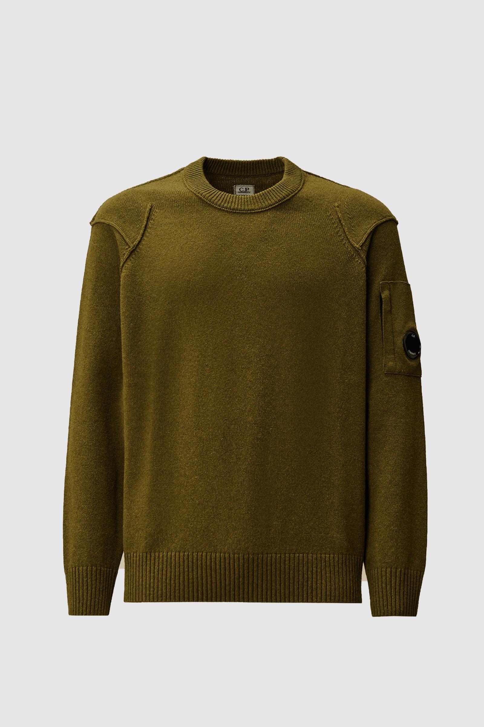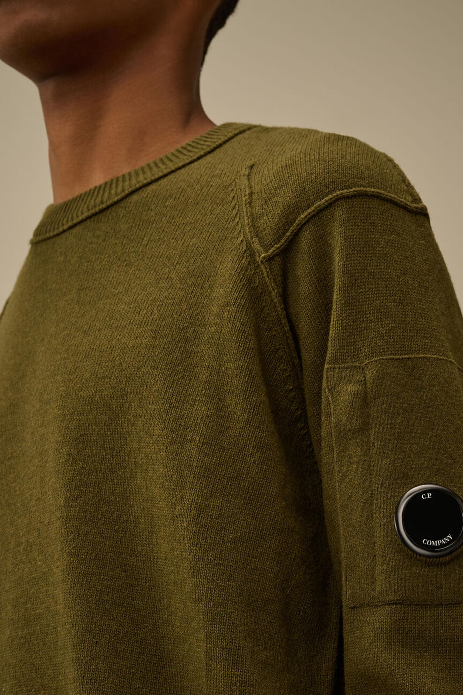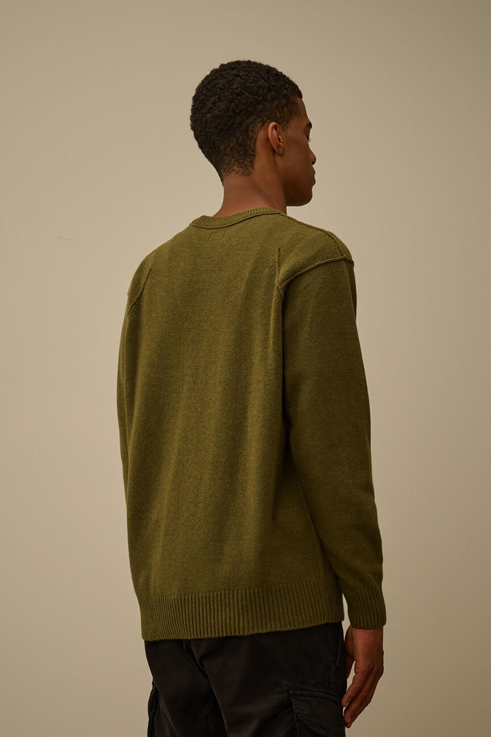 Maglione girocollo realizzato in Lambswool GRS. La certificazione Global Recycled Standard garantisce il rispetto di criteri ambientali e sociali in tutte le fasi della filiera. Il capo presenta l'iconica Lente di C.P. Company, cuciture a contrasto, polsini e orlo a costine. Finezza 7. Regular fit.
