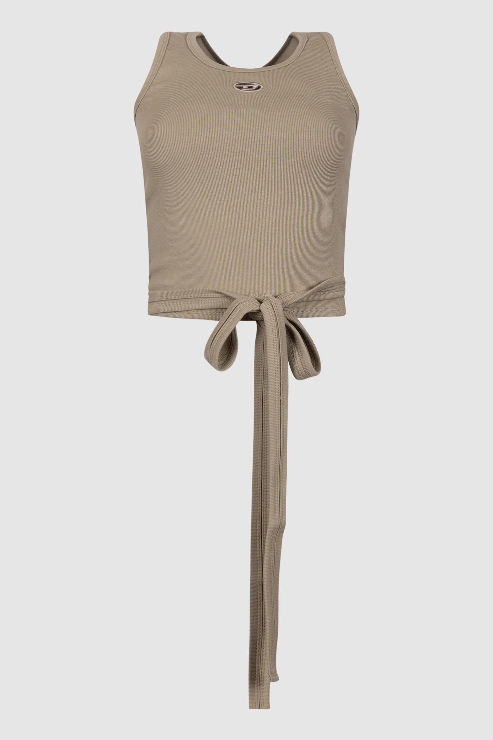 Questo top da donna a vestibilità aderente è realizzato in jersey di cotone organico elasticizzato con una texture a costine sottili per maggiore flessibilità. La silhouette corta e senza maniche presenta distintive stringhe avvolgenti che si legano in vita. Il davanti è impreziosito da un ricamo laserato Oval D appena sotto il colletto, mentre il retro è aperto sulla schiena grazie a un orlo più corto che crea un effetto cut-out.Composizione: 94%Cotone 6%Elastan