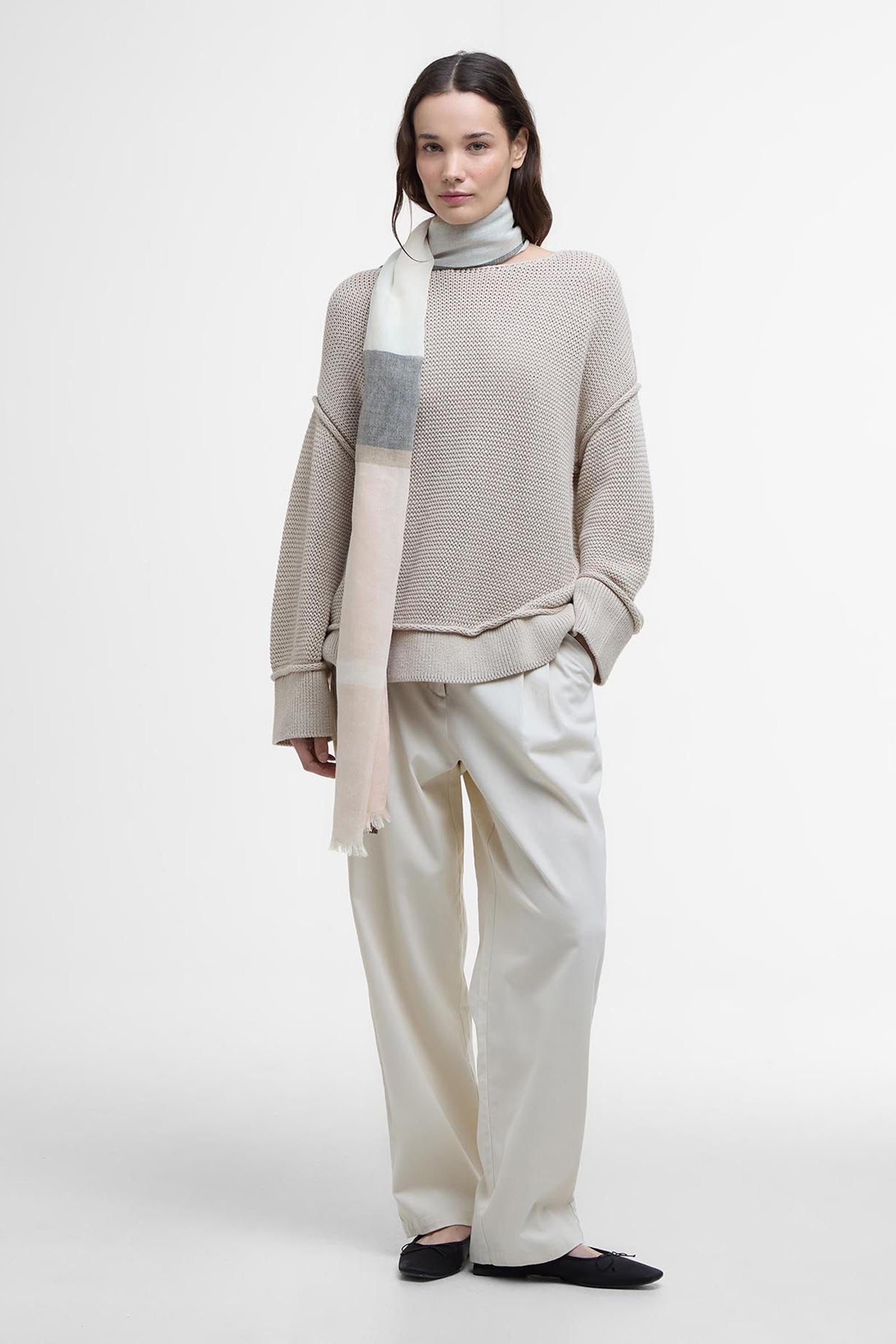 Caratterizzata dall'inconfondibile tartan di Barbour, declinato in formato maxi, questa leggera sciarpa realizzata in lussuoso misto cotone e lino è rifinita con delicate frange sull'orlo. Composizione: 80% COTONE 20% LINO