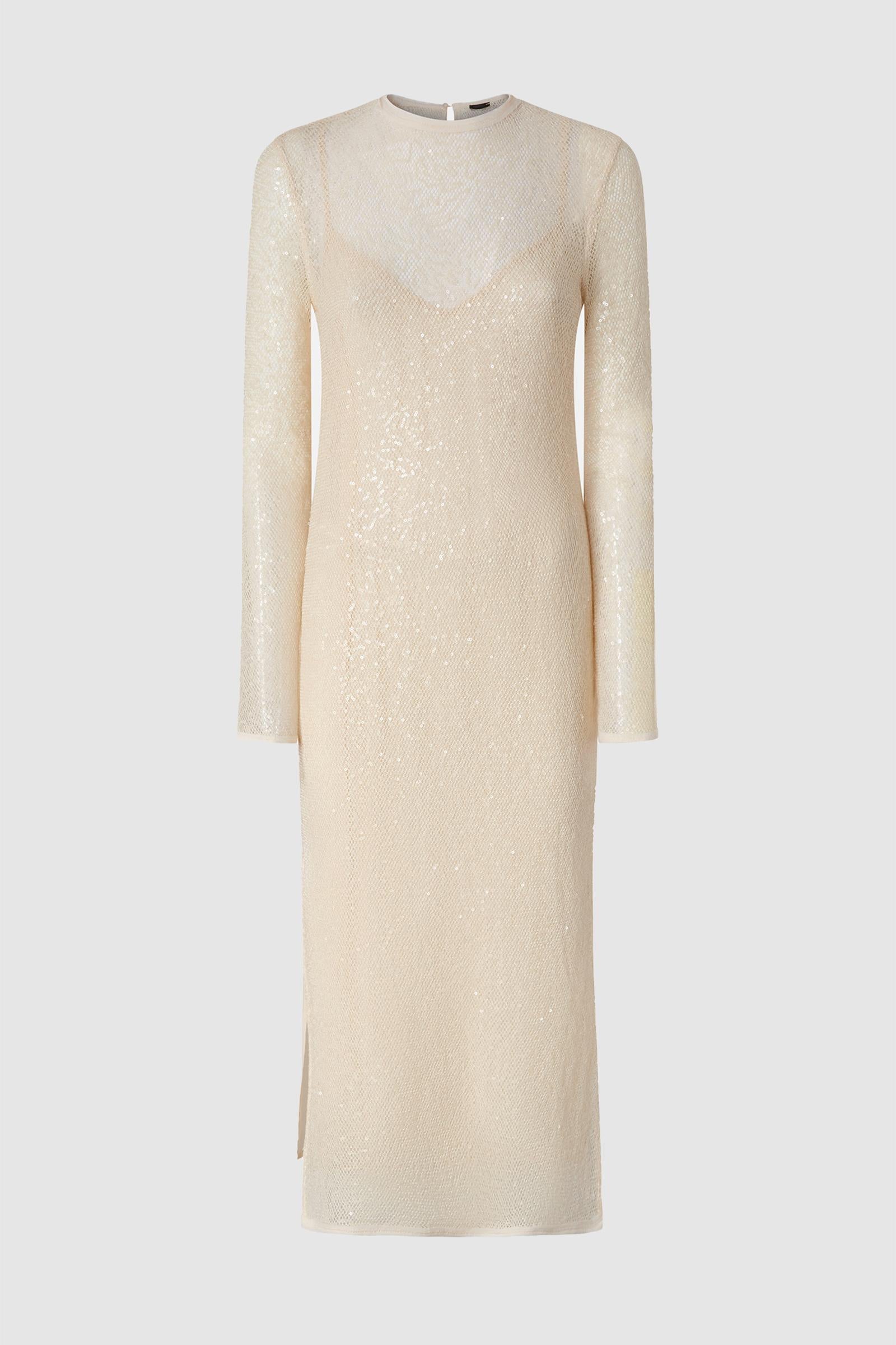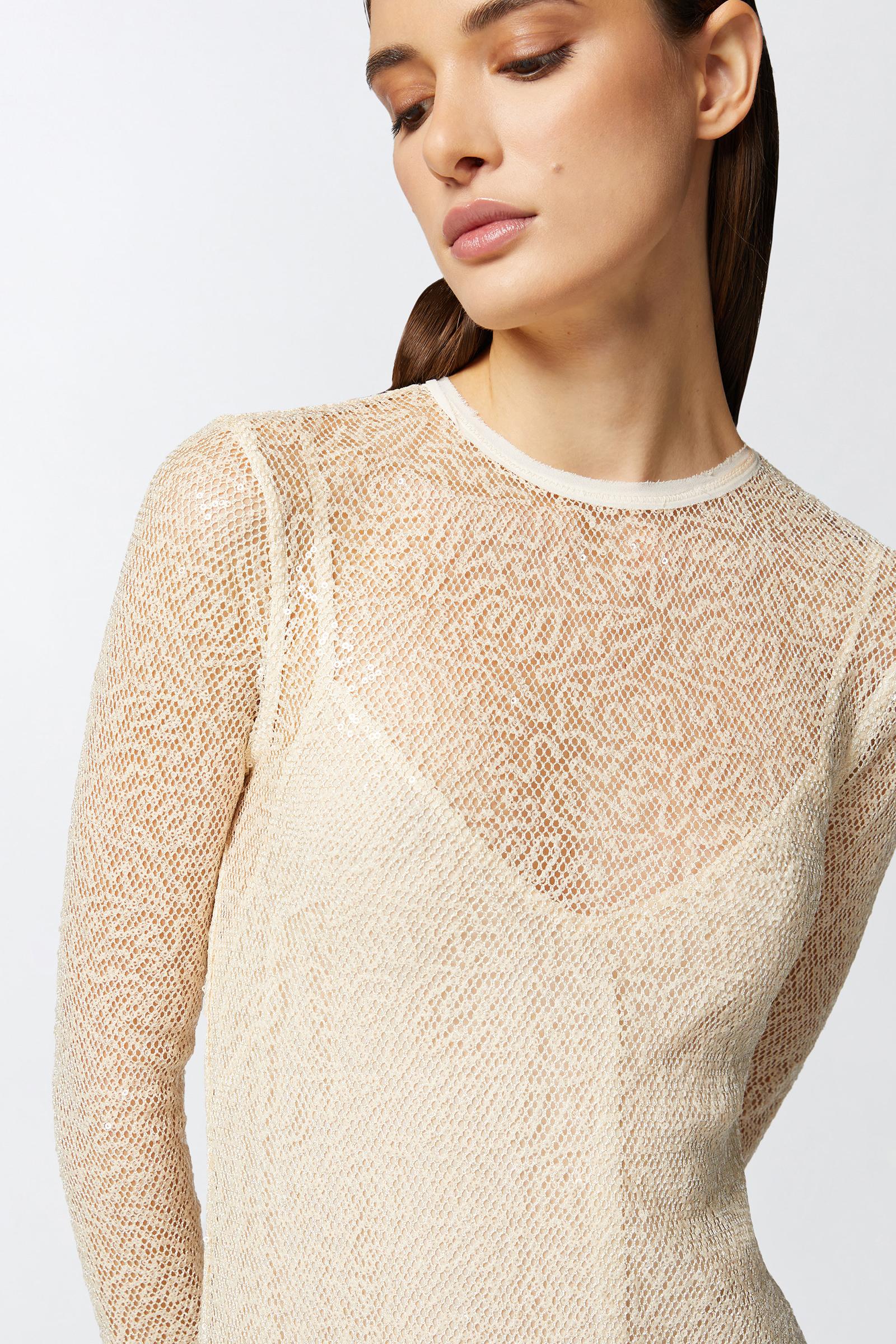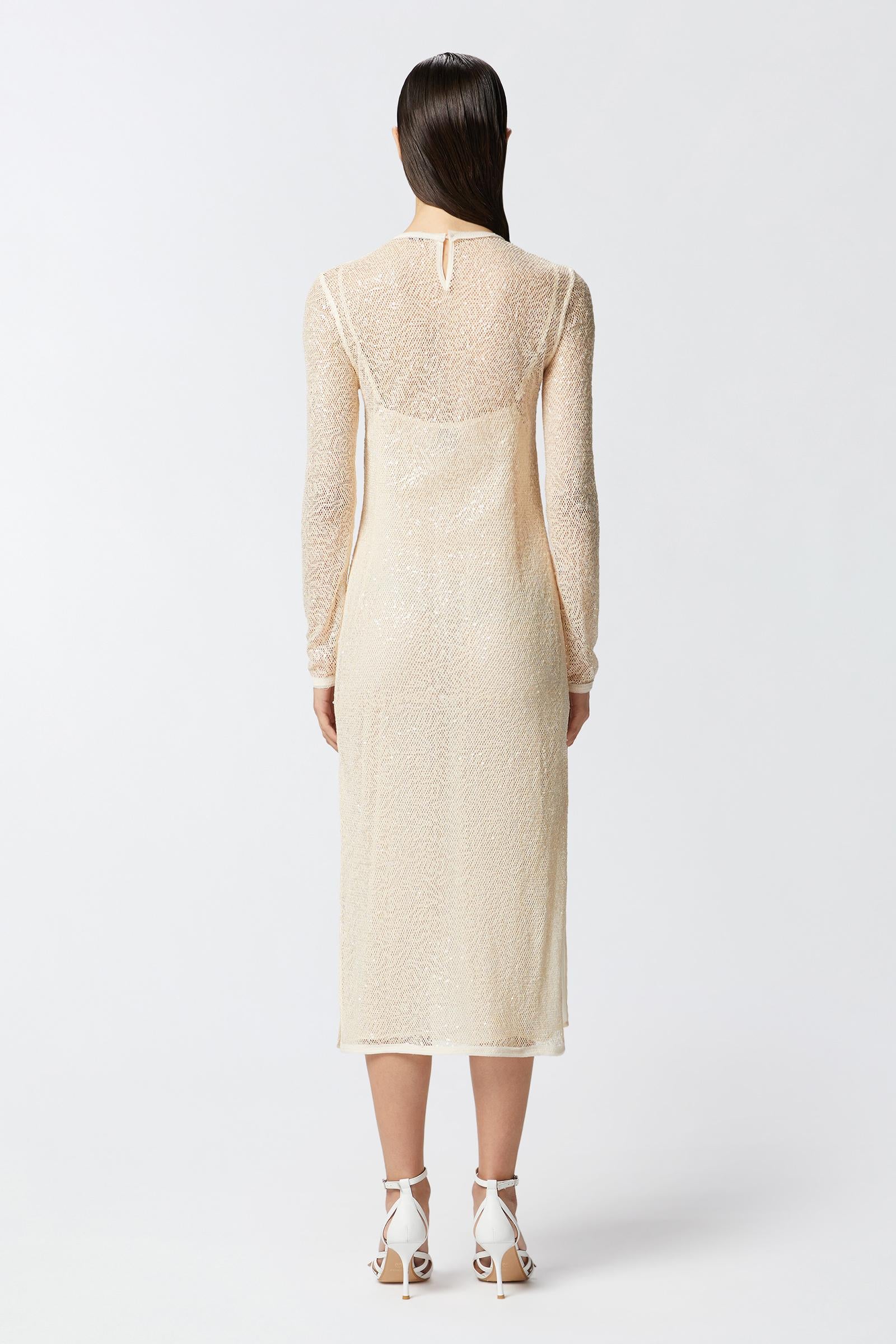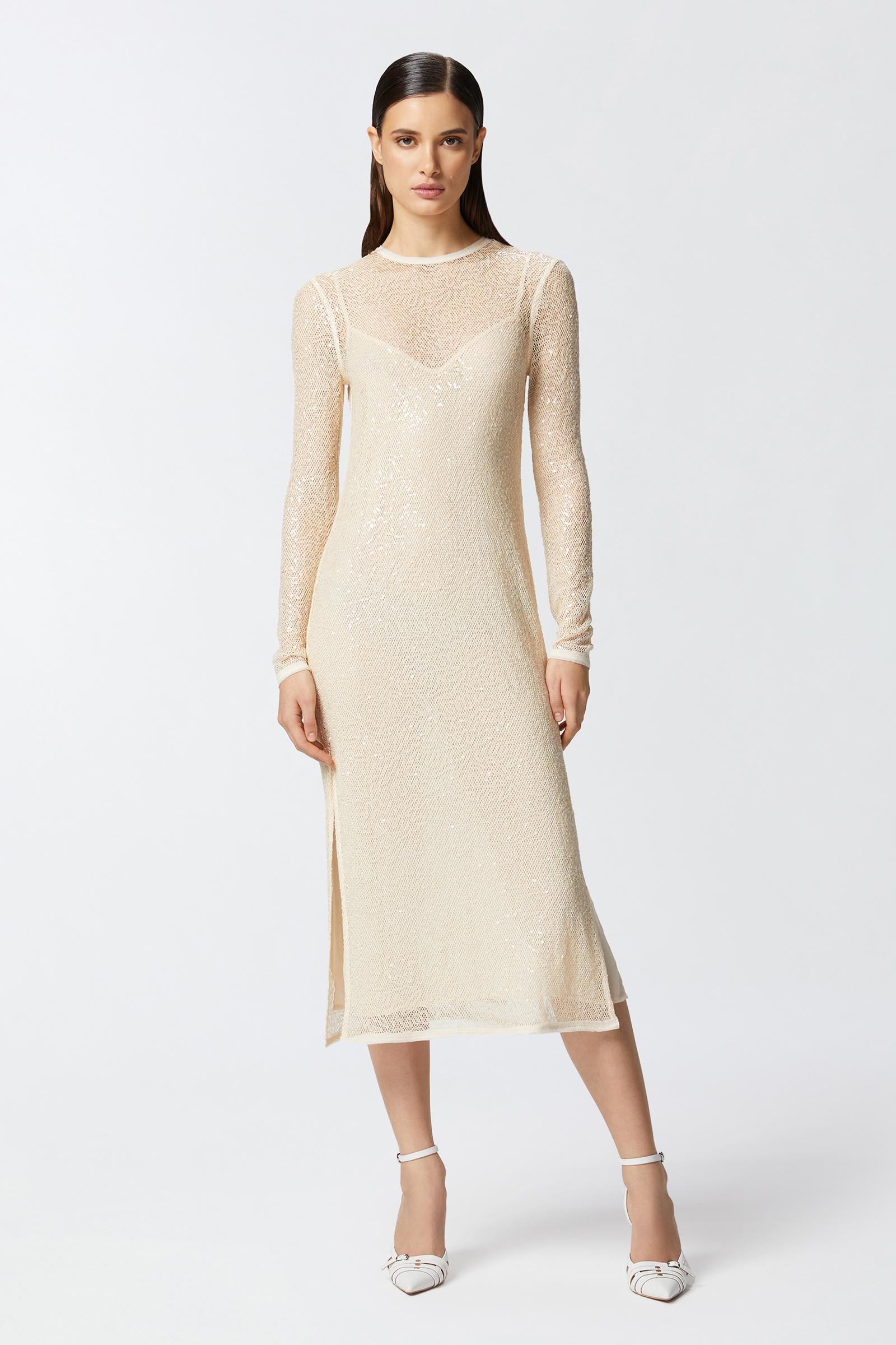 Abito fresco con trasparenze e manica lunga,tessuto a rete.