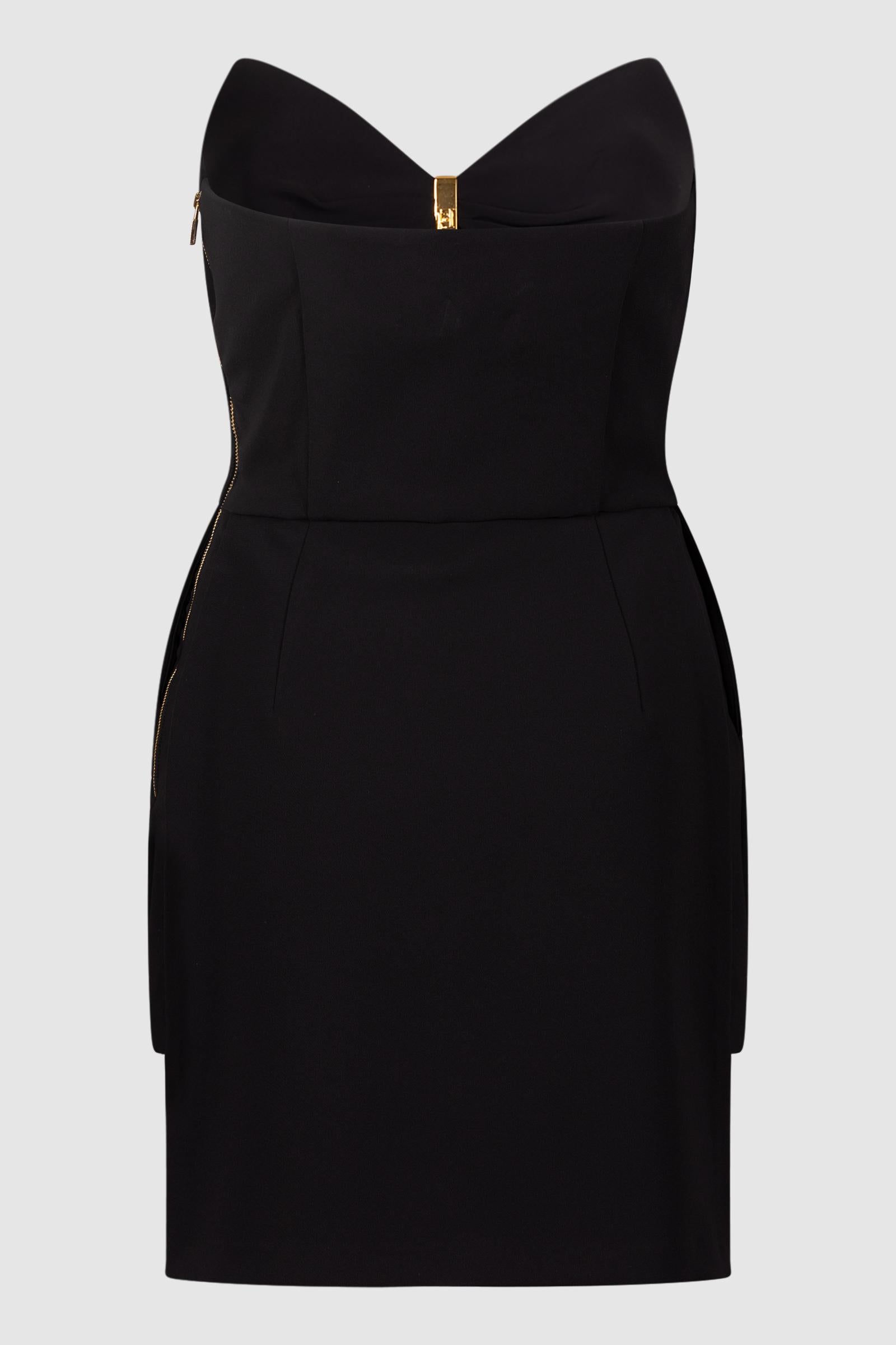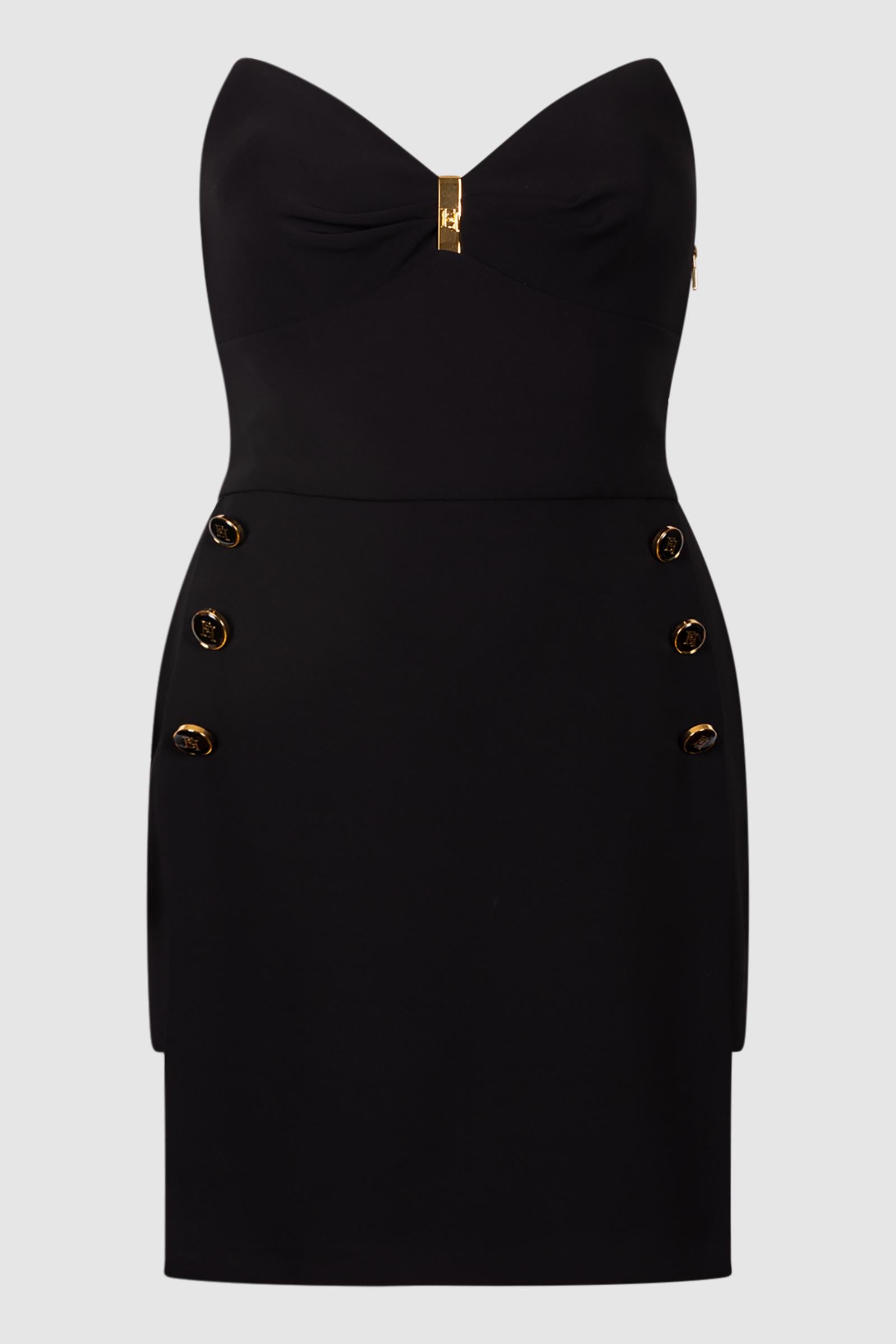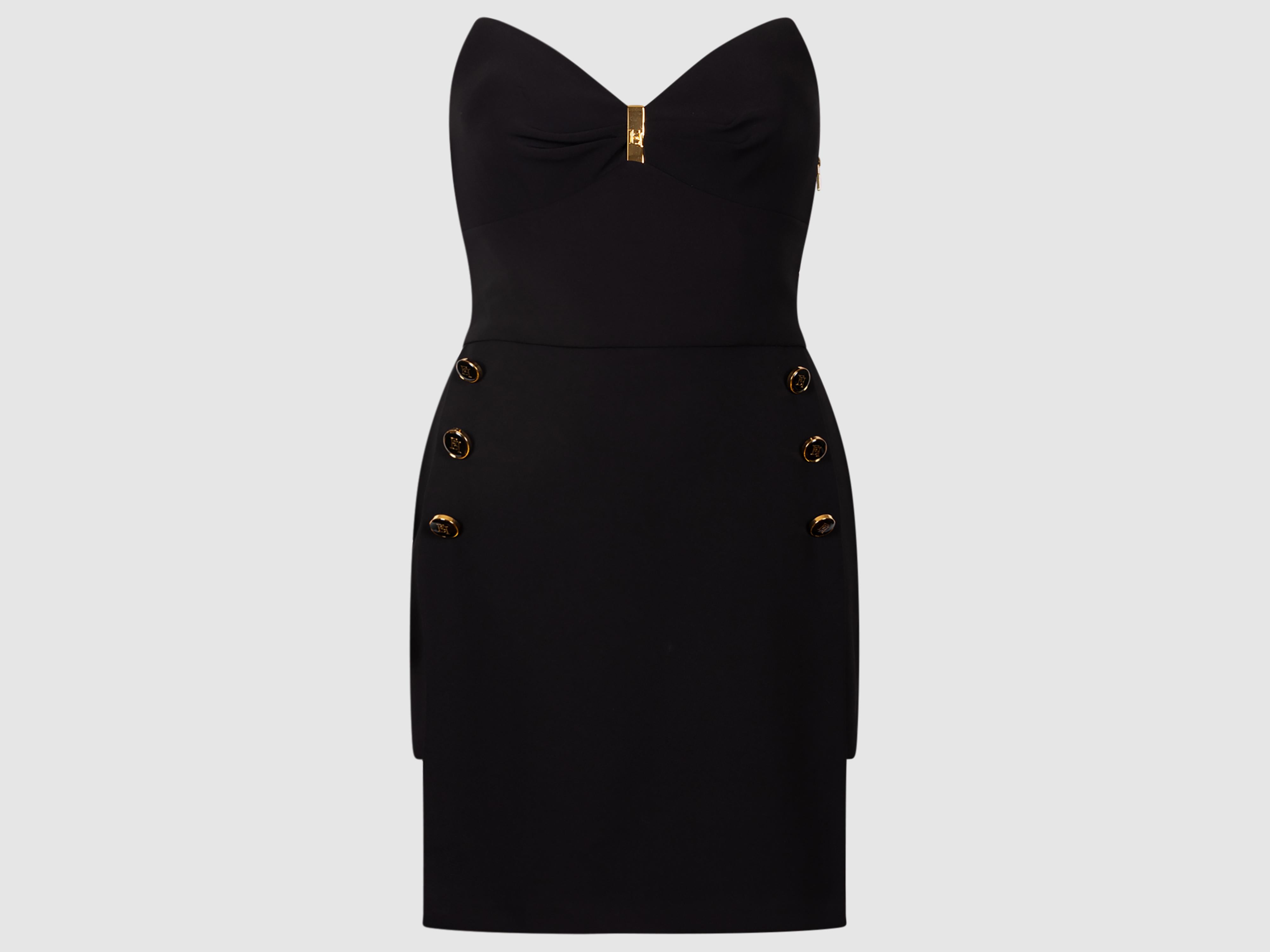 Abito in crêpe leggero dalla vestibilità aderente. Il vestito si distingue per lo scollo di ispirazione bustier, trattenuto e impreziosito dal dettaglio gioiello con logo, la costruzione con shorts e gonna a pannelli frontali. I bottoni smaltati aggiungono una nota di luce. Composizione: 95%Poliestere 05%Elastane