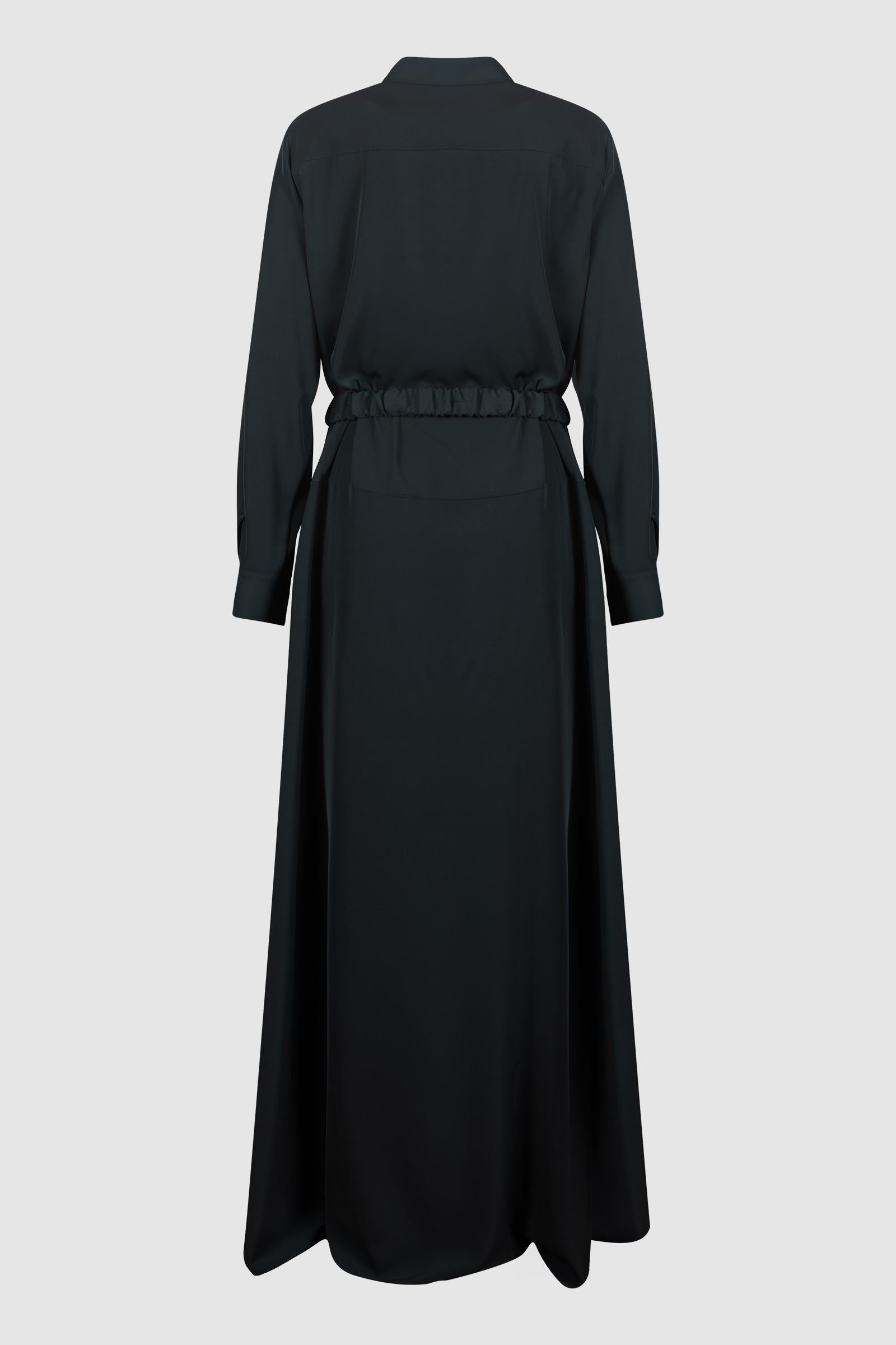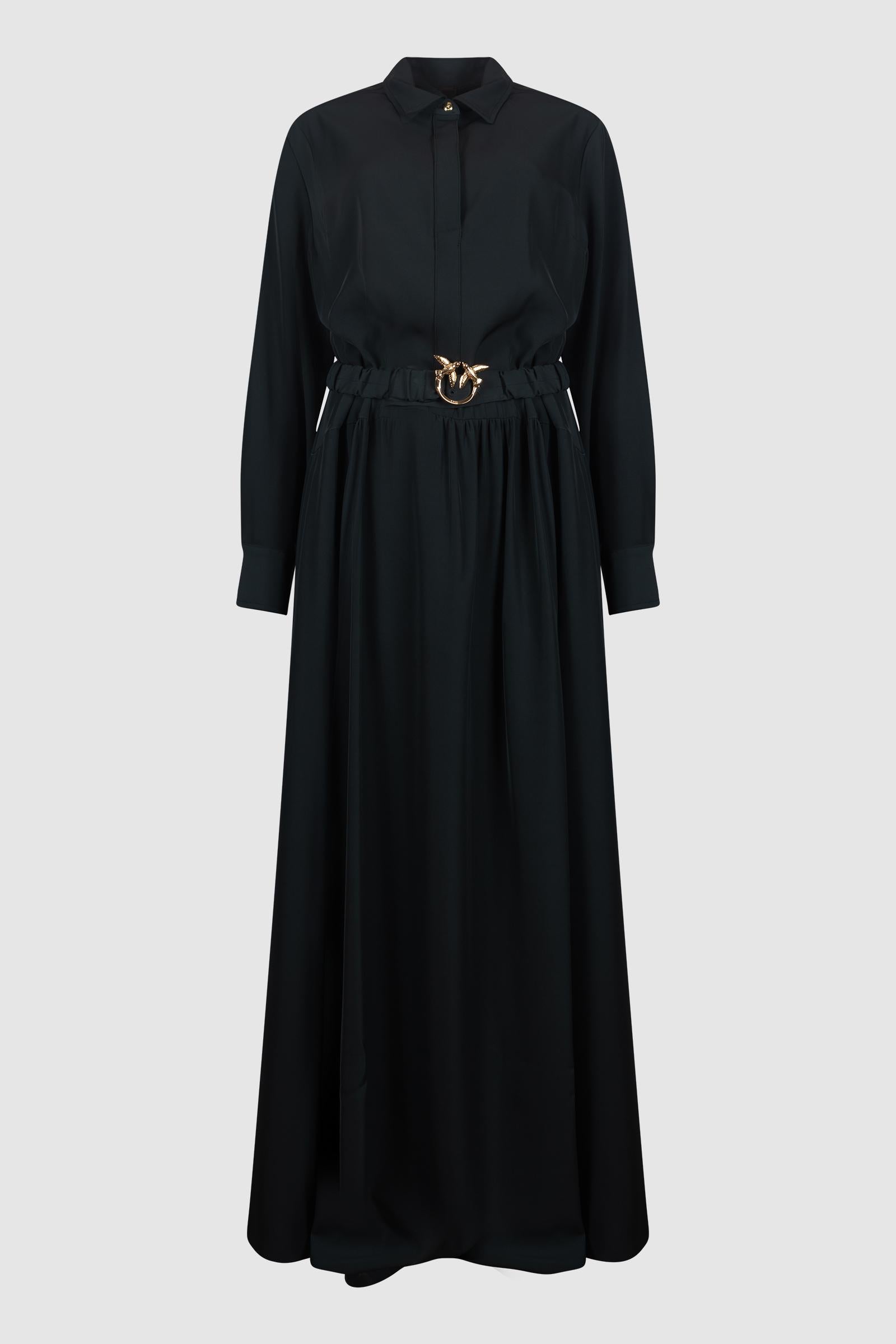L'abito chemisier lungo Pinko in verde scuro unisce eleganza e modernità in un capo iconico e versatile.