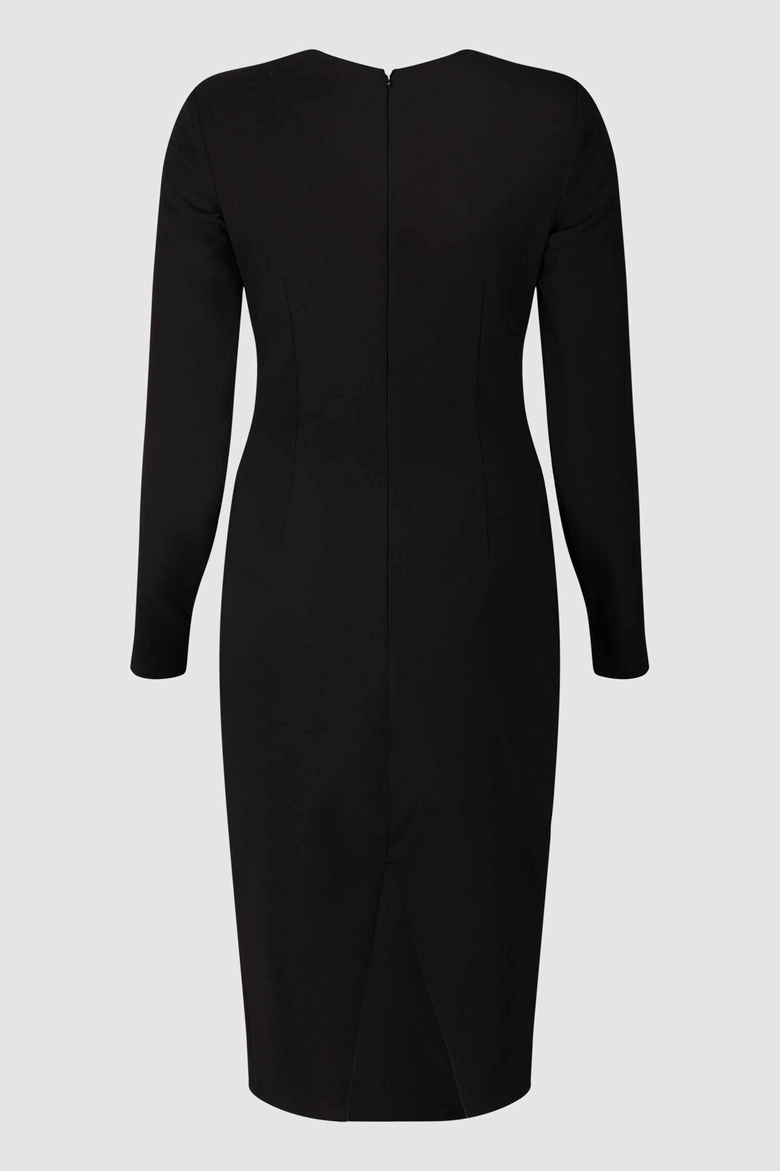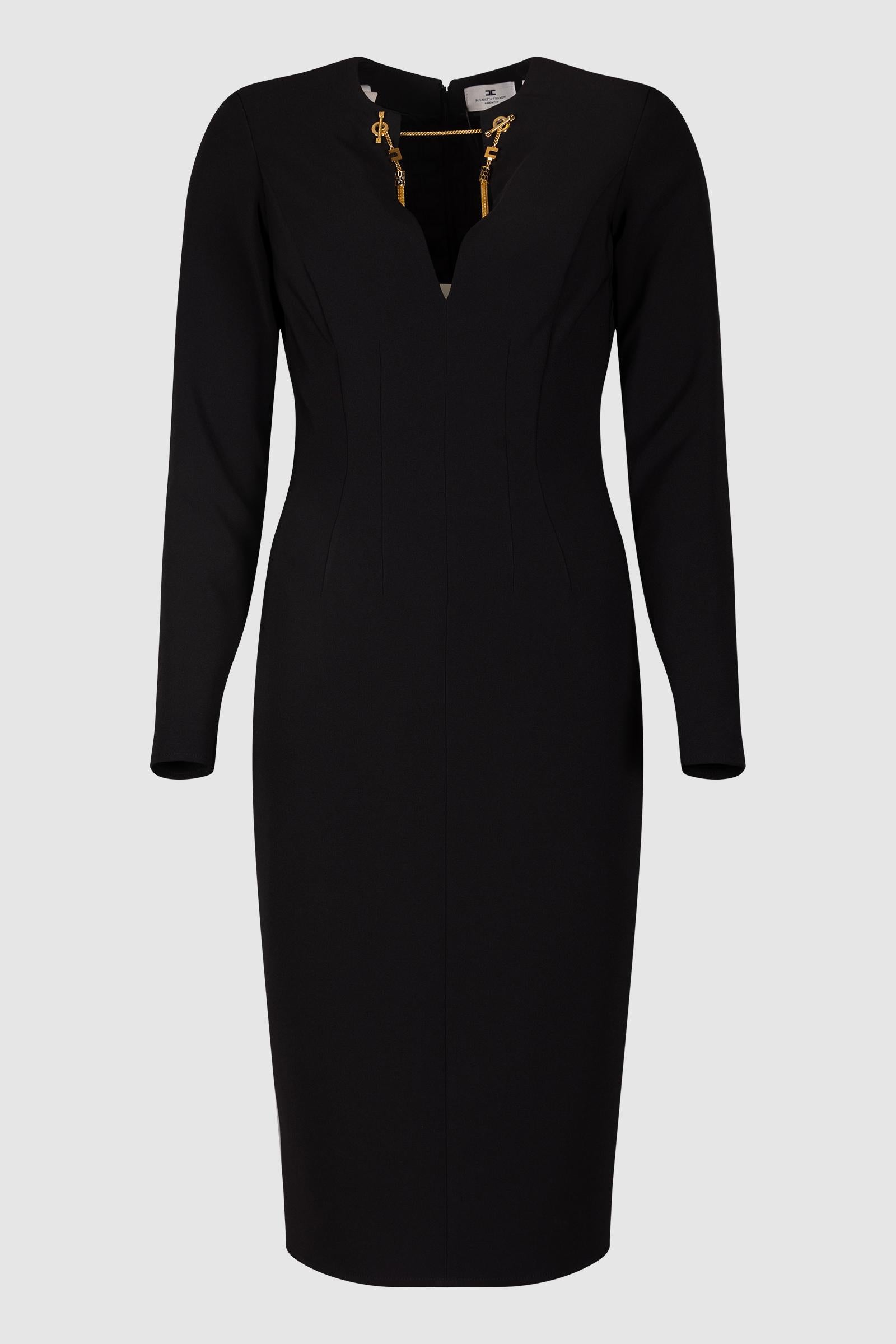 Abito in crêpe leggero dalla vestibilità slim. Il vestito ha spalle strutturate e girocollo con scollo a V impreziosito dai gemelli in catena con nappine in trama snake, amovibili per sperimentare più opzioni di styling. La cintura con logo sottolinea il punto vita. Spacco sul retro per una silhouette audace. Composizione: 95%Poliestere 05%Elastane