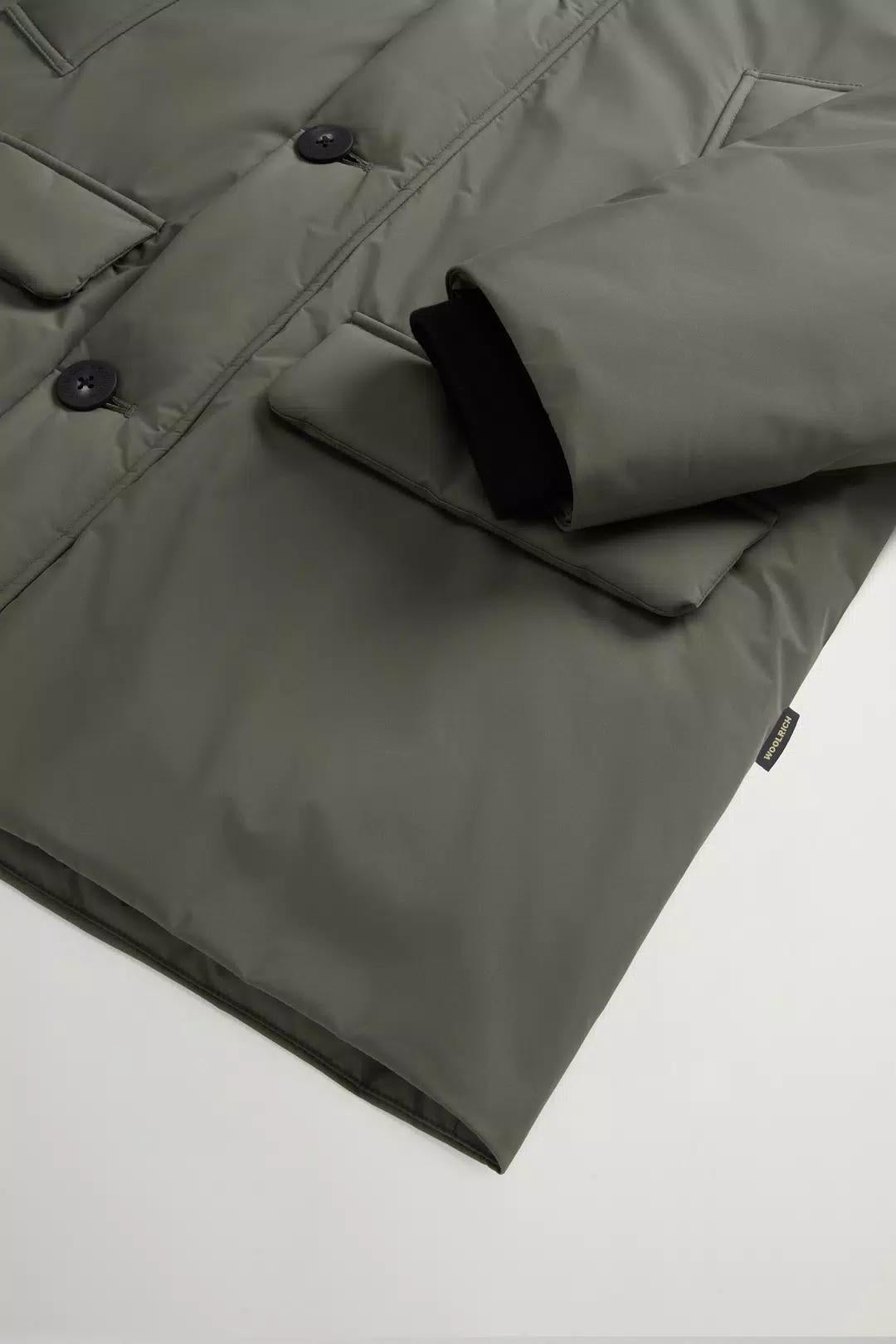 Un'icona rivisitata per la Cloud Series, la nostra capsule di capispalla caldi ma leggeri come una nuvola. Pensato per offrire protezione e comfort nei mesi più freddi, questo parka imbottito in piuma d'anatra unisce performance tecniche e cura del dettaglio. Realizzato in tessuto resistente all'acqua, antivento e traspirante, è stato sottoposto a un trattamento di idrorepellenza sostenibile WR C0 per una barriera aggiuntiva. Il modello presenta cappuccio fisso con regolazione tramite fermacorda, chiusura frontale con zip bidirezionale coperta da patta e bottoni, oltre a dettagli nascosti come i bottoni automatici sul collo alto e sul fondo. La coulisse interna in nastro logato garantisce un'ottima vestibilità. Non mancano le iconiche tasche frontali - due scaldamani sul petto e due inferiori con patta, zip nascosta e bottoni automatici - e la tasca interna con zip. I polsini interni a costine e il logo stampato sul cappuccio completano il design.Realizzato in Cloud Poly