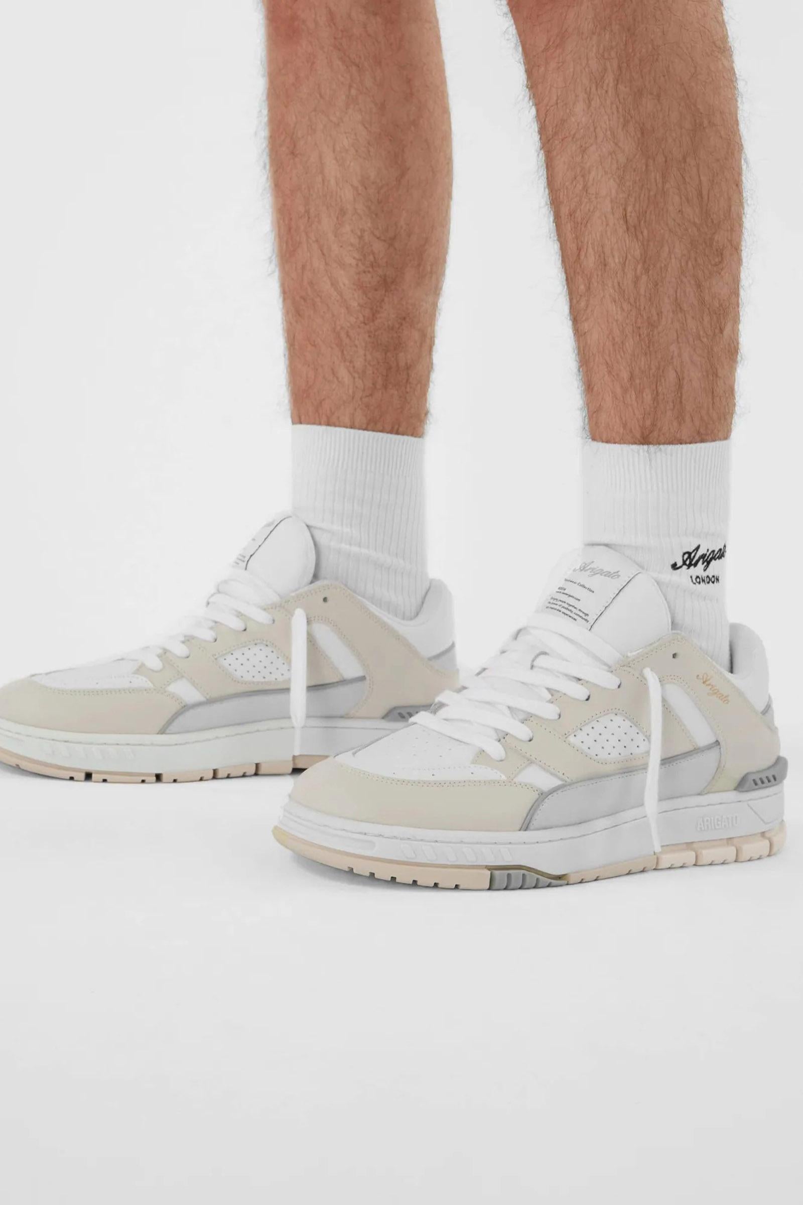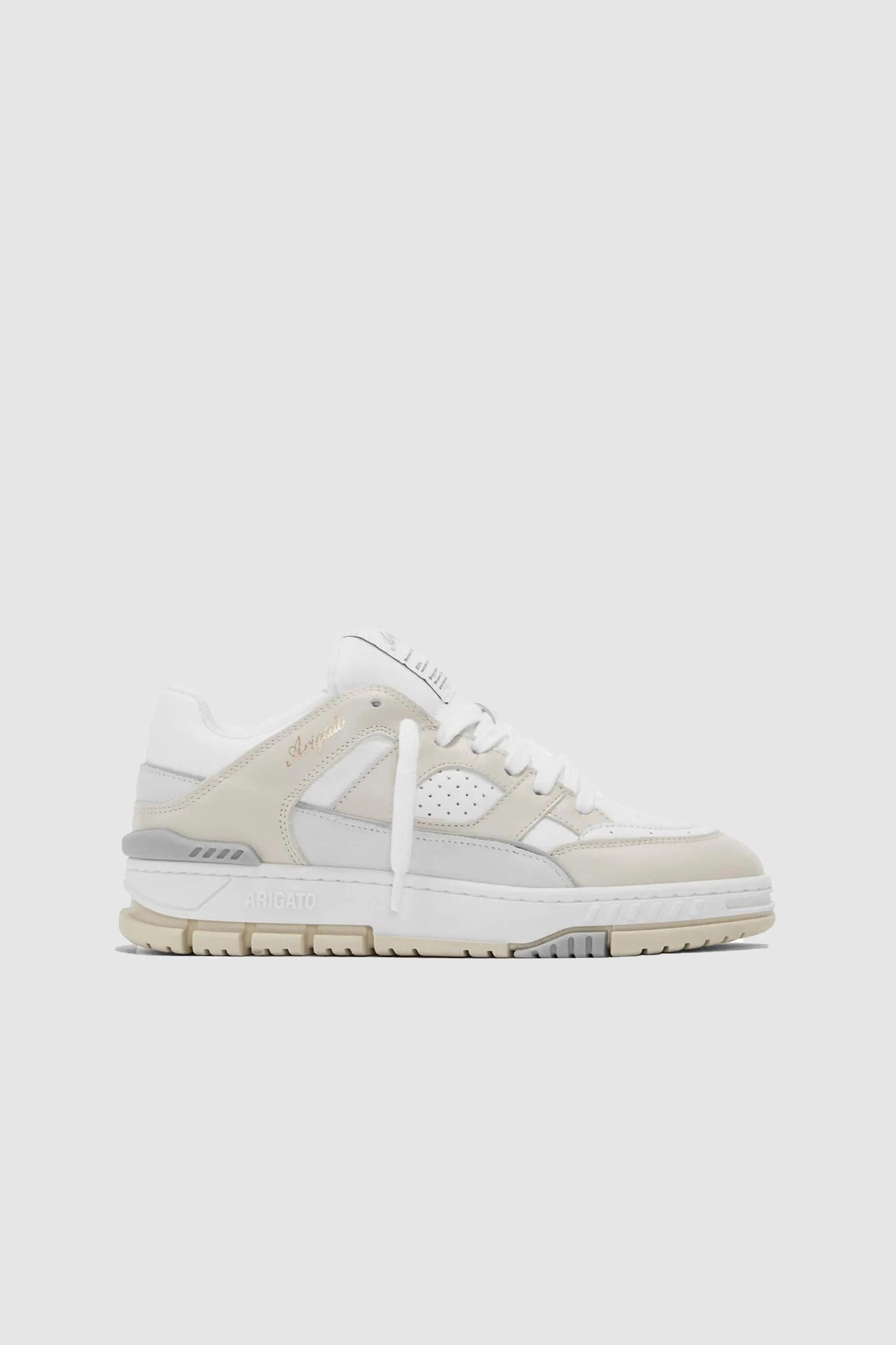 Ispirate ai modelli vintage da basket, le sneaker Area Lo sono realizzate a mano in pelle certificata LWG, pelle scamosciata e poliestere riciclato. Questo modello è dotato di suole in gomma espansa, sagomate su misura con scanalature angolari e logo "Arigato".Realizzate a mano in Portogallo