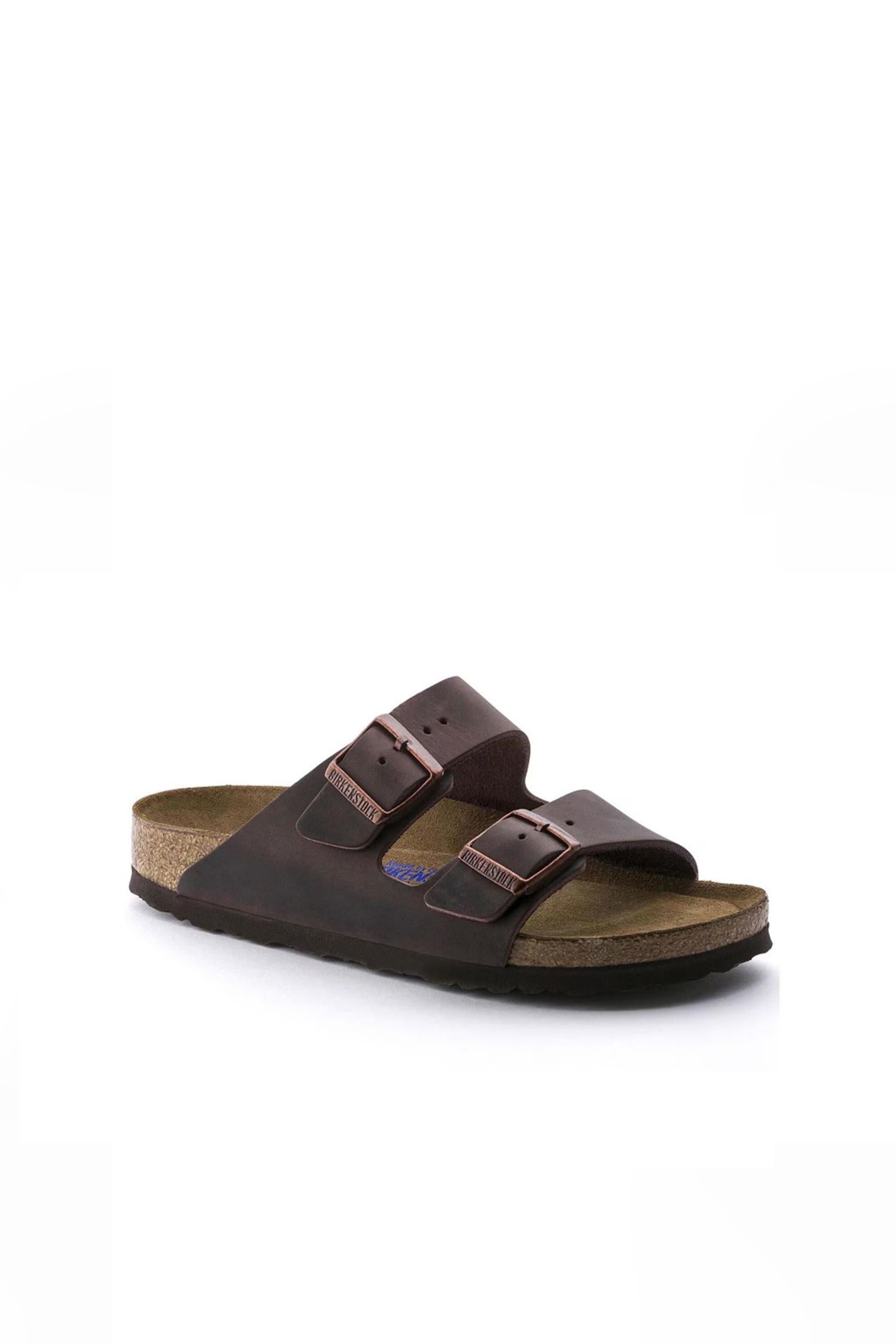 Morbido plantare originale BIRKENSTOCK; anatomico - Tomaia: pelle nabuk oliata - Sottopiede: pelle scamosciata - Suola: EVA. Dettagli: due cinturini con fibbie ad ardiglione in metallo regolabili individualmente - "Made in Germany"