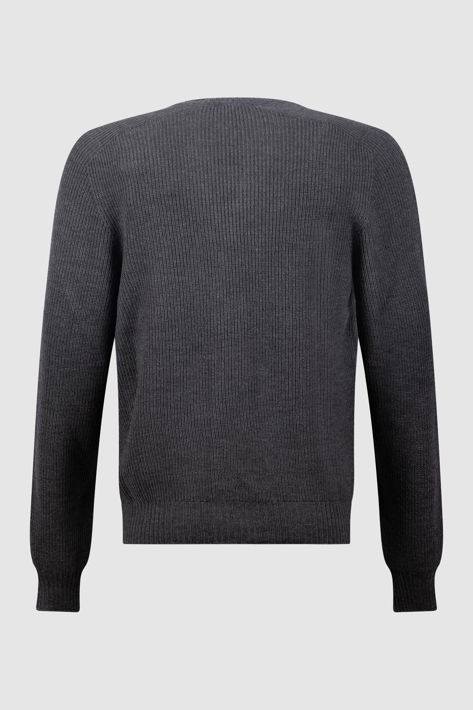 Realizzato in maglia a coste sottili, offre una struttura compatta e confortevole, che segue le linee del corpo senza costringere. Il design pulito è valorizzato dalla profonda scollatura a V, chiusa da quattro bottoni tono su tono, e da un ampio bordo a costine su polsini, fondo e paramontura, che dona definizione al capo.