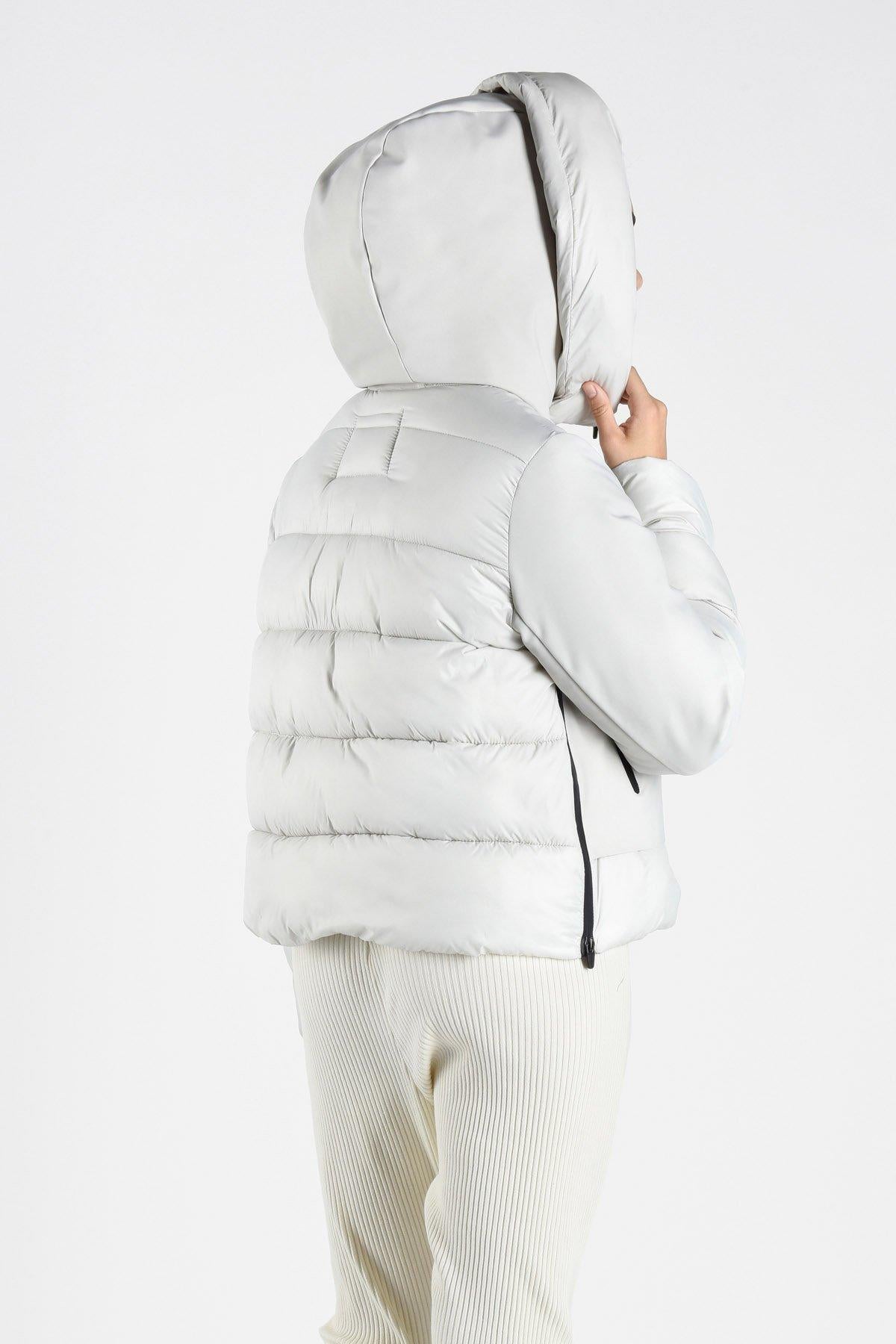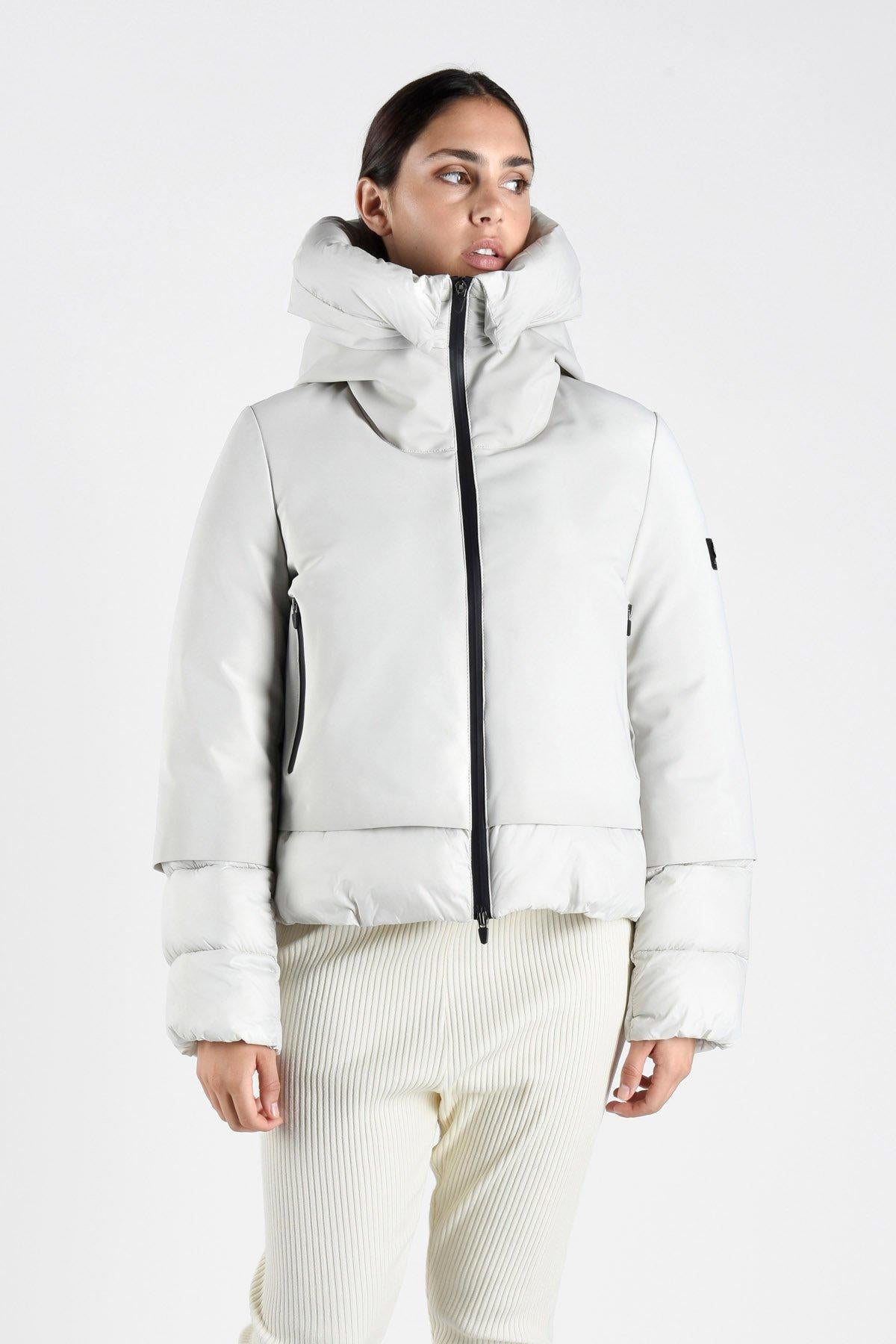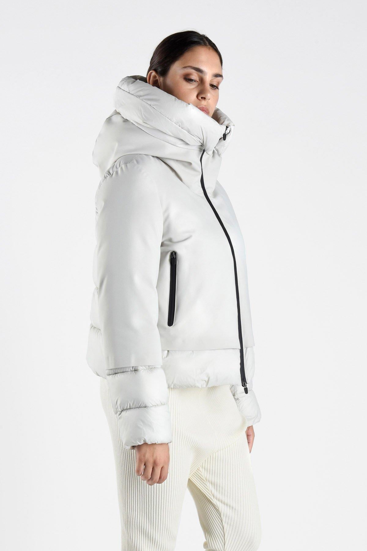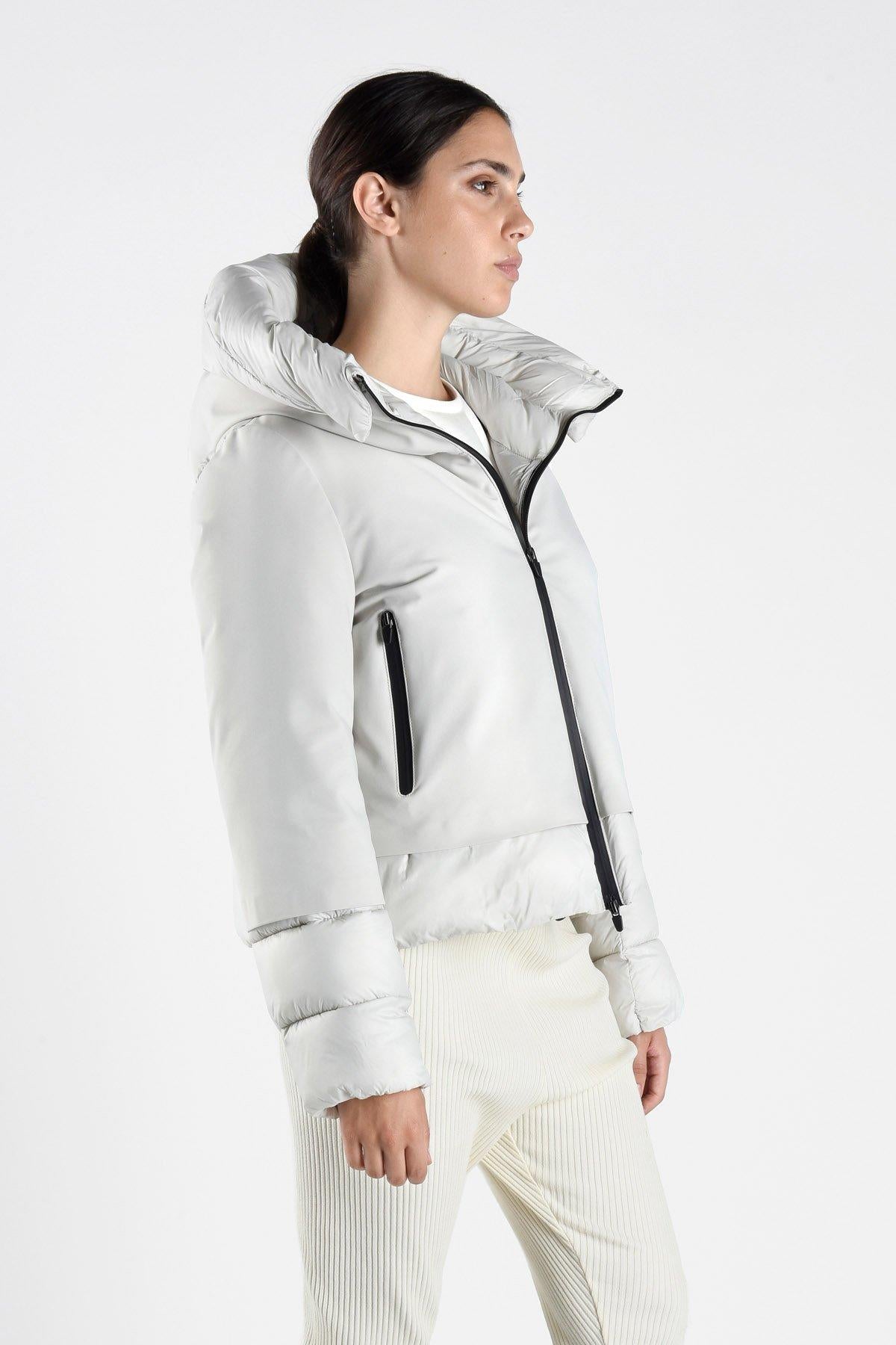 Leggerezza, comfort e calore sono le caratteristiche di queste giacca. È di nylon resistente all'acqua ed è imbottita di 100% poliestere estremamente traspirante, è chiusa da una zip con doppio cursore e ha un pratico cappuccio integrato. Il suo design e le sue dimensioni (è corta e stretta in vita) donano proporzione alla silhouette e le conferiscono un'aspetto easy chic. Se vuoi alzare l'asticella del glamour e non hai paura di osare, il gioco dei contrasti fa decisamente al caso tuo. Indossalo con un abito di tessuto impalpabile e un cardigan di morbido mohair, punta su accessori dai toni naturali e l'effetto sarà decisamente fantastico.