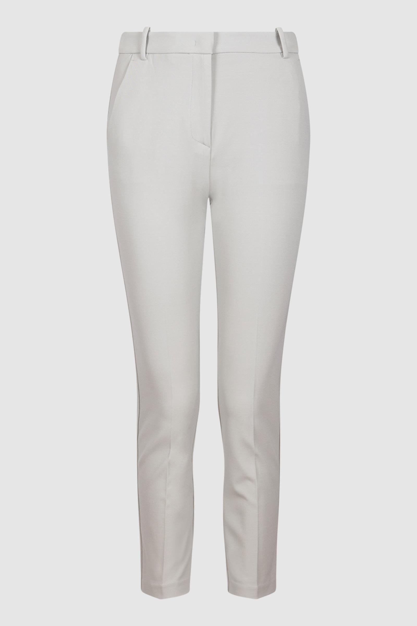 Pantaloni realizzati in tessuto tecnico di misto viscosa stretch lavorato a punto stoffa dalla mano uniforme e leggermente crespa. Il capo presenta un design a gamba dritta con piega stirata centrale, due tasche a filetto sul retro, passanti per cintura e un'elegante chiusura frontale nascosta. Essenziale e contemporaneo, questo modello diventerà un vero e proprio passe-partout del tuo guardaroba.Tessuto Esterno: VISCOSA 59% NYLON 36% ELASTAN 5% - Fodera: ACETATO 67% POLIESTERE 33%.Non lavare - Non trattare con cloro - Non usare asciugatrice - Stirare a temperatura massima 110 °C - Lavare delicatamente a secco in tetracloroetilene