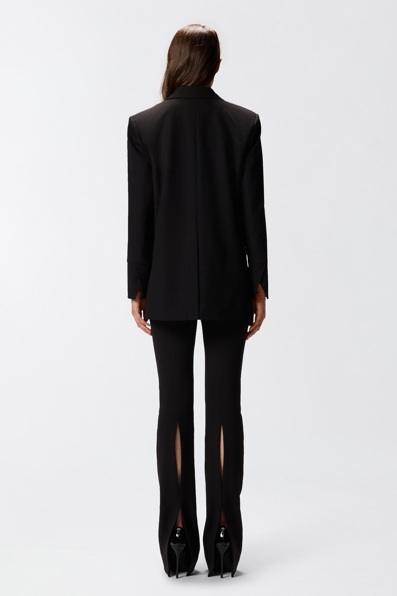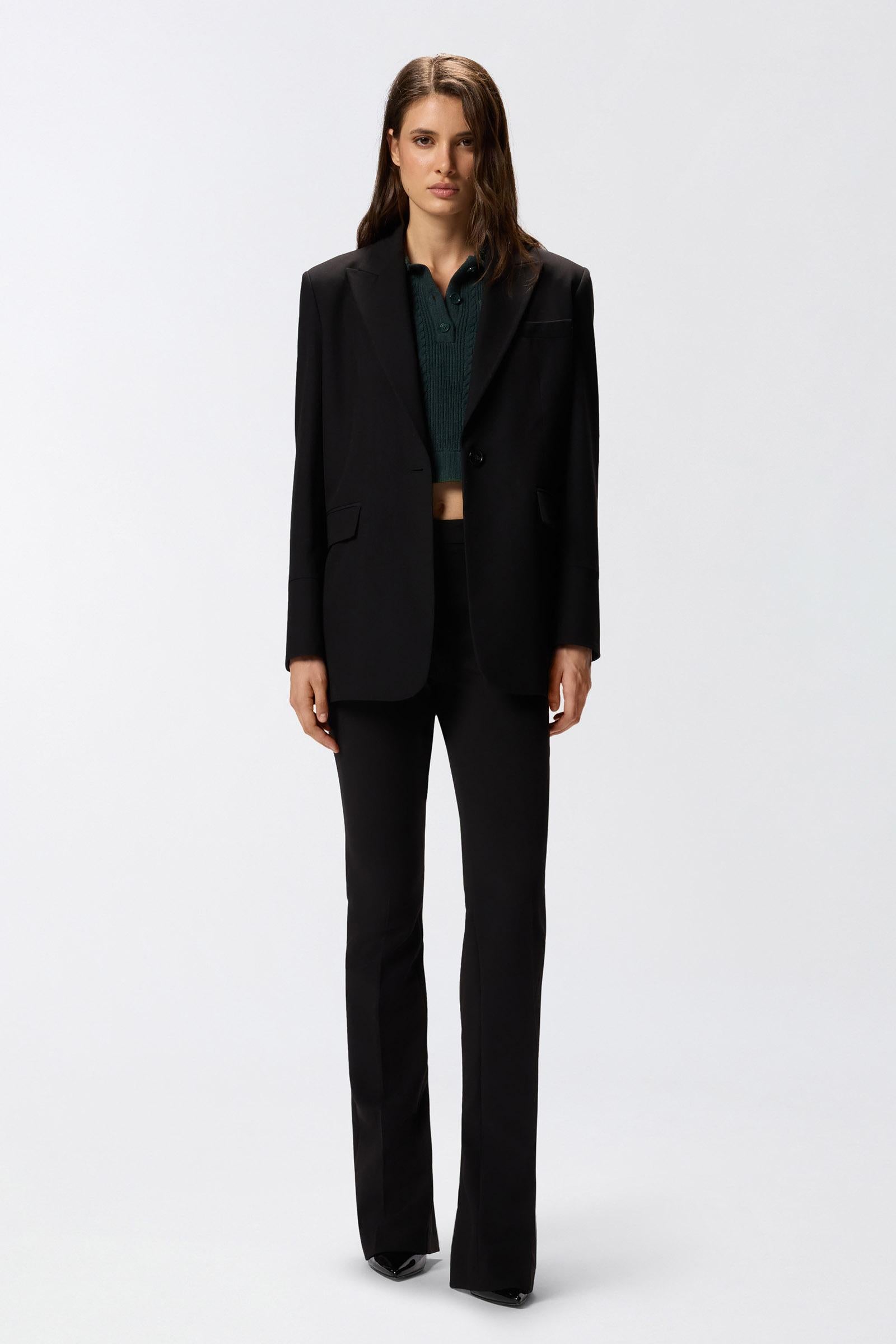 Blazer monopetto dalla linea dritta e dalla vestibilità oversize con collo a revers, tasche anteriori con pattina e taschino a filetto sul petto. Il capo è realizzato in un tessuto di viscosa stretch dalla mano particolarmente fluida. La fodera interna in tessuto garantisce il massimo comfort durante l'indosso. Abbina la giacca con i pantaloni nello stesso tessuto per un tailleur raffinato da indossare per cerimonie e occasioni speciali.Tessuto Esterno: POLIESTERE 72% VISCOSA 23% ELASTAN 5% - Fodera: POLIESTERE 100%