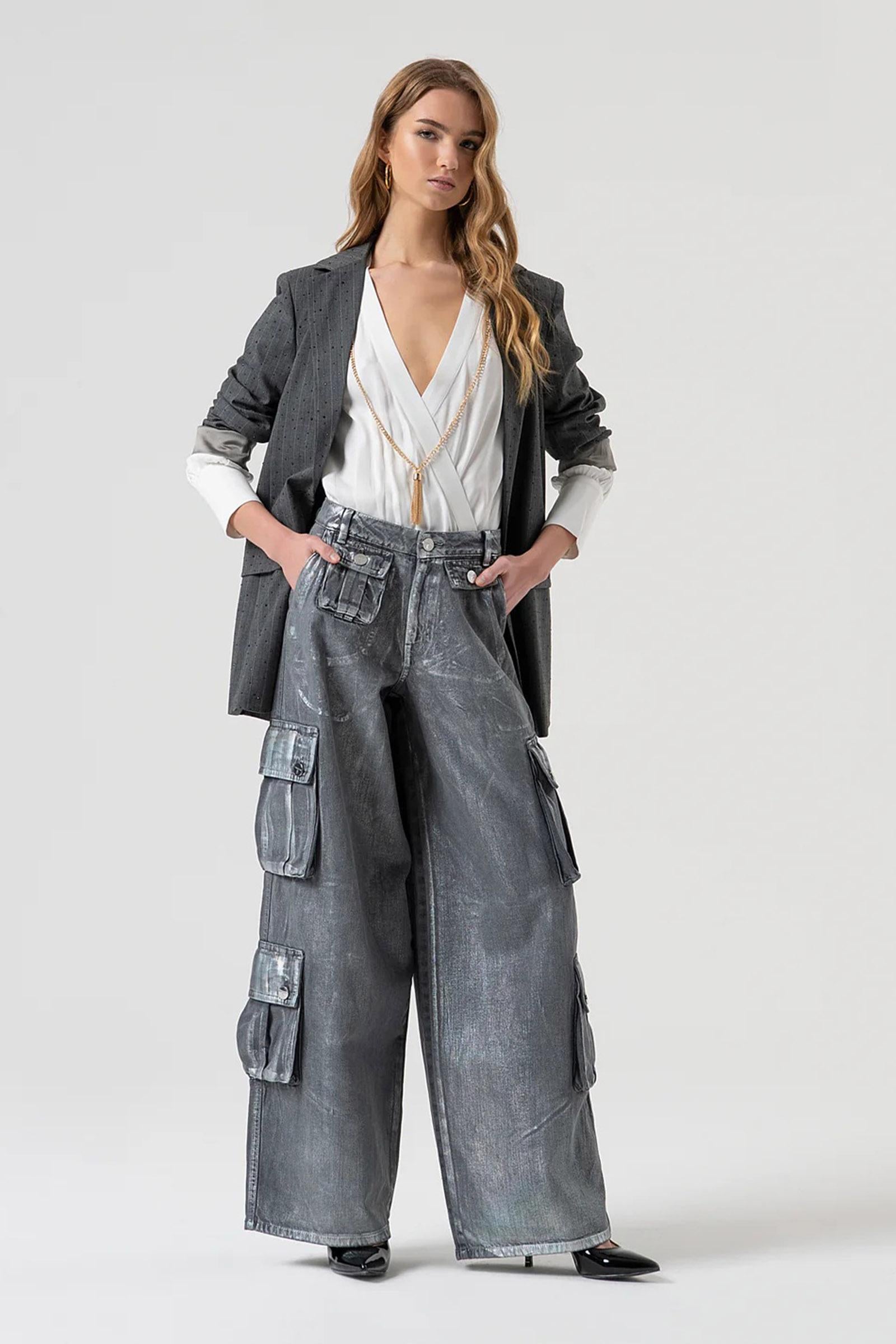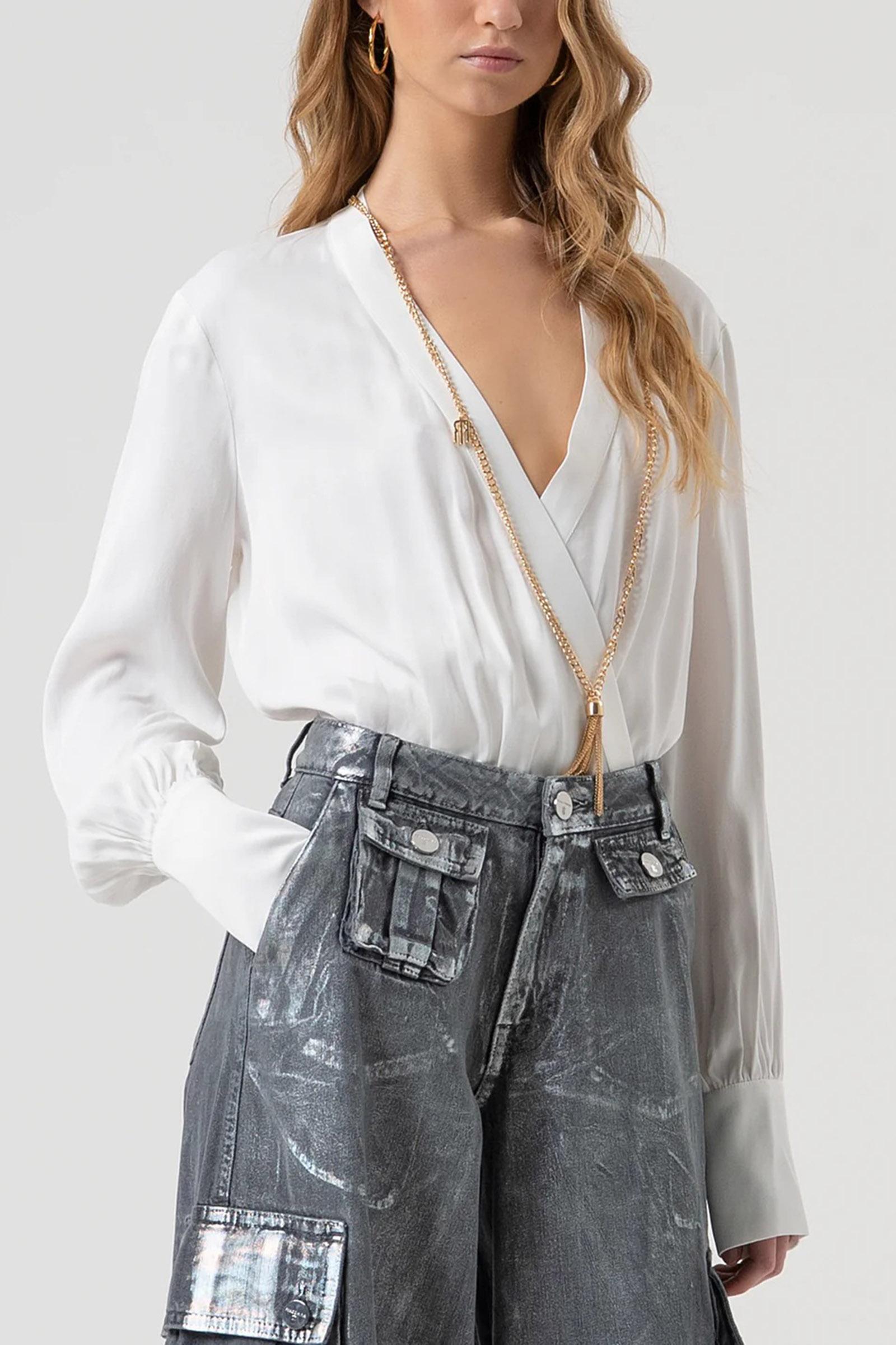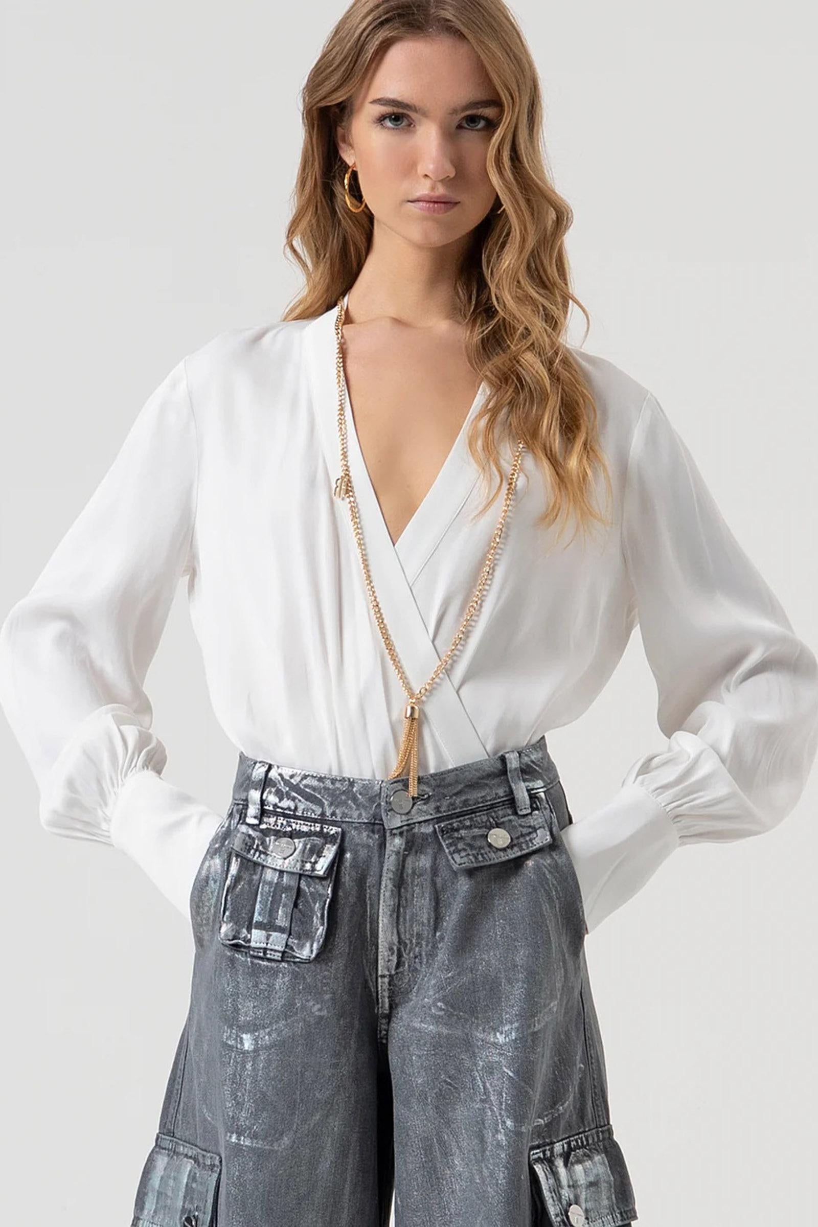 Body dalla vestibilità regolare con collana coordinata, scollo incrociato e maniche lunghe. Stagione: AI25