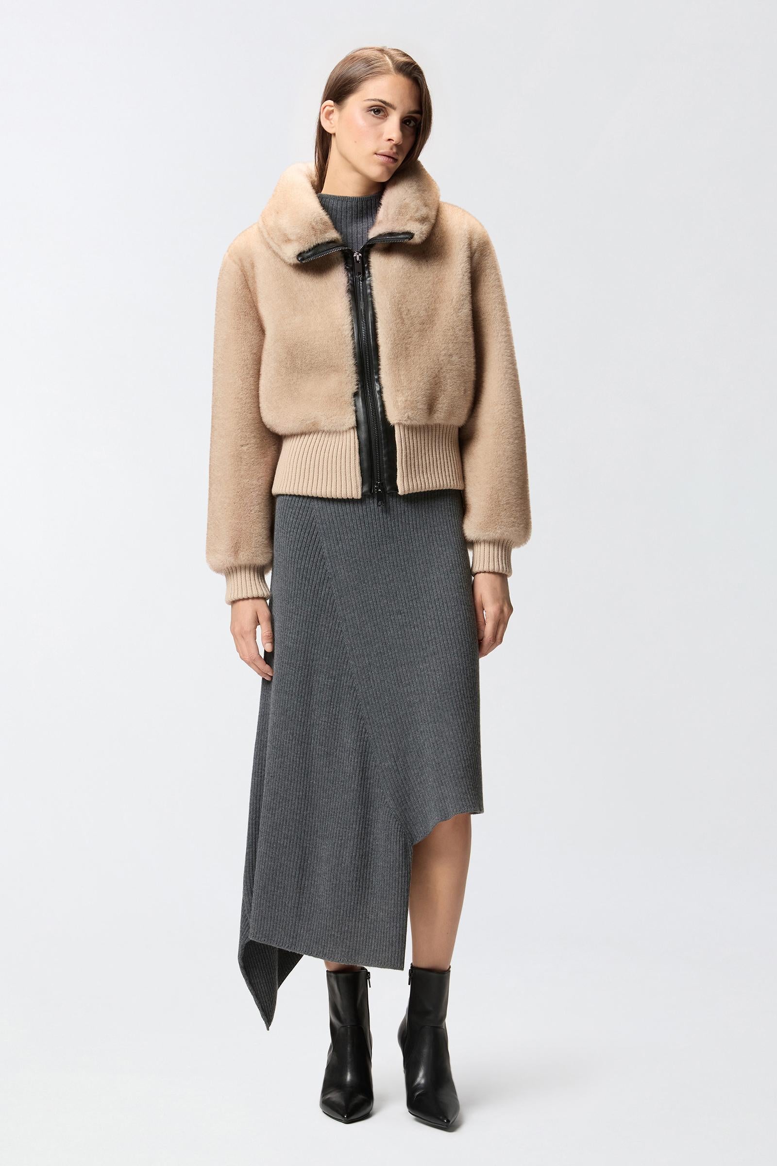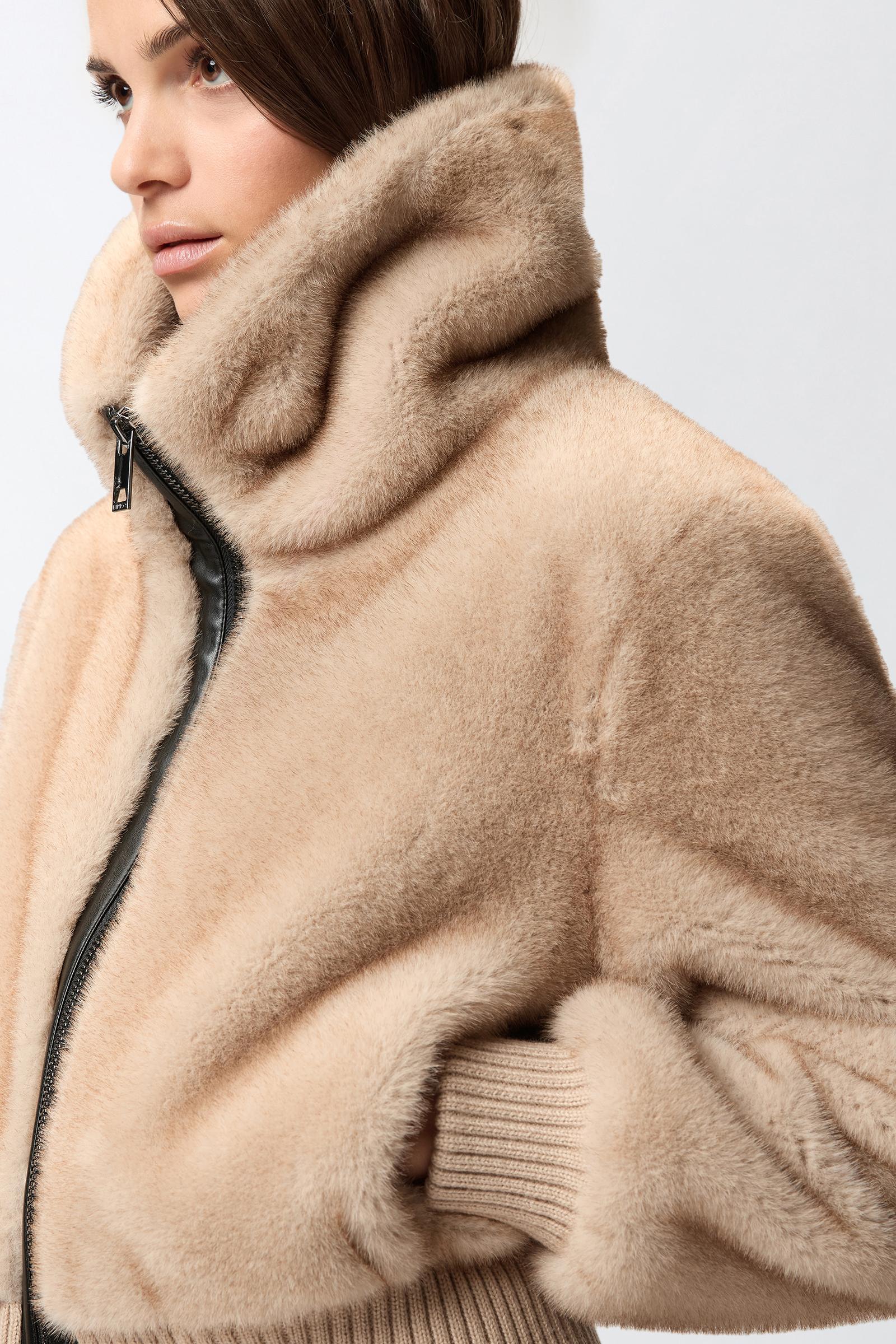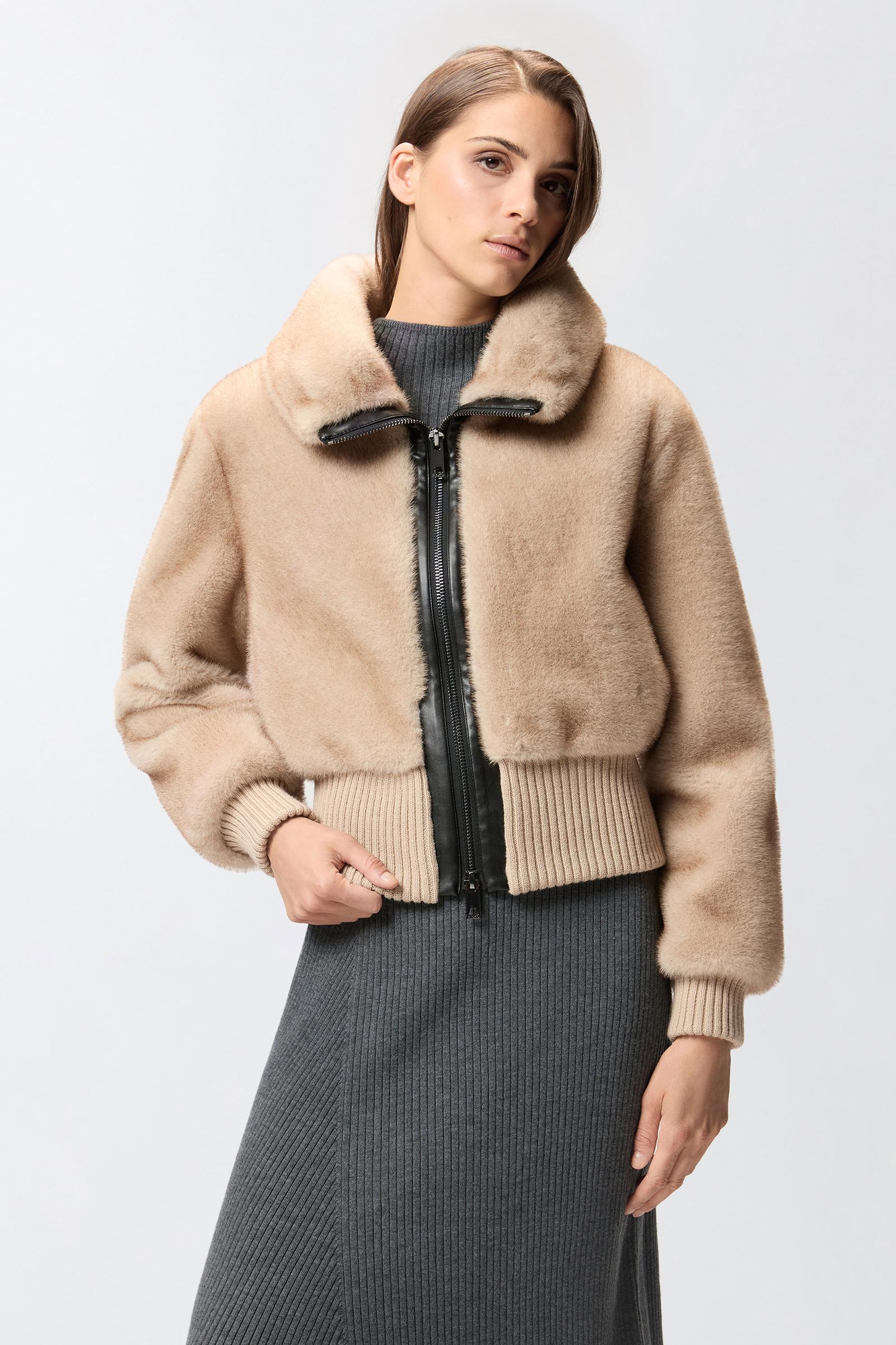 Bomber corto caratterizzato da un avvolgente collo rialzato e da fondo e polsini in confortevole maglia lavorata a costine. Il capo è realizzato in morbido tessuto Aspen dall'effetto pelliccia, particolarmente piacevole al tatto. La cura per i dettagli tipica delle creazioni PINKO è ben visibile anche nelle rifiniture in morbida nappa che profilano la chiusura frontale con zip a doppio cursore. Modello foderato. Affronta le temperature più rigide con questo capo pronto a regalarti un morbido abbraccio.1° Tessuto Esterno: POLIESTERE 100% - 2° Tessuto Esterno: POLIESTERE 100% - Filato Accessorio: POLIESTERE 70% LANA 30% - Spalmatura: POLIURETANICA 100% - Fodera: POLIESTERE 100%